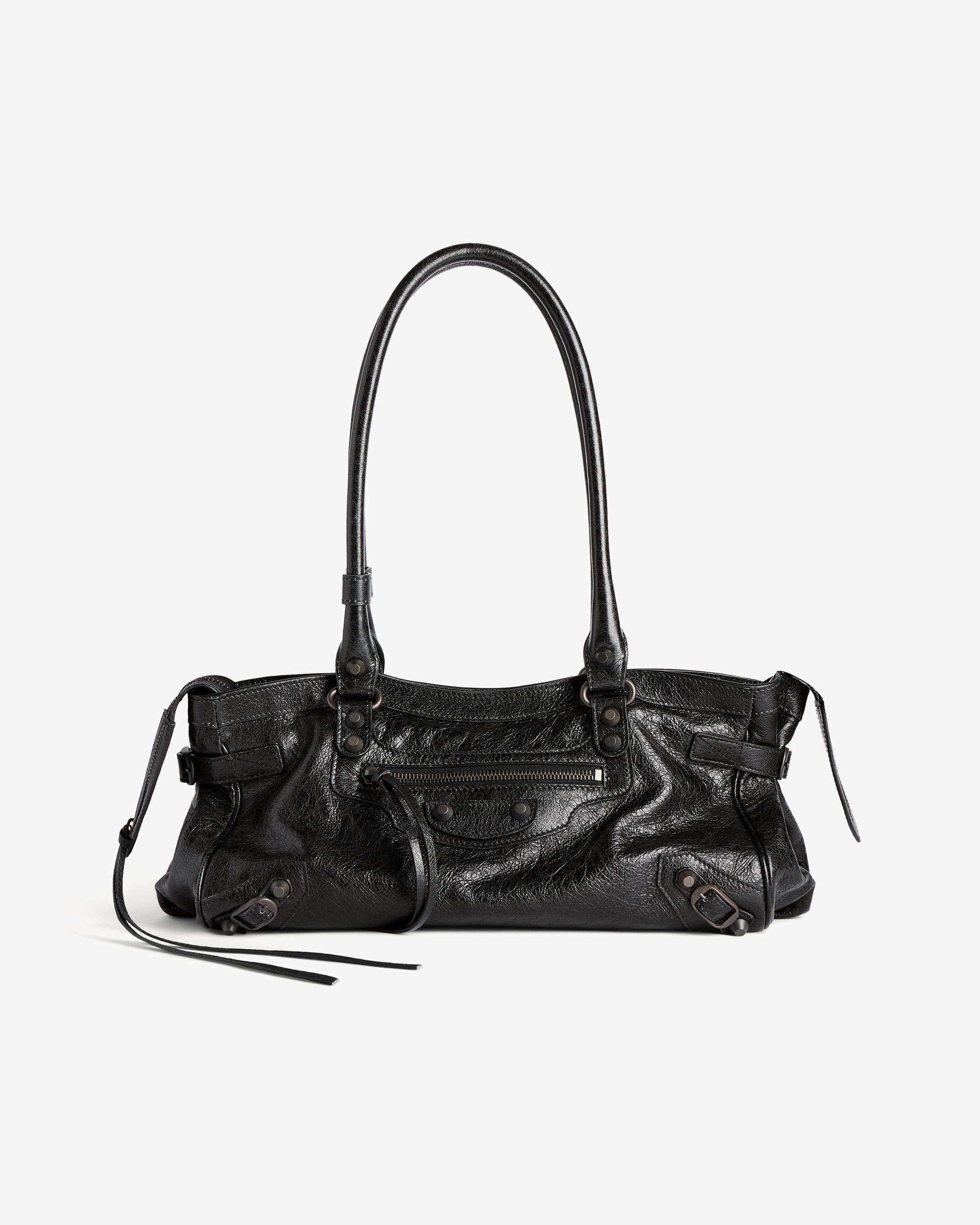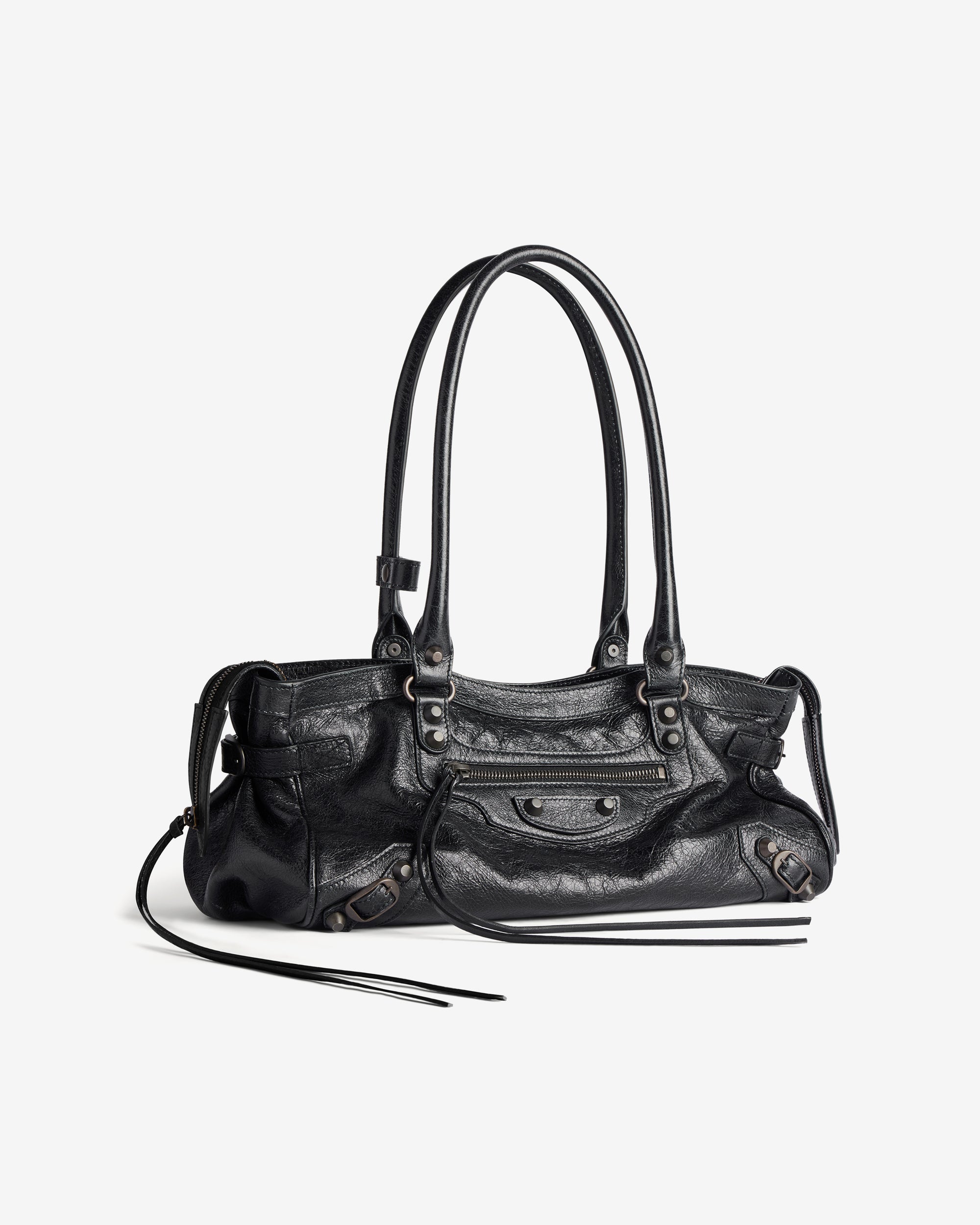 Arena lambskinTwo handles with one handle clipShoulder carryBrass hardwareZipped closure with knotted leather pullerFront zipped pocket with knotted leather puller1 main compartment1 inner flat pocketCotton canvas lining100% LambskinMade in Italy