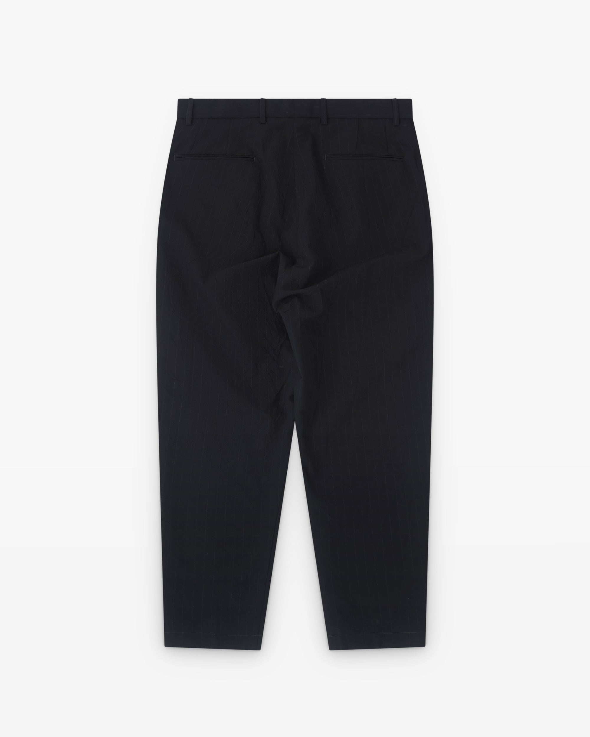 PinstripeTapered legButton and zip flySide seam pocketsFront pleats