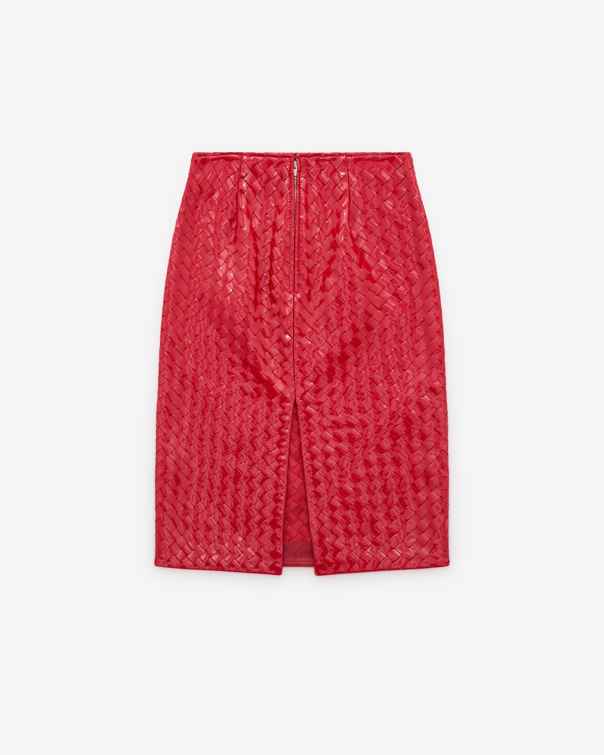 Midi skirt made with Intrecciato craftsmanship in patent leather.