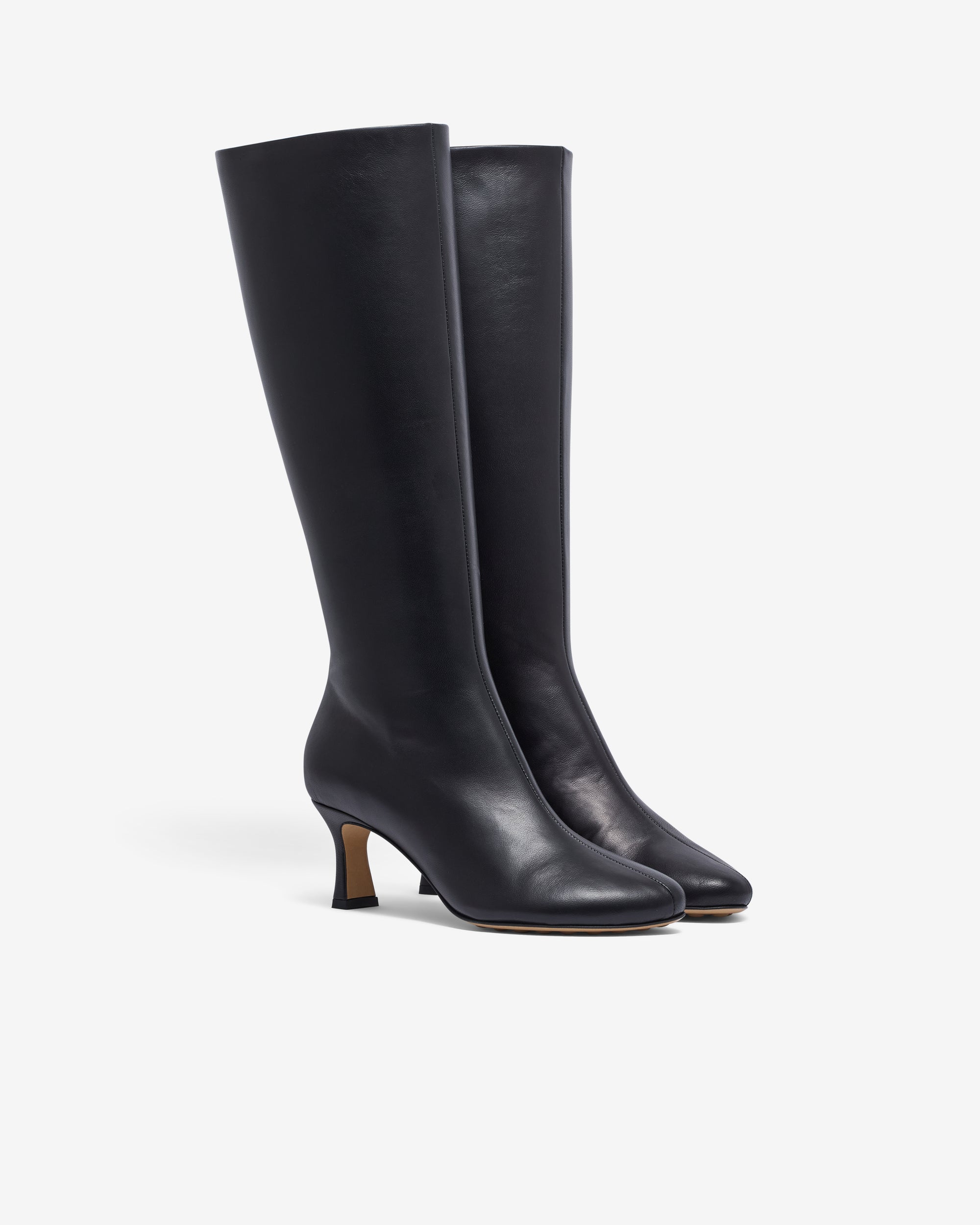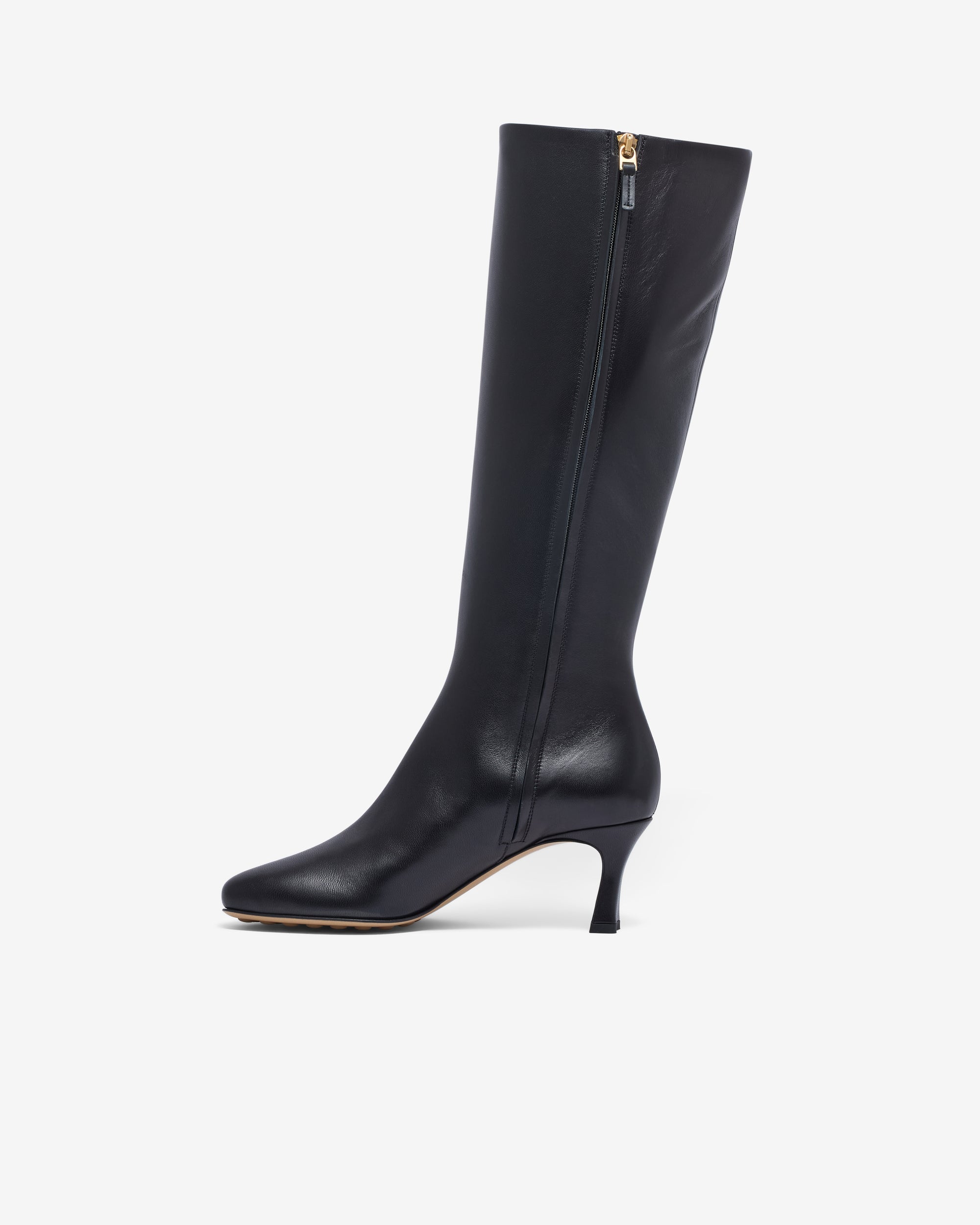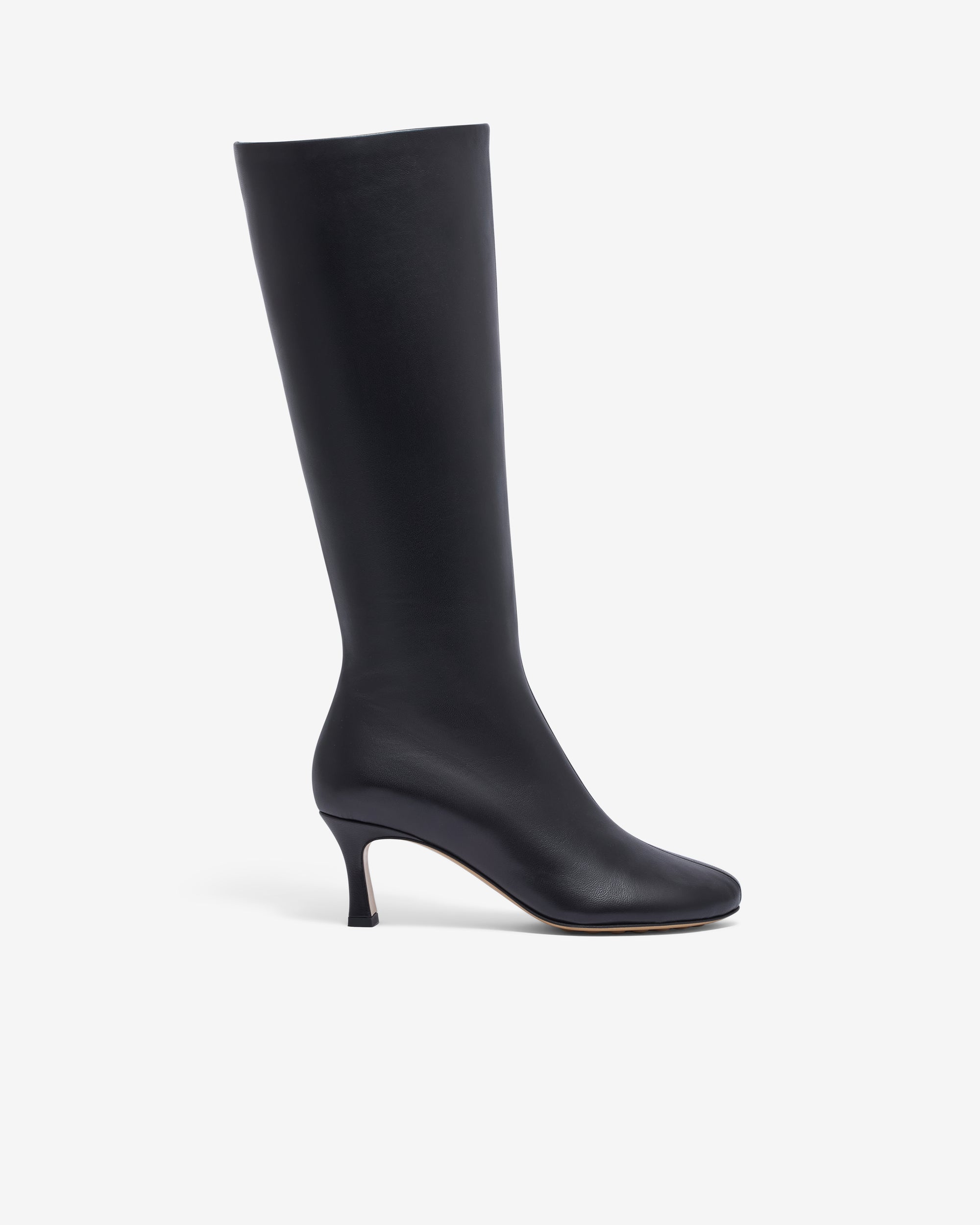 Knee high boot in supple nappa leather with almond toe.