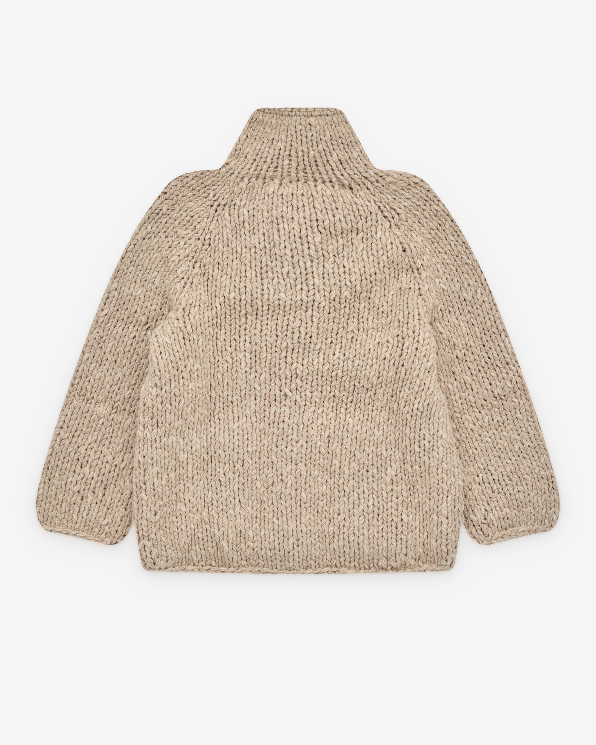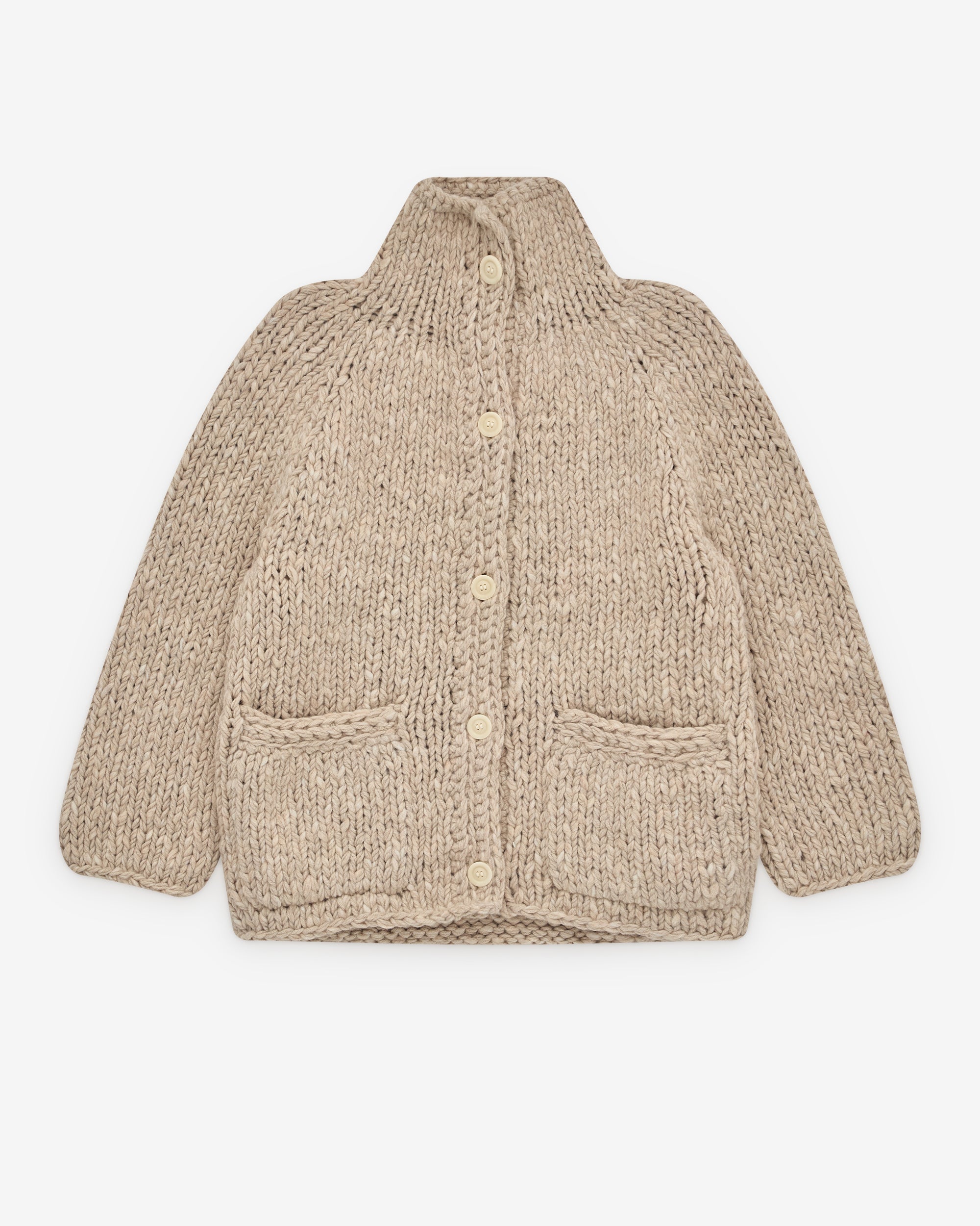 Chunky knit constructionPatch pocketsStand collarStraight hemButton fasteningRaglan sleeves