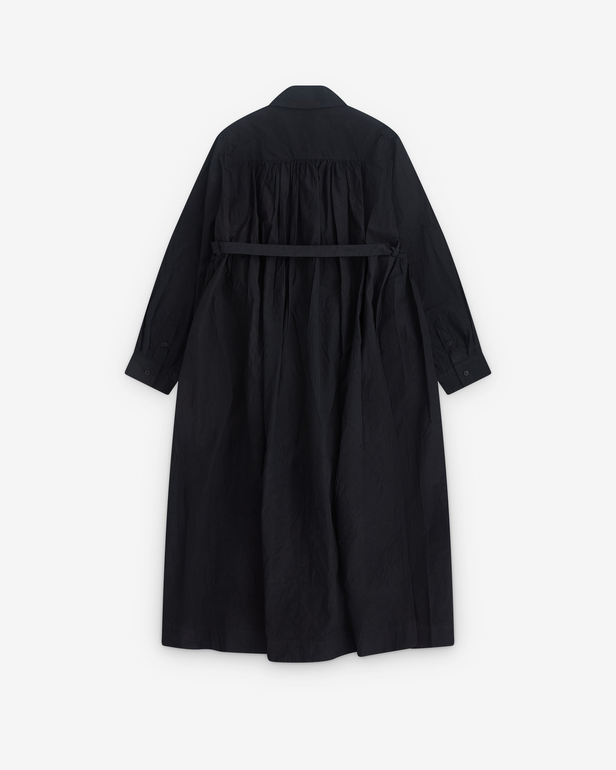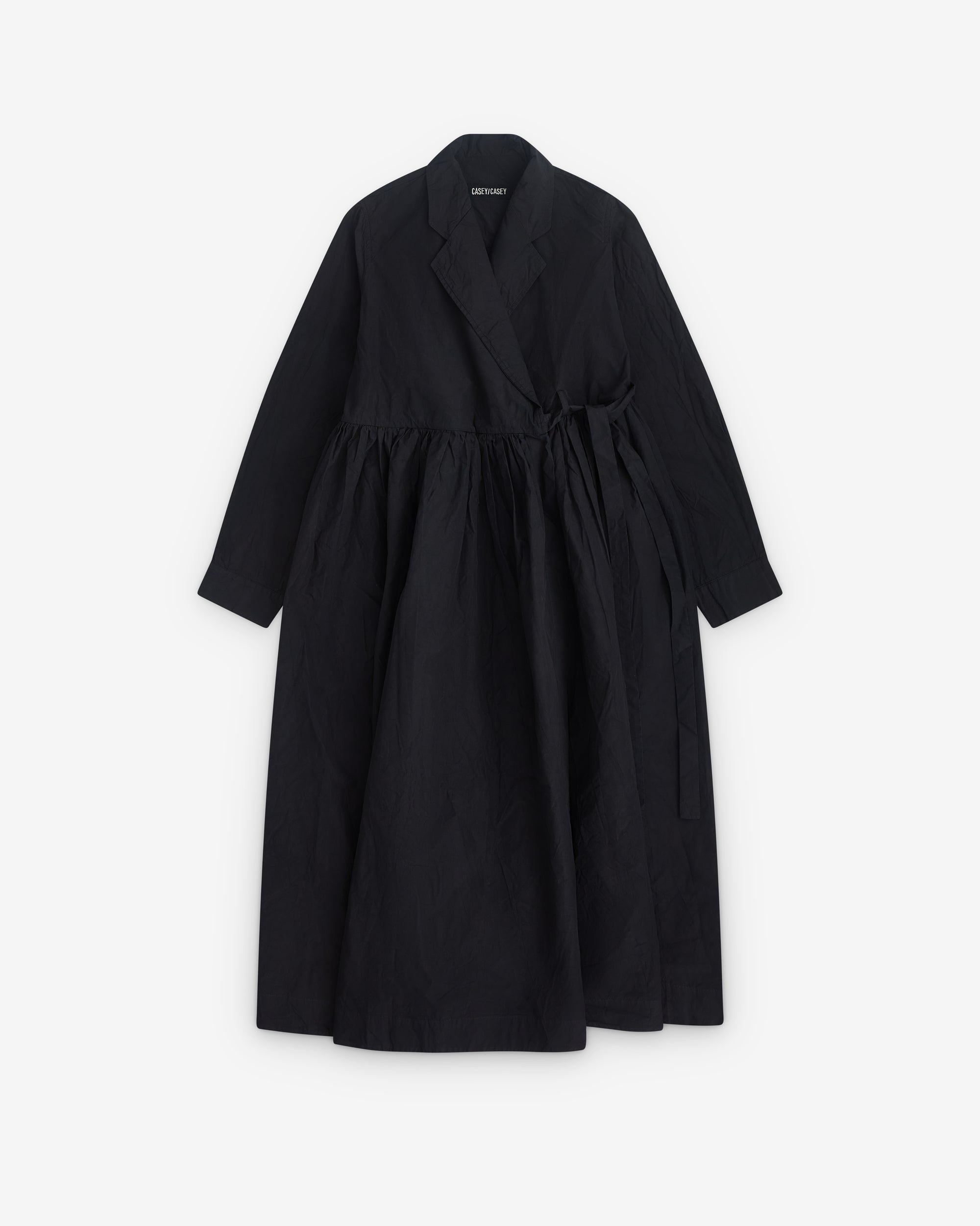 Open collarWrap tie fastening Gathered waistFull-lengthLong sleeves