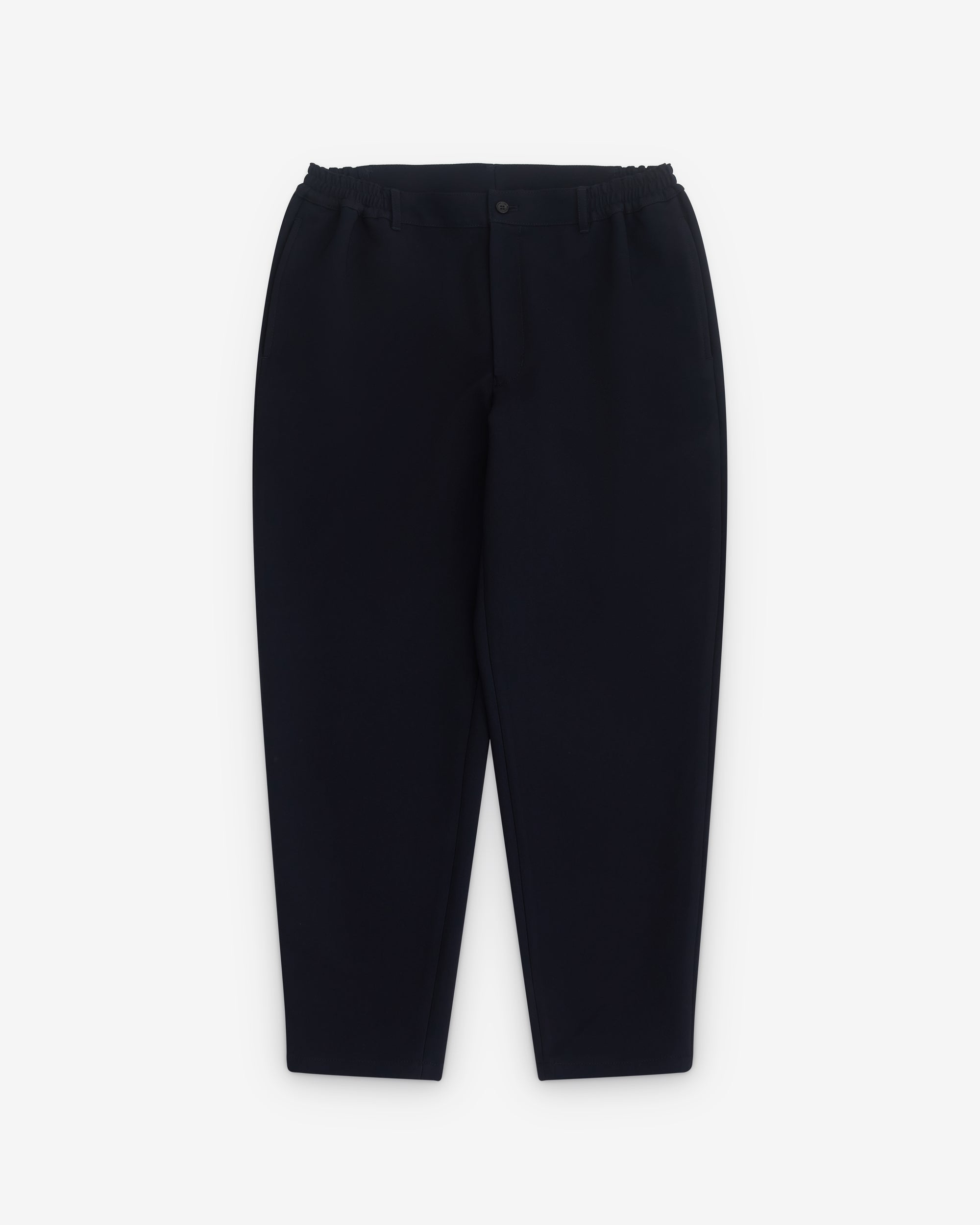 Button waist, zip flyFront slash pocketsLoose thigh, tapered legTwo rear pocketsPartial elasticated waist band