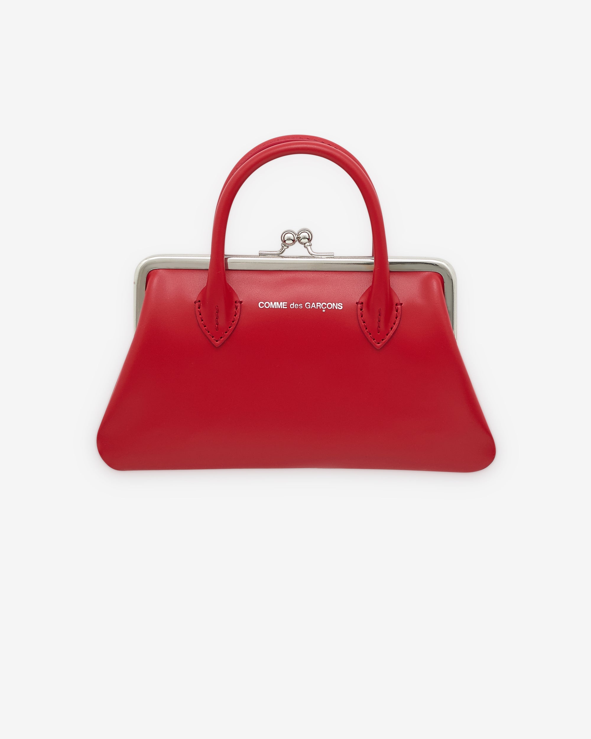One compartmentTop carry handle Kiss clasp closureSilver foil embossed logo190mm x 100mm