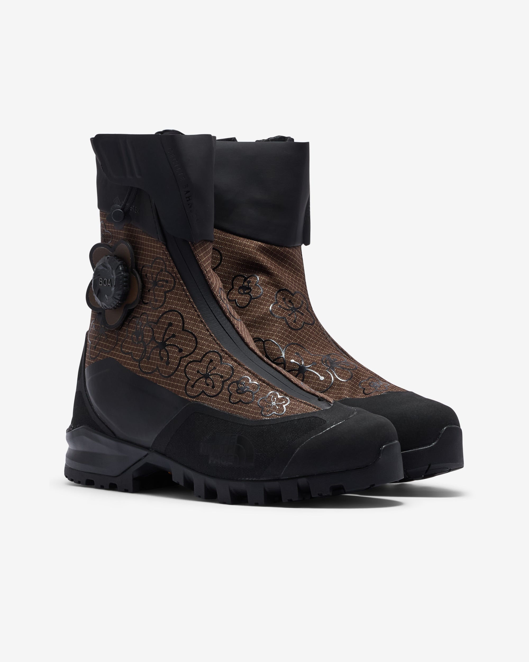 A romantic take on alpine performance. Inspired by technical mountain footwear, the Sarit Verto SA Boots combine waterproof GORE-TEX® membranes, high-traction outsoles, and the BOA® Fit System for personalised adjustability. Embroidered floral detailing and sculptural lines soften the silhouette, merging technical innovation with delicate craftsmanship.