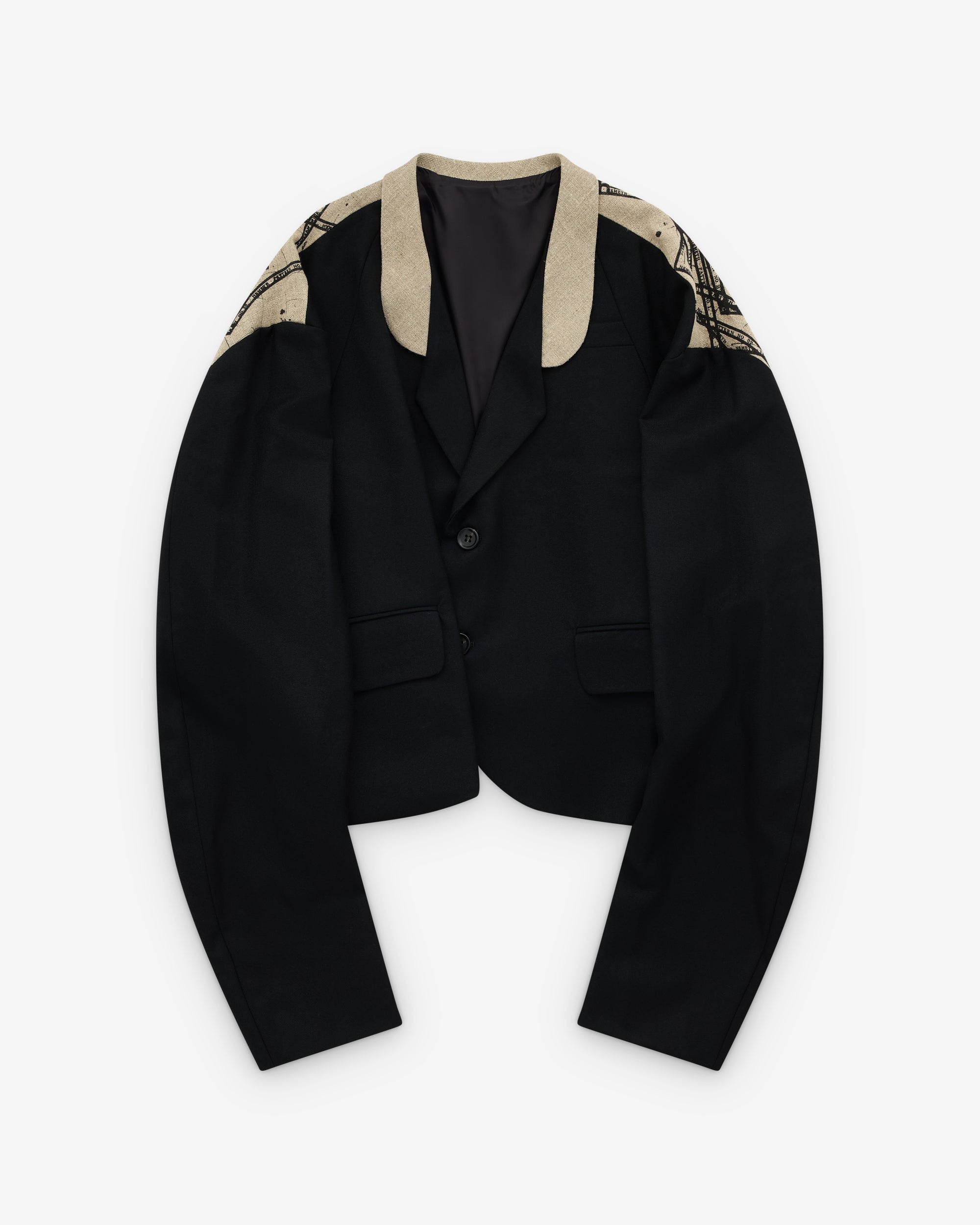 Tailored construction with flap pockets and a relaxed sleeve structure