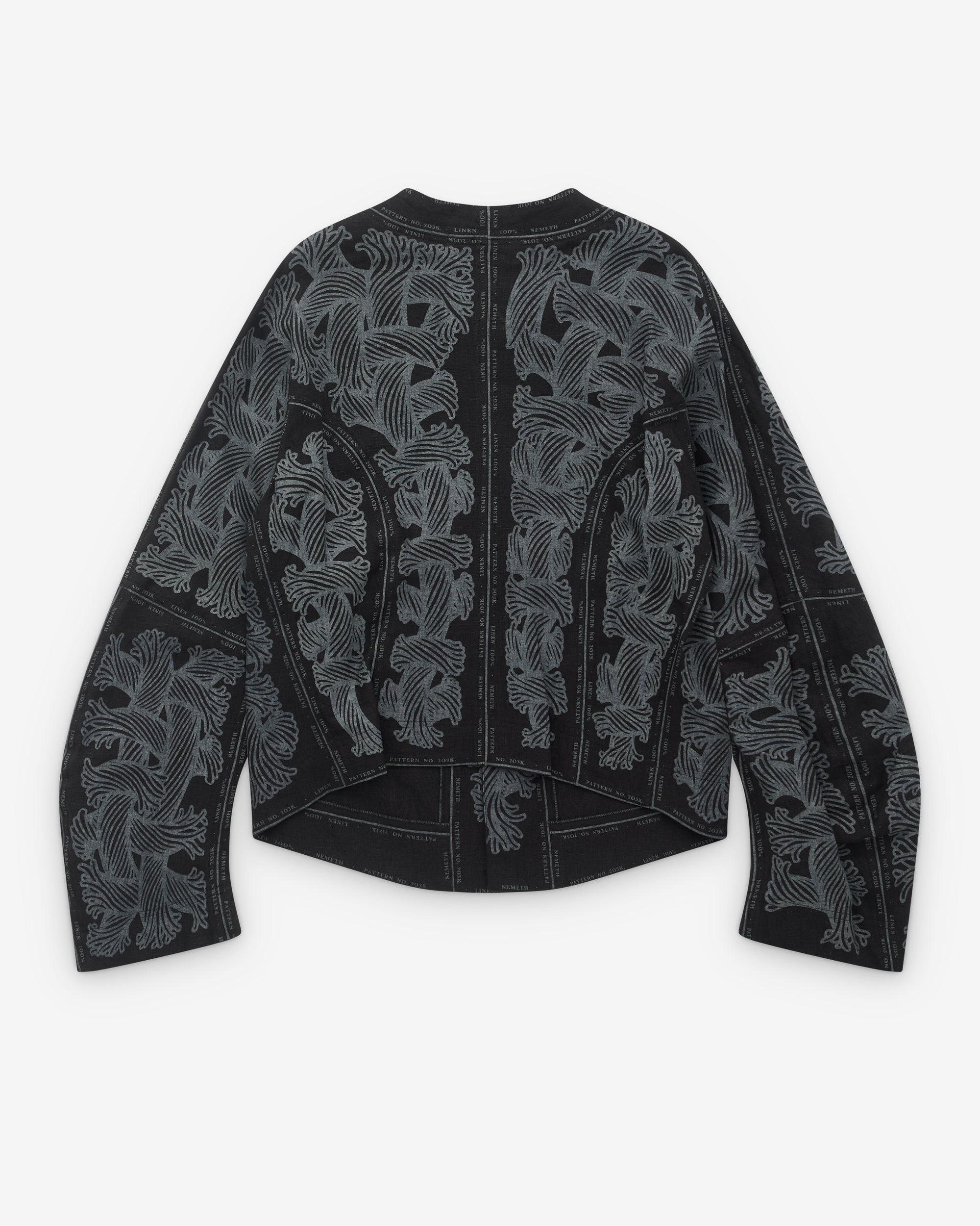 CollarlessButton fasteningLong, curved sleevesStructured silhouetteAll over rope pattern