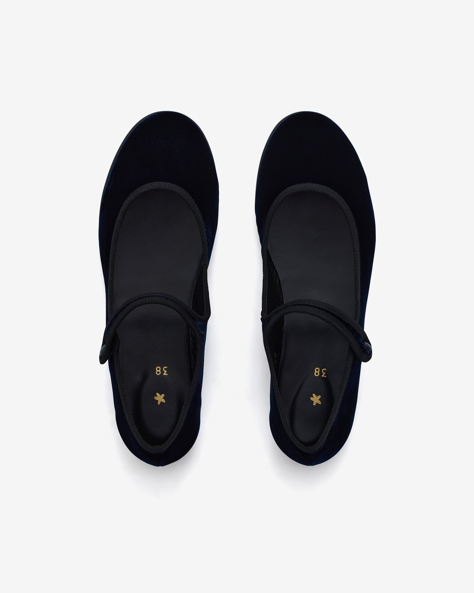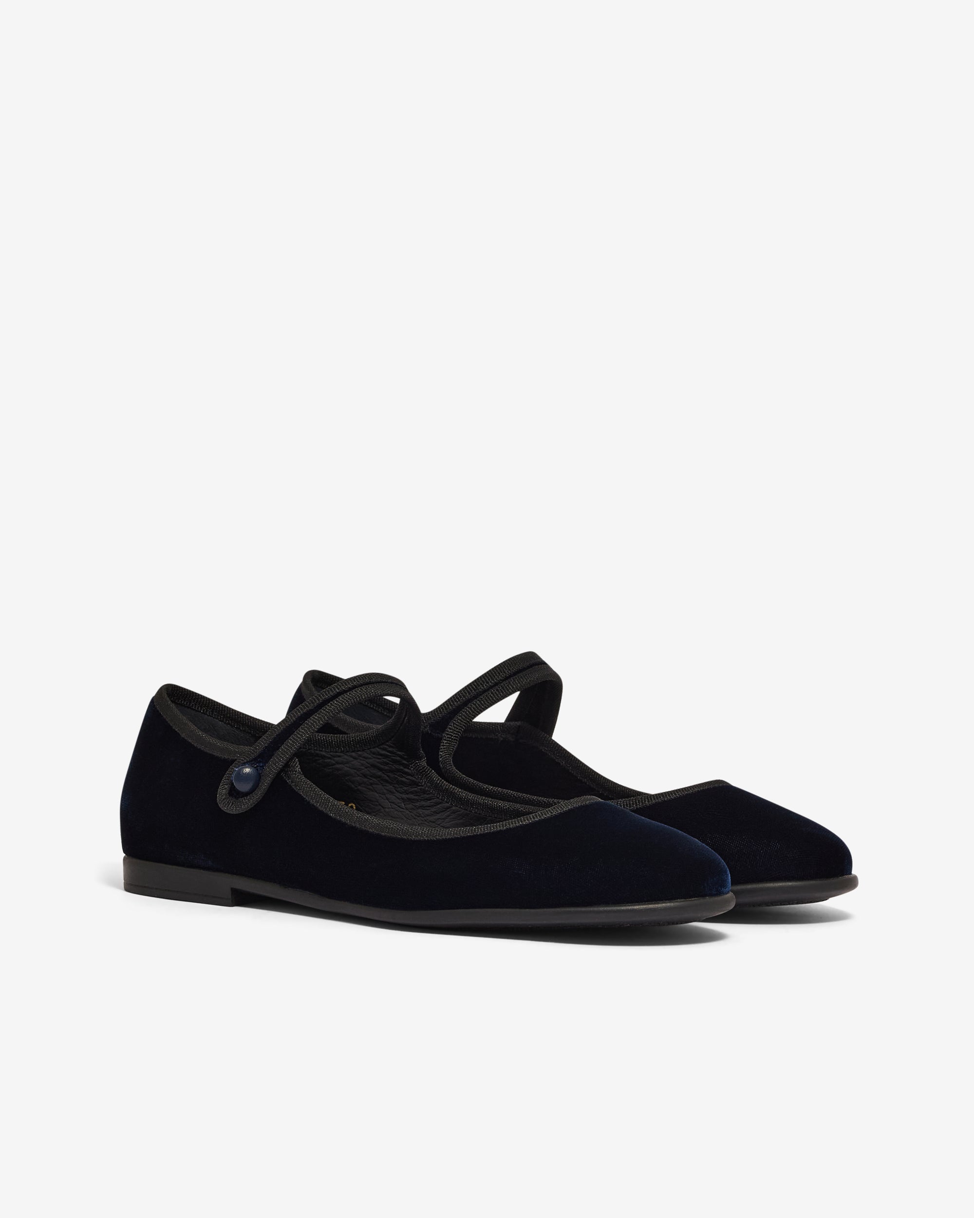 Round toeButton down strapFlat sole100% Cotton, 100% LeatherMade in Italy