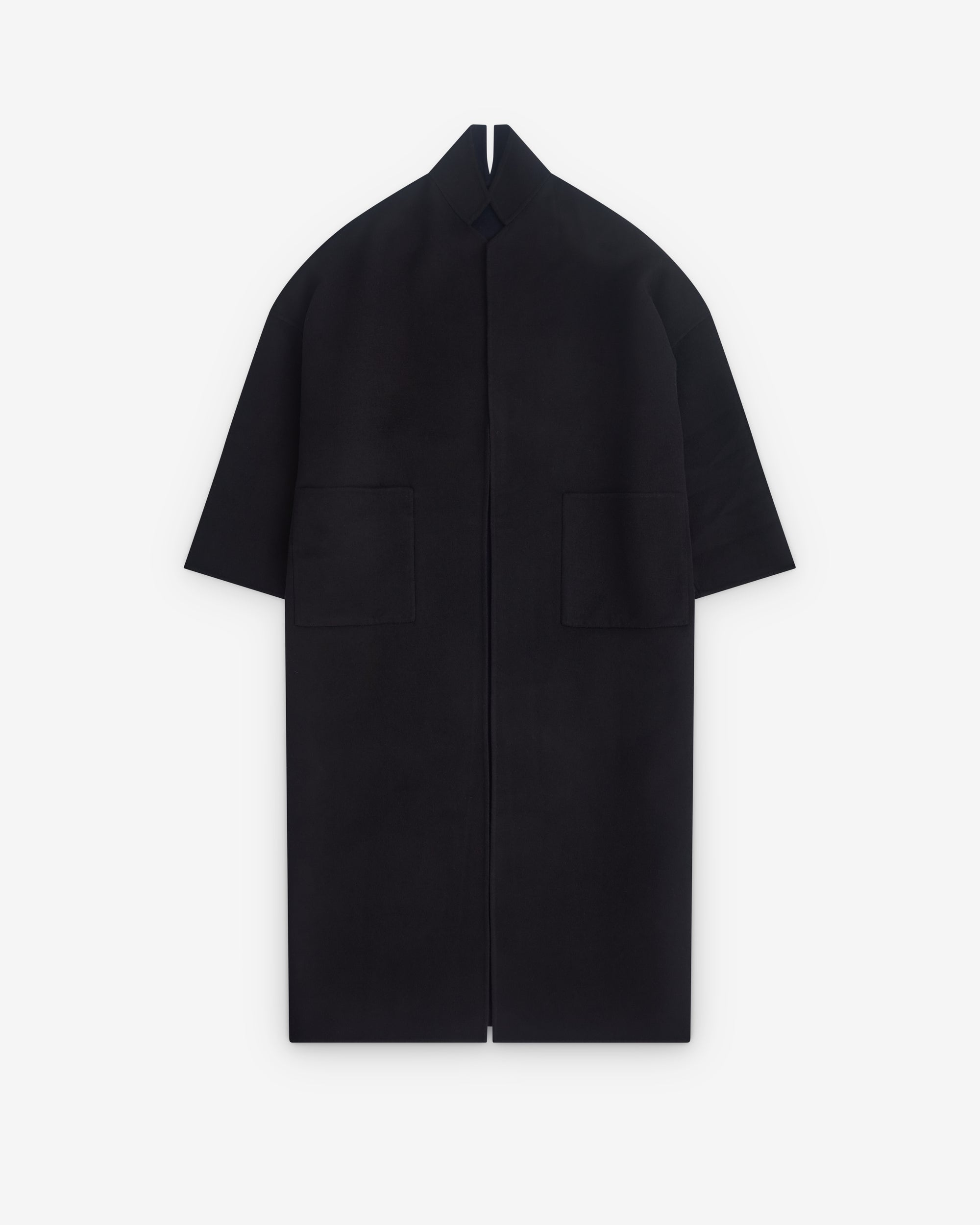 Stand collar3/4 length sleevesMid-lengthDropped shoulderUnlinedFront patch pockets