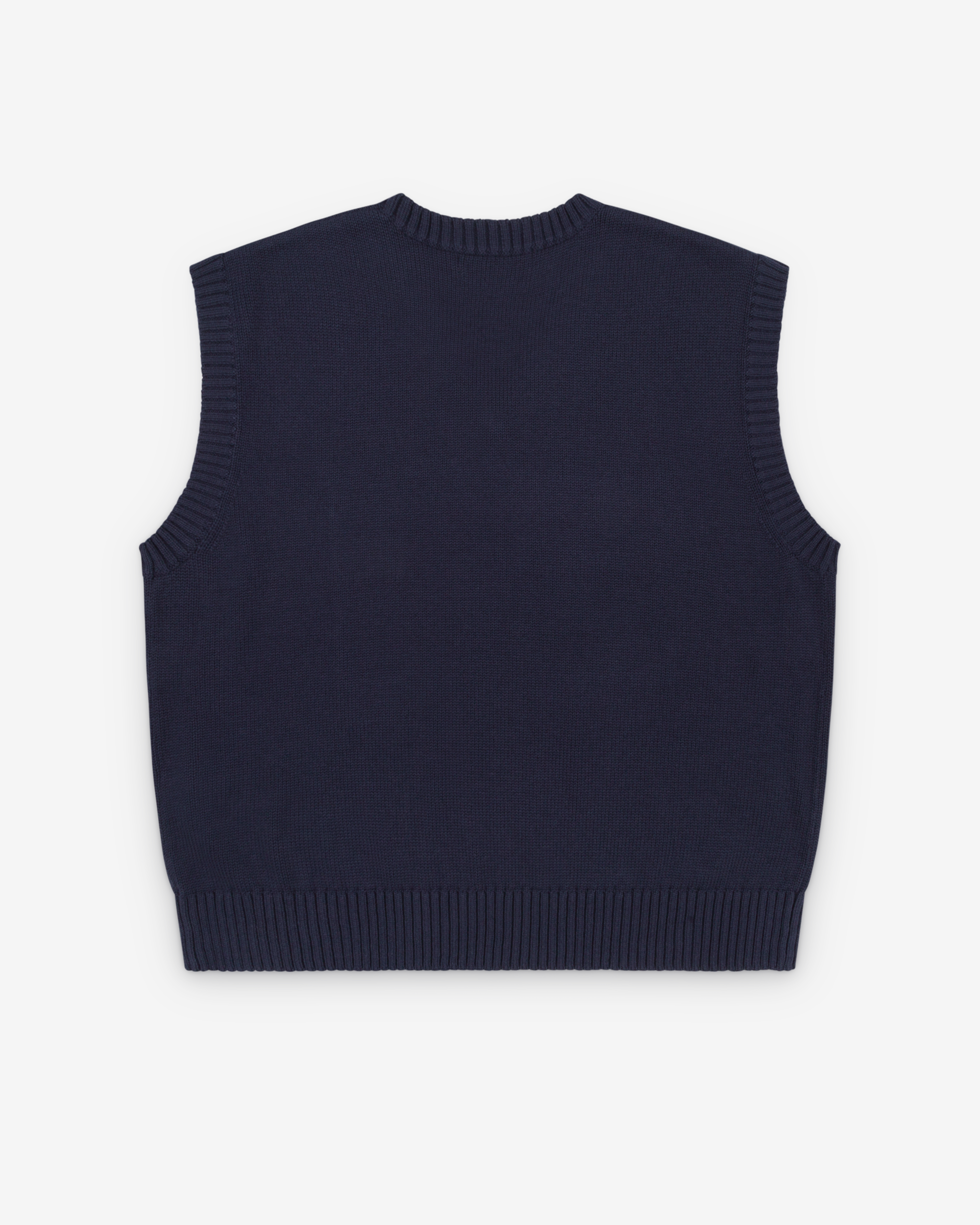 Ribbed v-neck lineIntarsia graphic at chestSleeveless