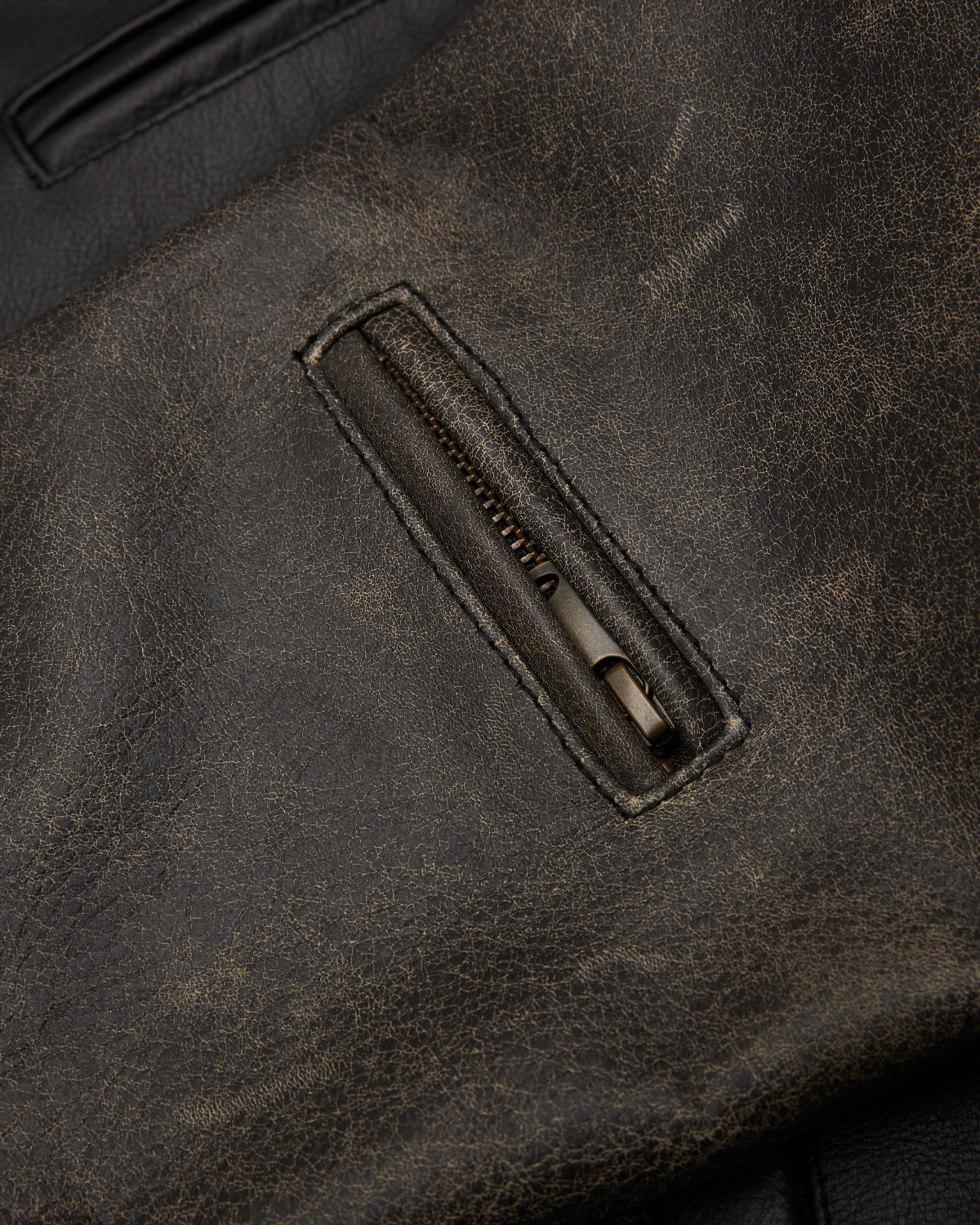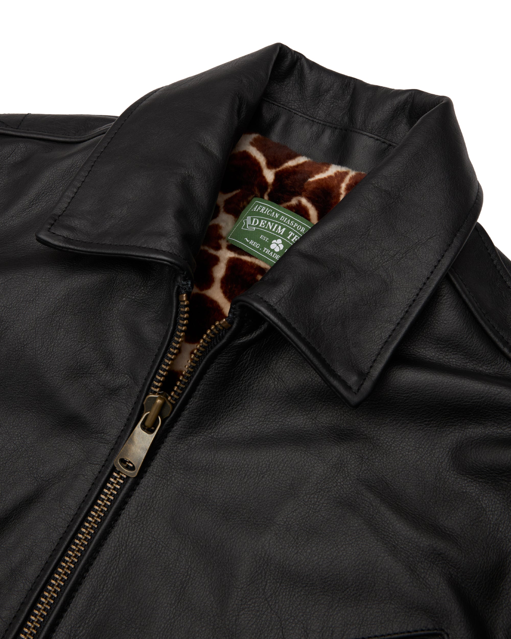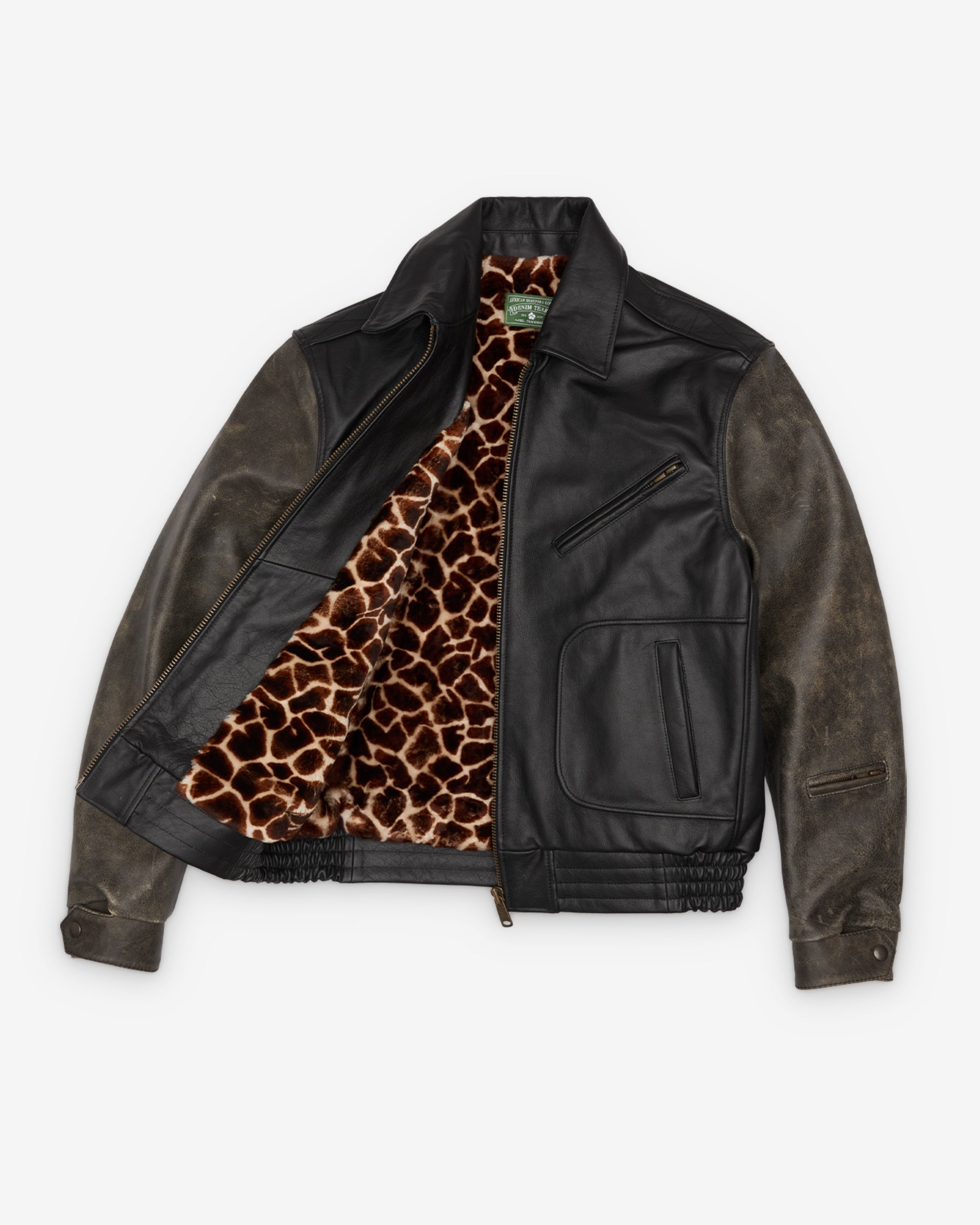 Classic collarZip up closureFront slip pocketsInternal leopard print lining
