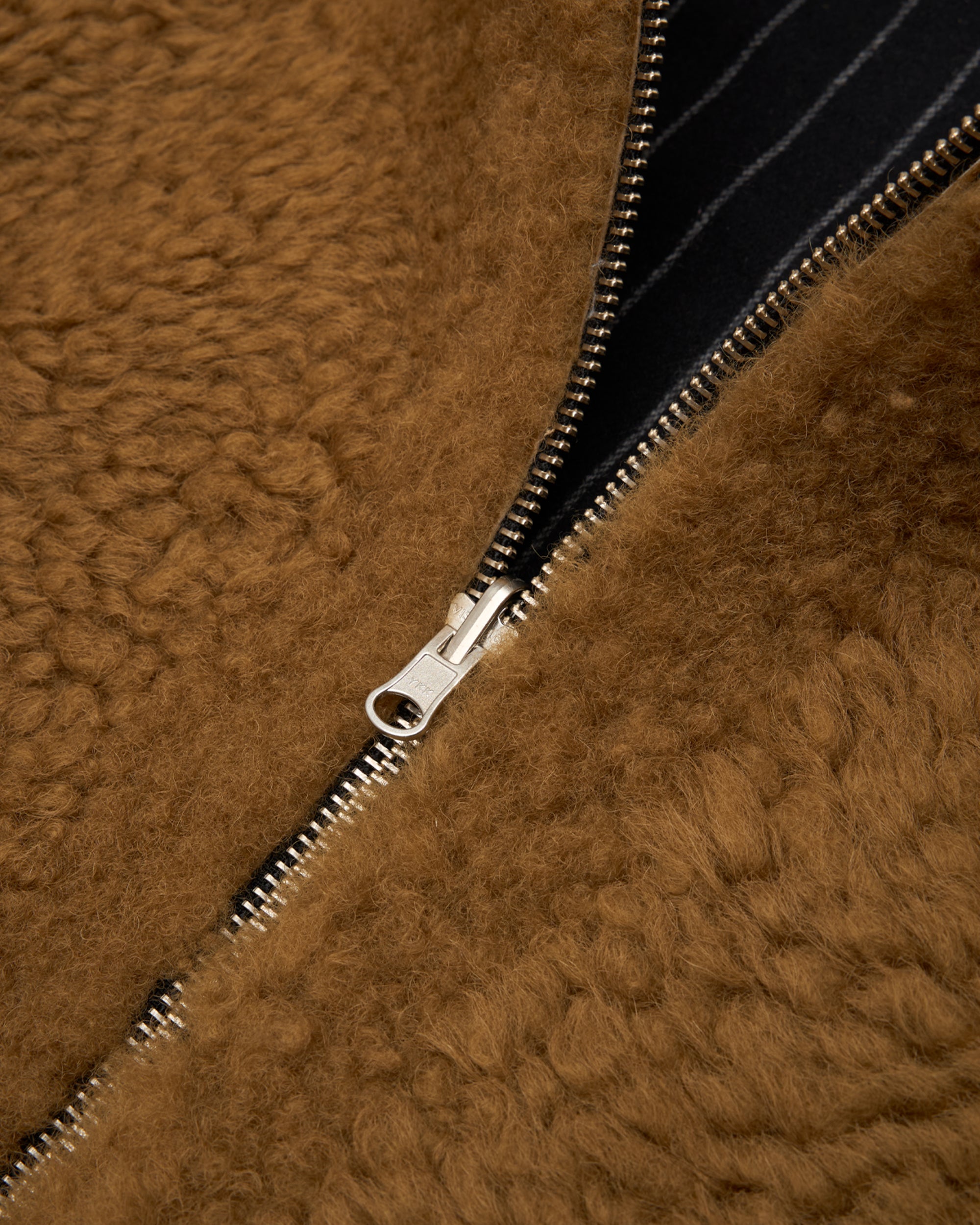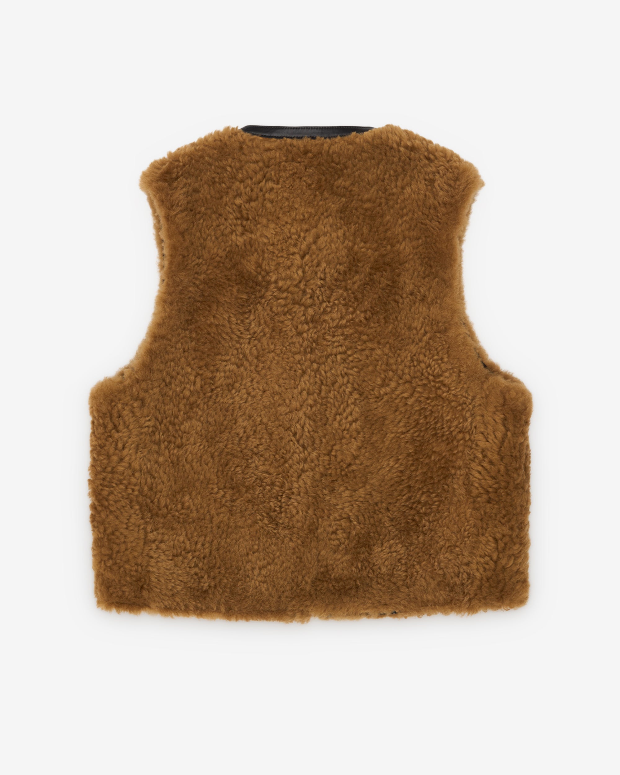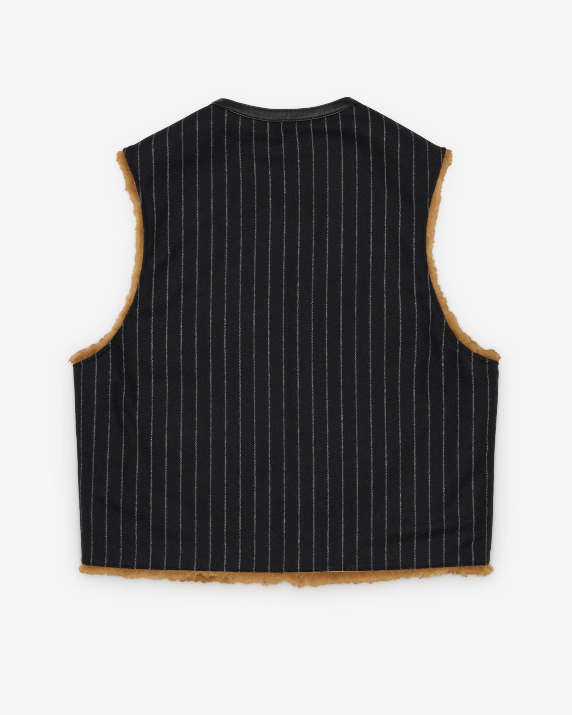 Pin stripe outerShearling internalreversible Zip up closureSleeveless