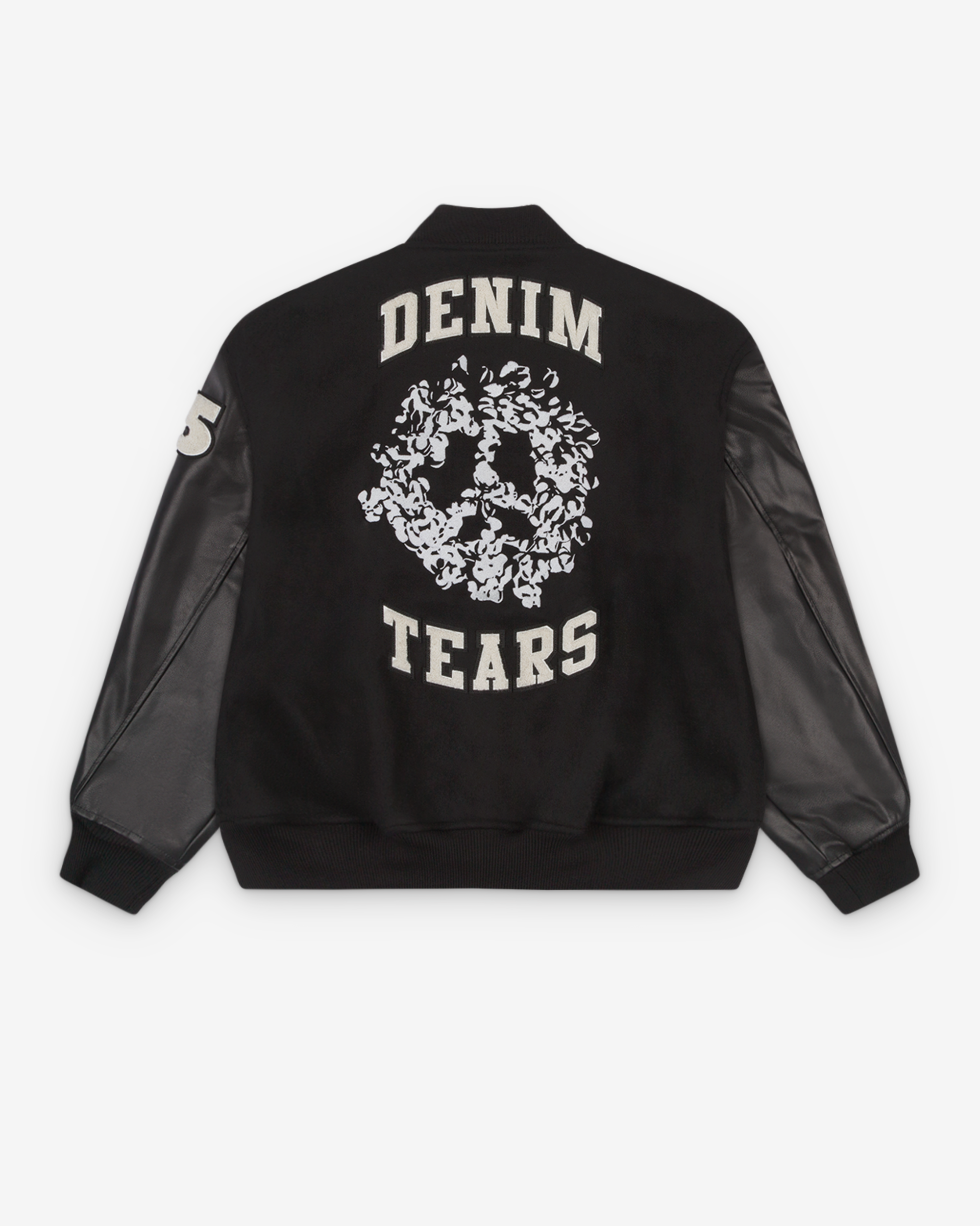 Varsity collarButton closureFront slip pocketsGraphic patches all overInternal liningLeather sleeves