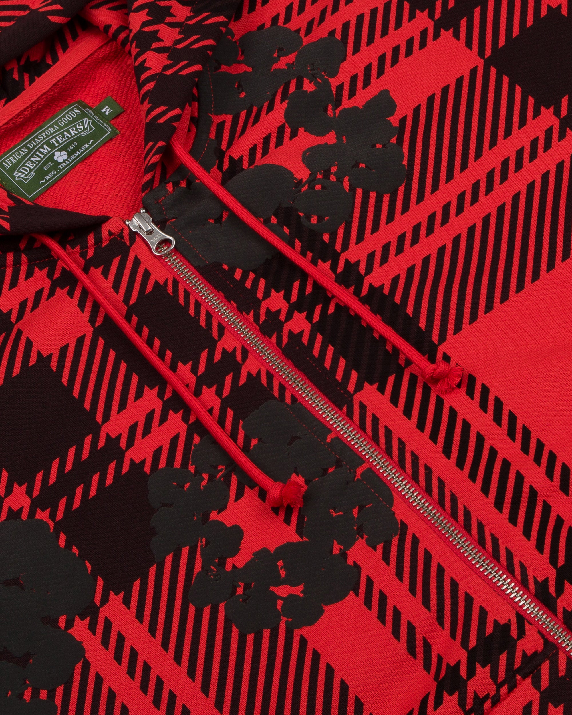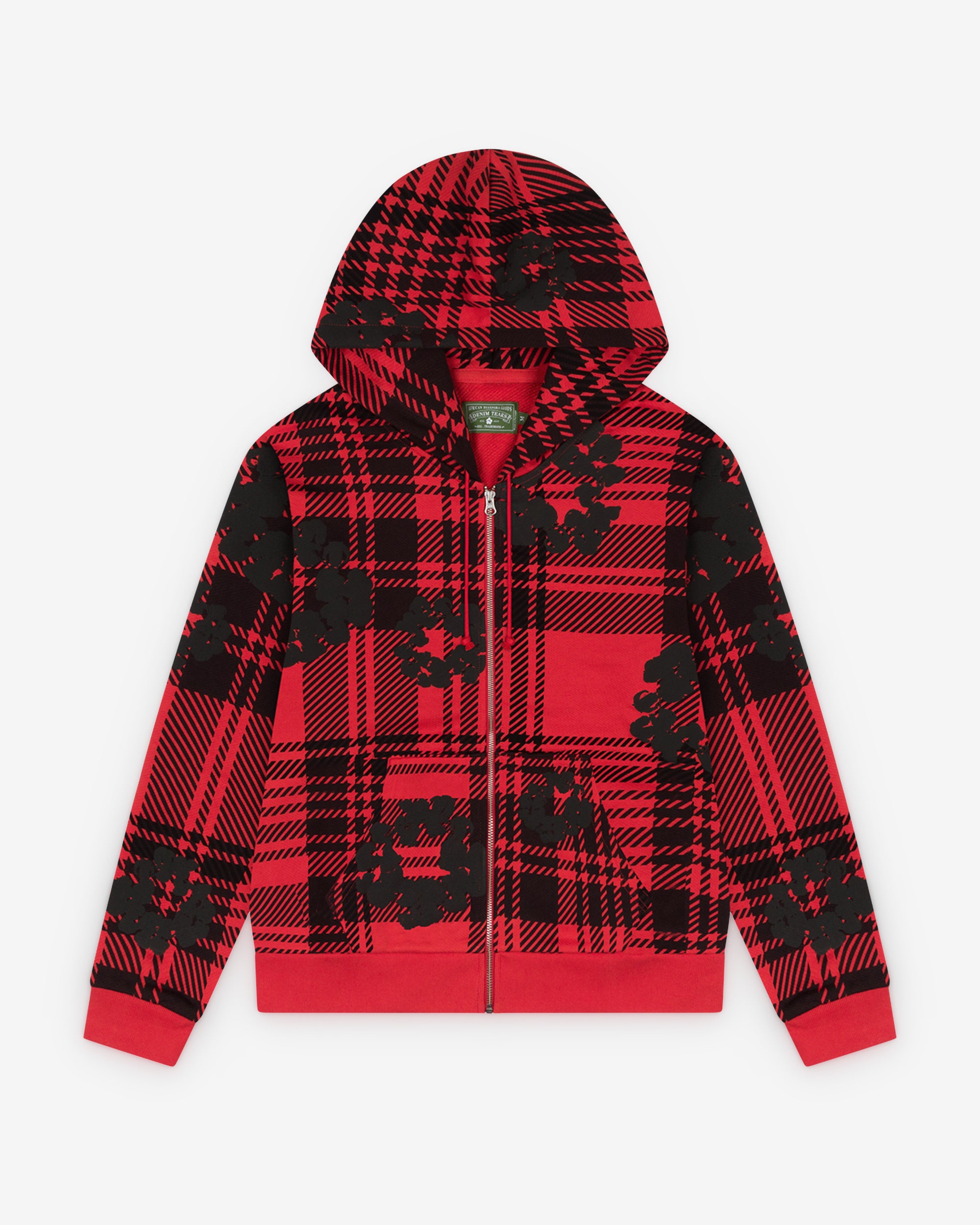 Denim Tears Men's Plaid Cotton Wreath Zip Hoodie Red