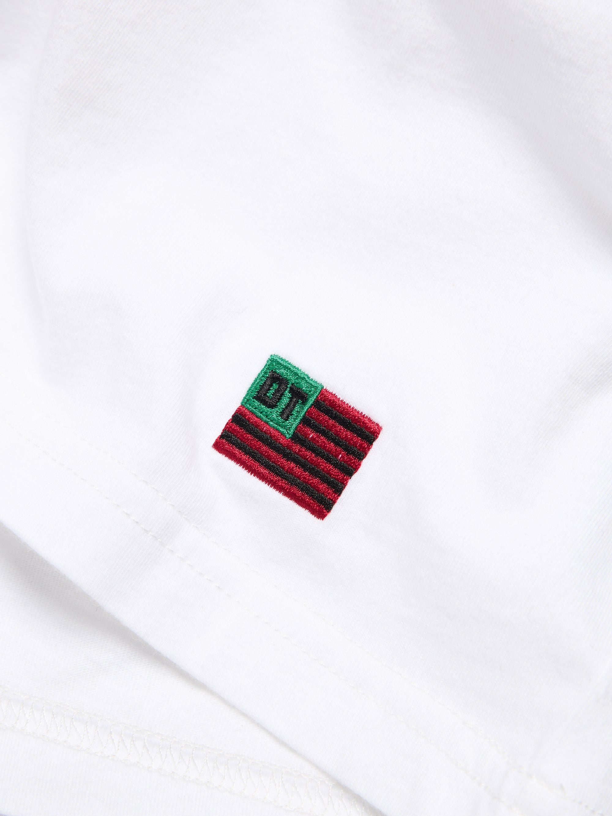 Embroidered flag at hem