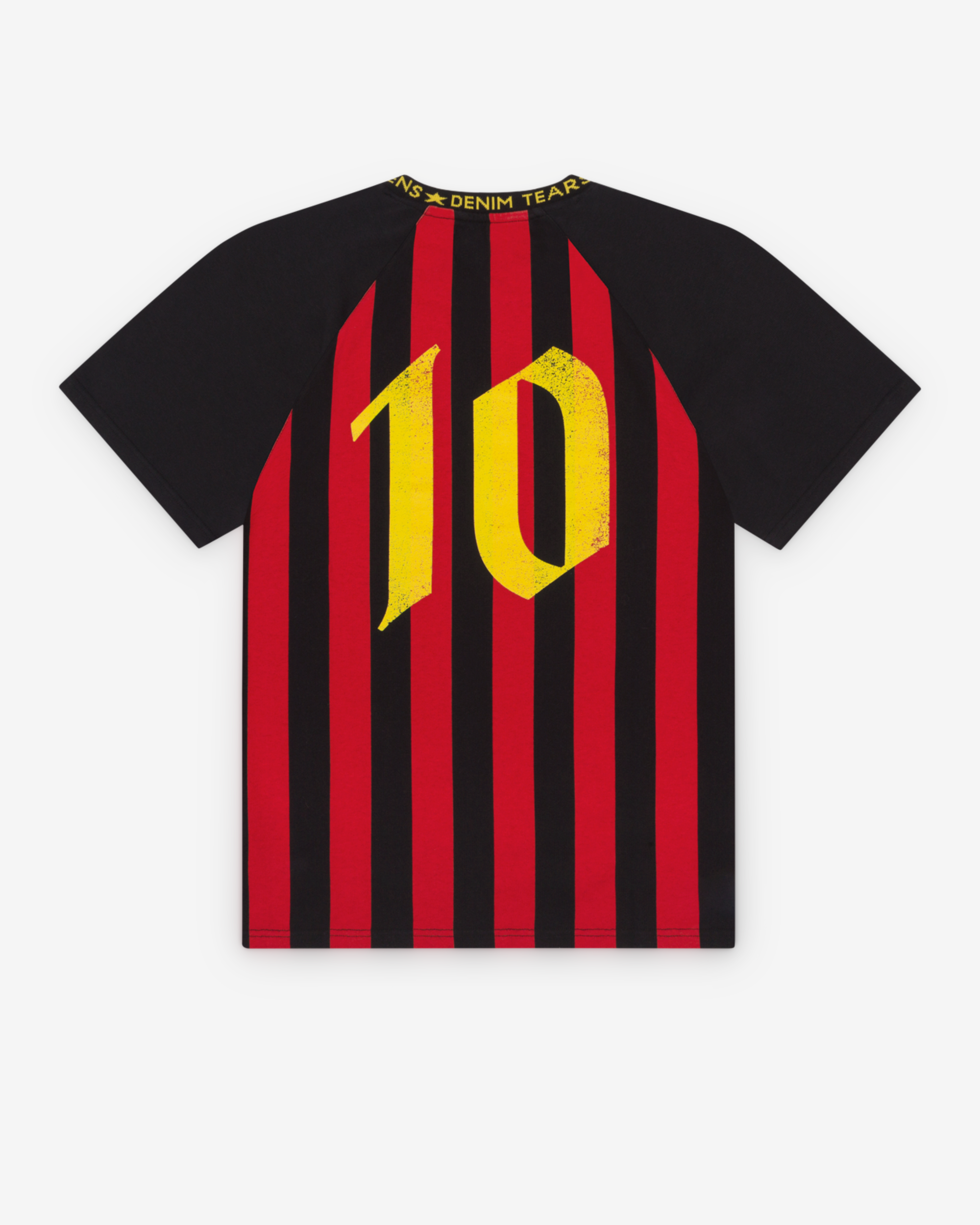 Short sleevesCrew necklineStripe bodyContrast sleevesGraphic print at chest and back