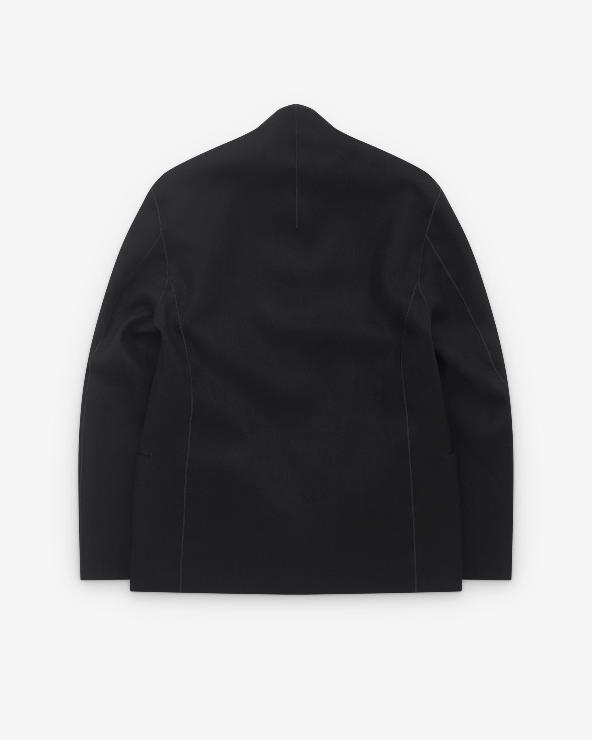 Double breastedSatin piping throughoutWelt pocketsUnlined
