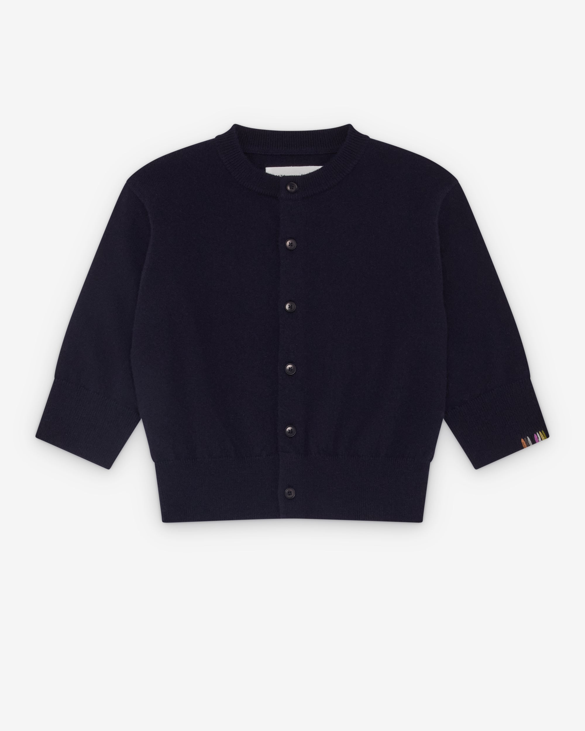 Button front closureEmbroidery at sleeve hemCropped fit100% CashmereMade in China