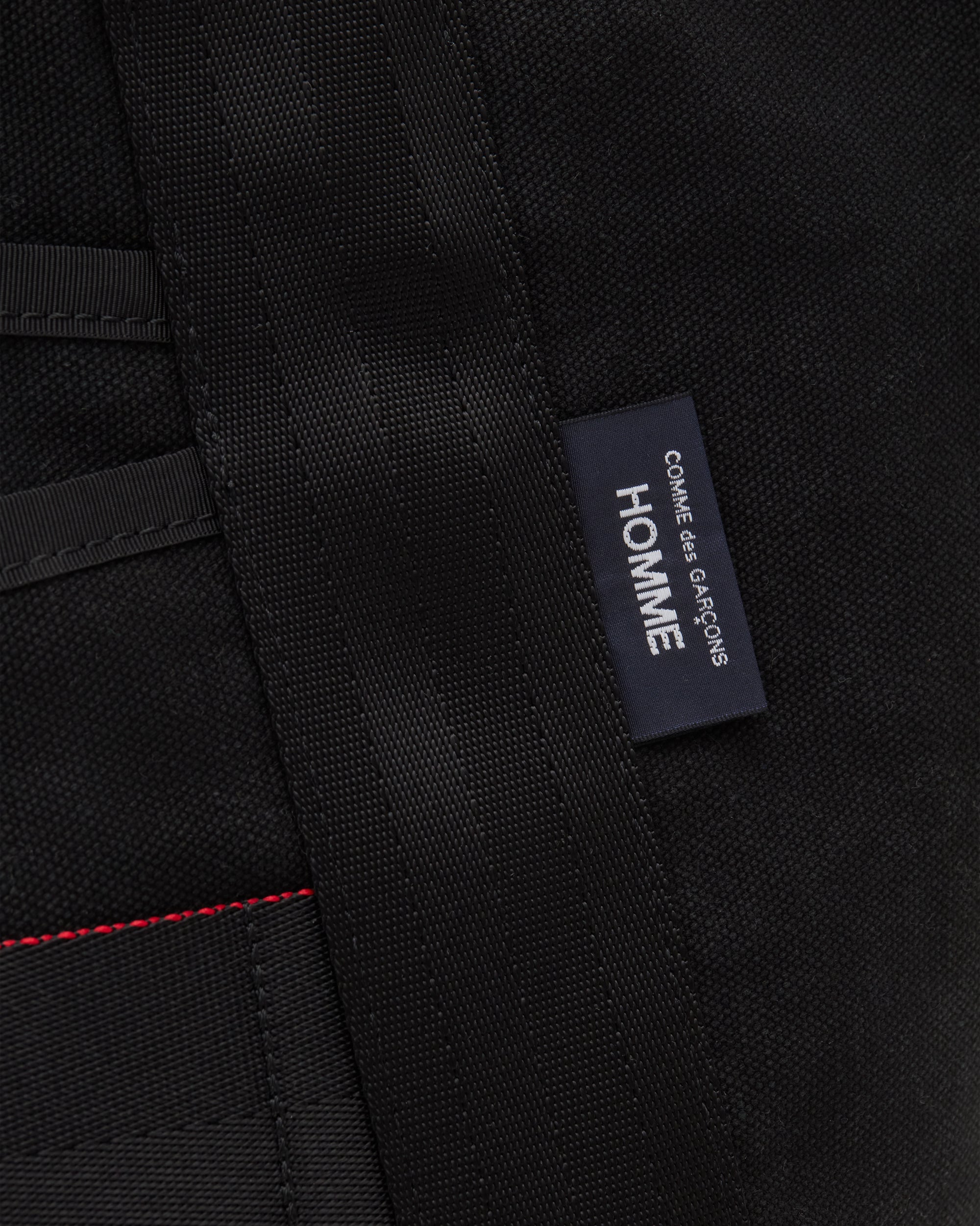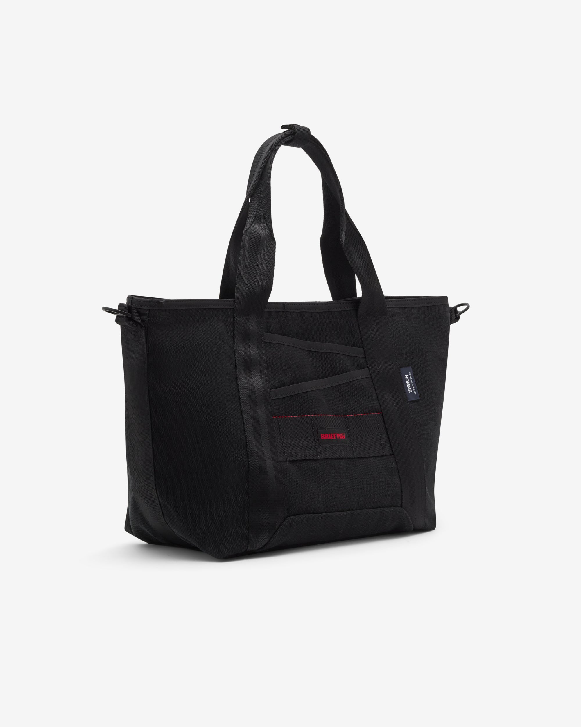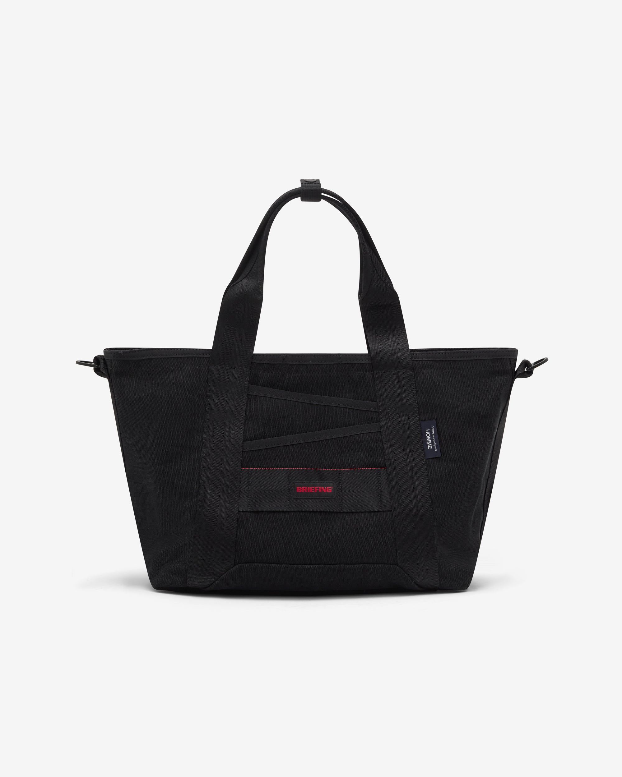 Top carry handleThick cotton canvas fabricCDG Homme tab label at frontDetachable shoulder strapSingle internal pocketOne main compartment Two front pockets