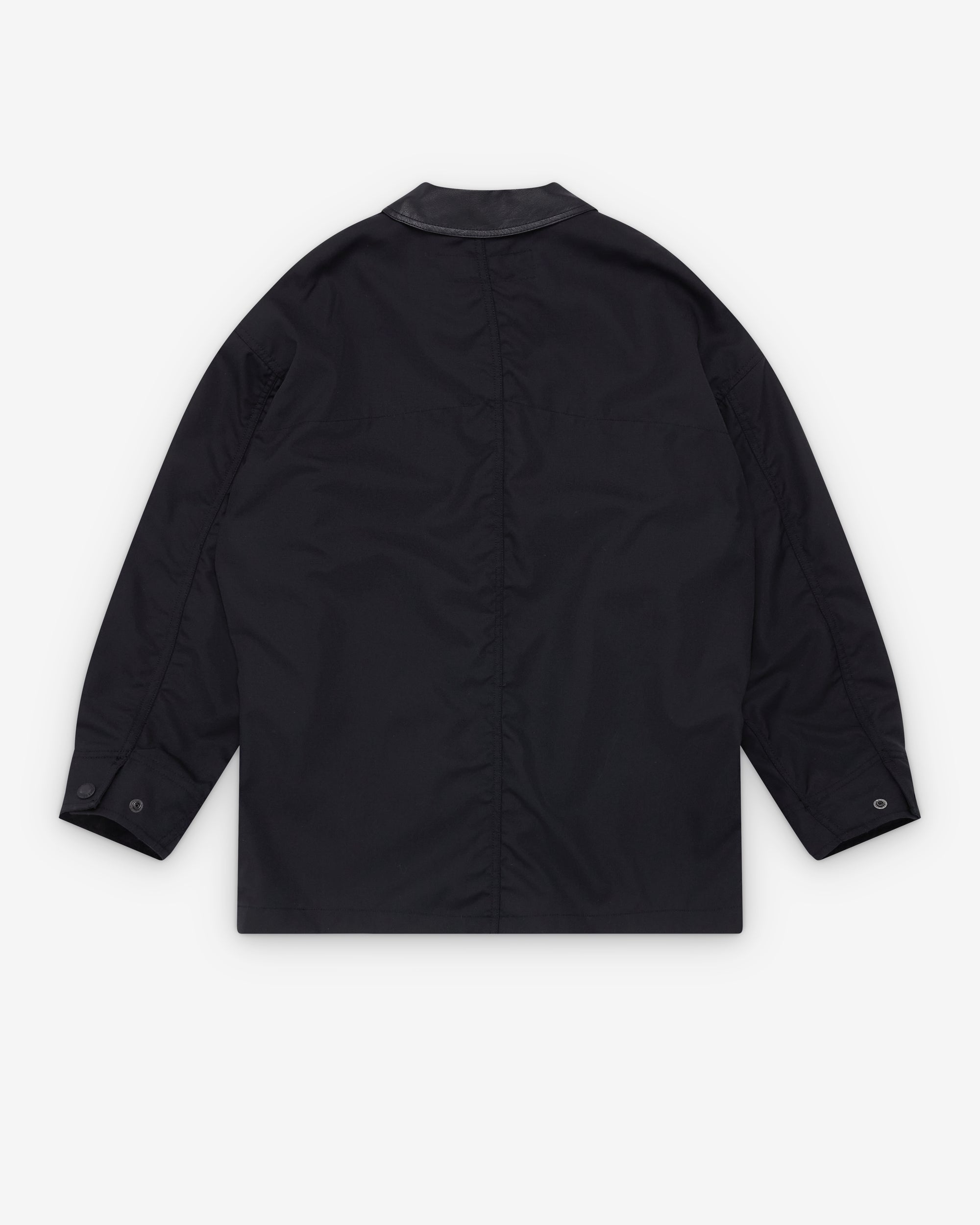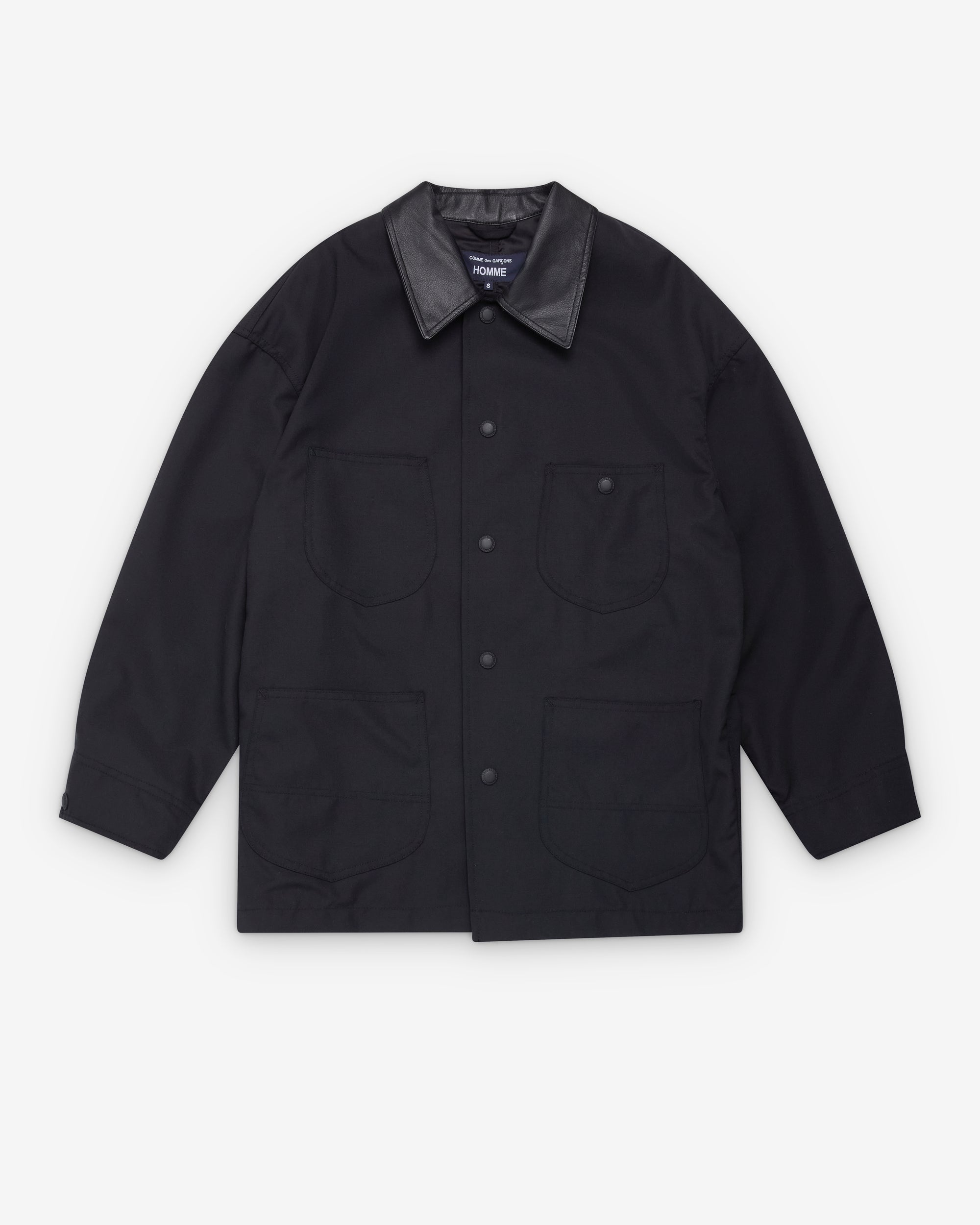 Four front pocketsPop button closureInternal liningBoxy fitSynthetic leather collarButton cuffs