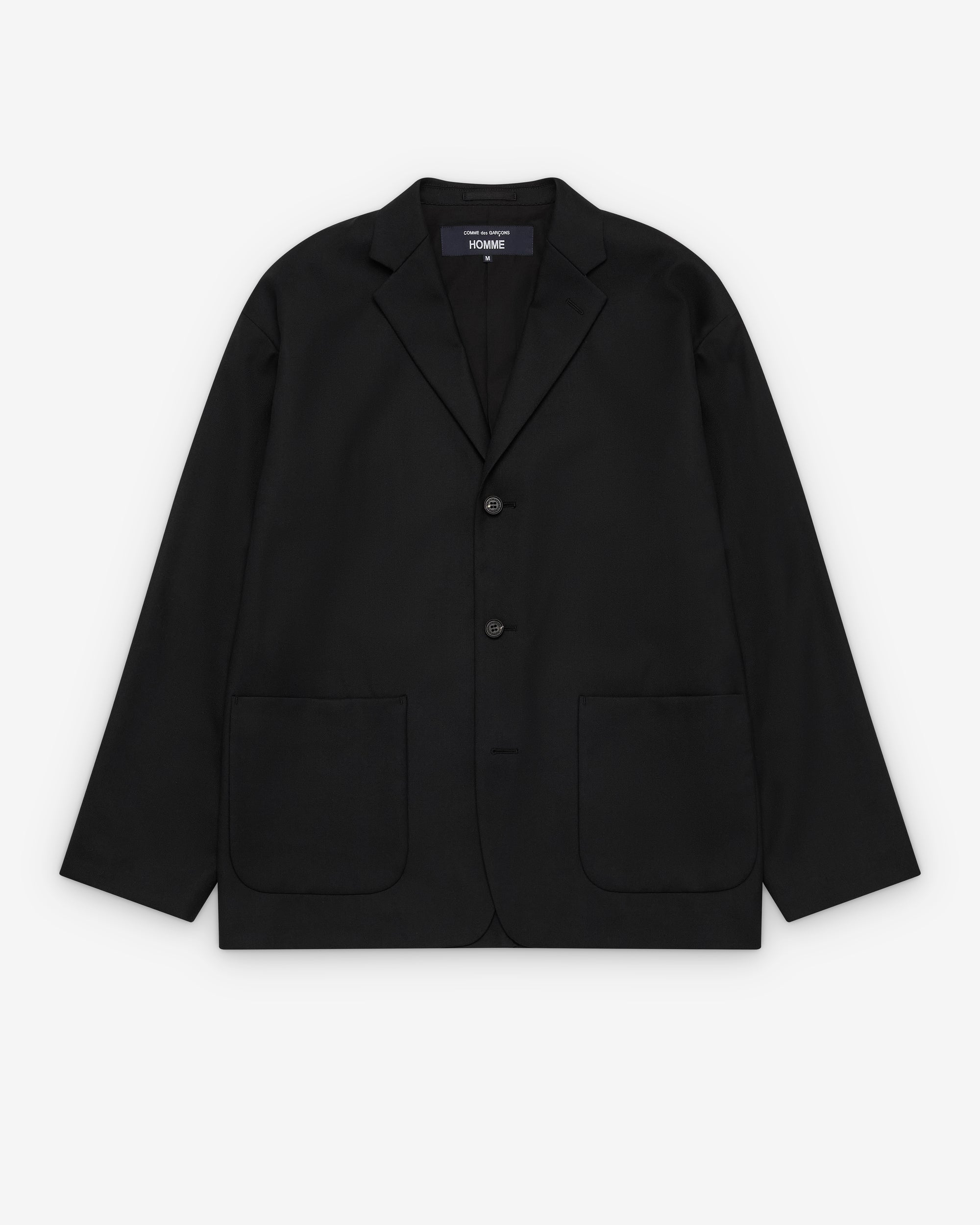 Single breast collarNotched lapelThree button closure Boxy fitFront patch pocketsInternal lining