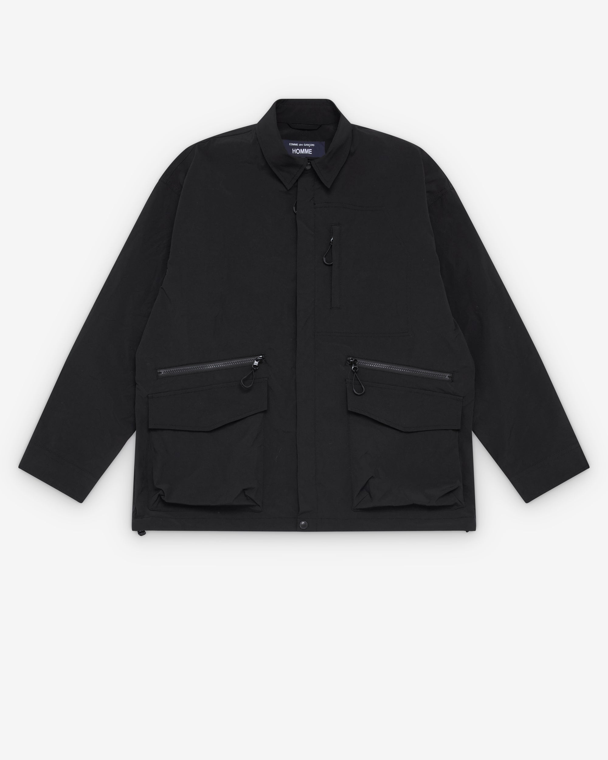 Classic collarConcealed zip closureFront zip close pocketsSnap button placket