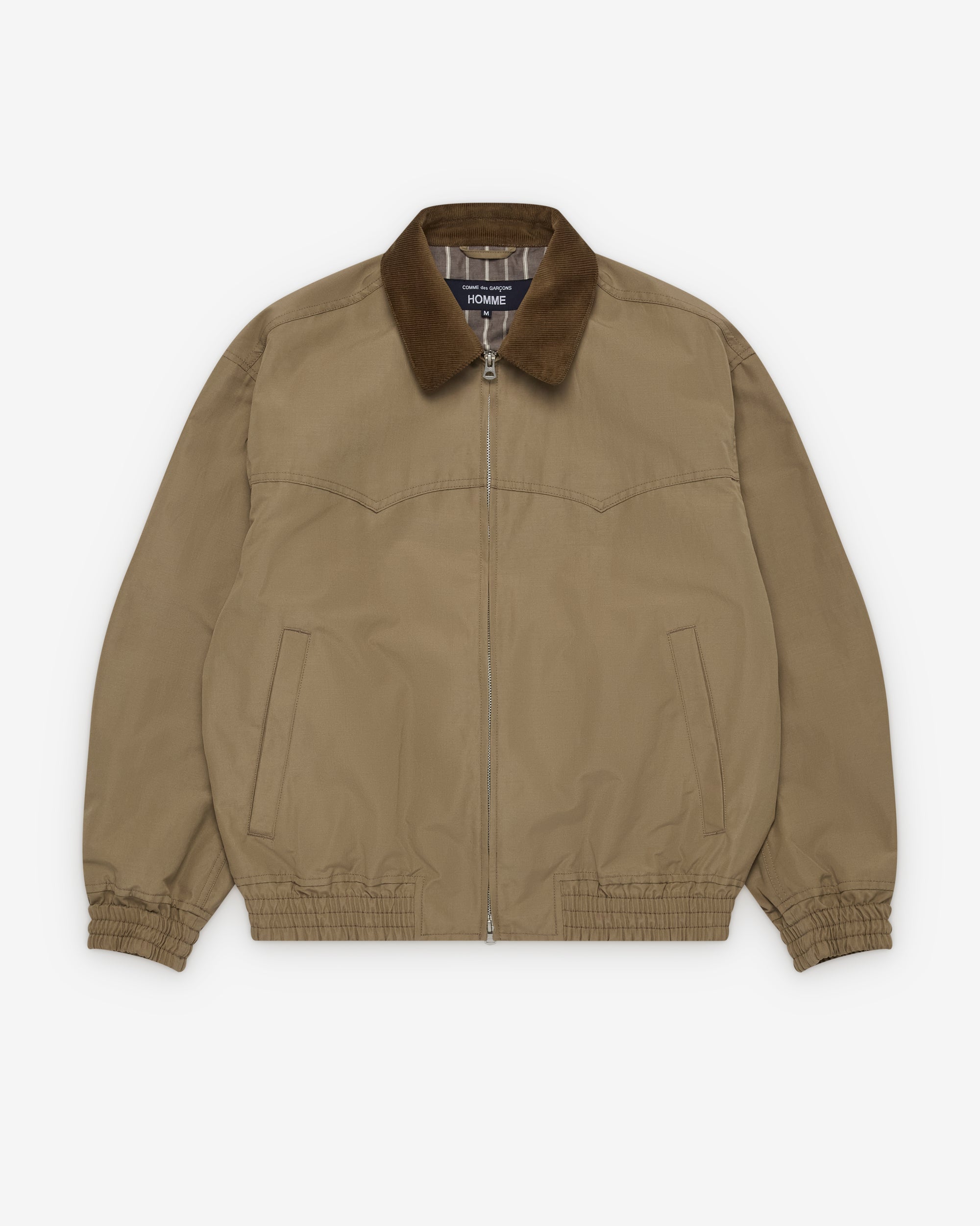 Corduroy classic collarTwo way zip closureTwo front slip pocketsElasticated cuffs and hemInternal cotton lining Two internal pockets