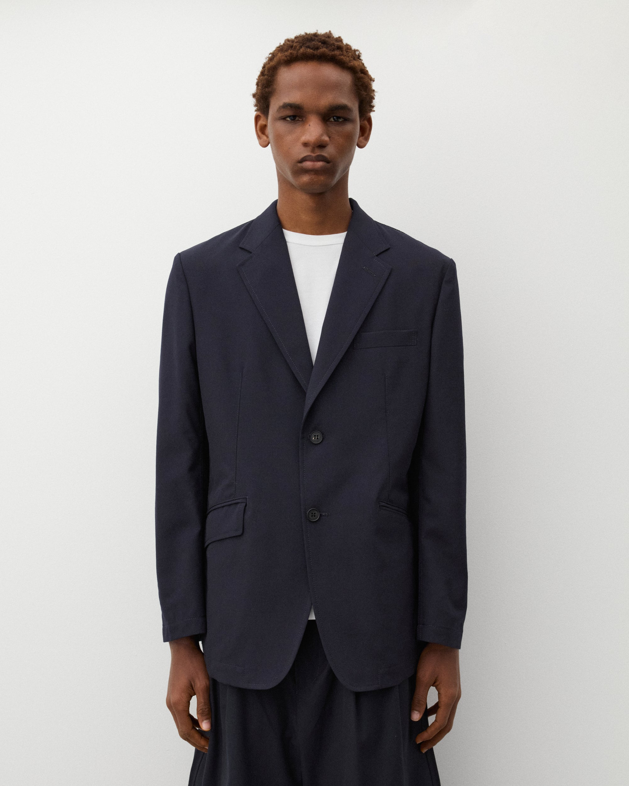 Single breasted Two button closureChest pocketsTwo front pocketsInternal lining and pockets