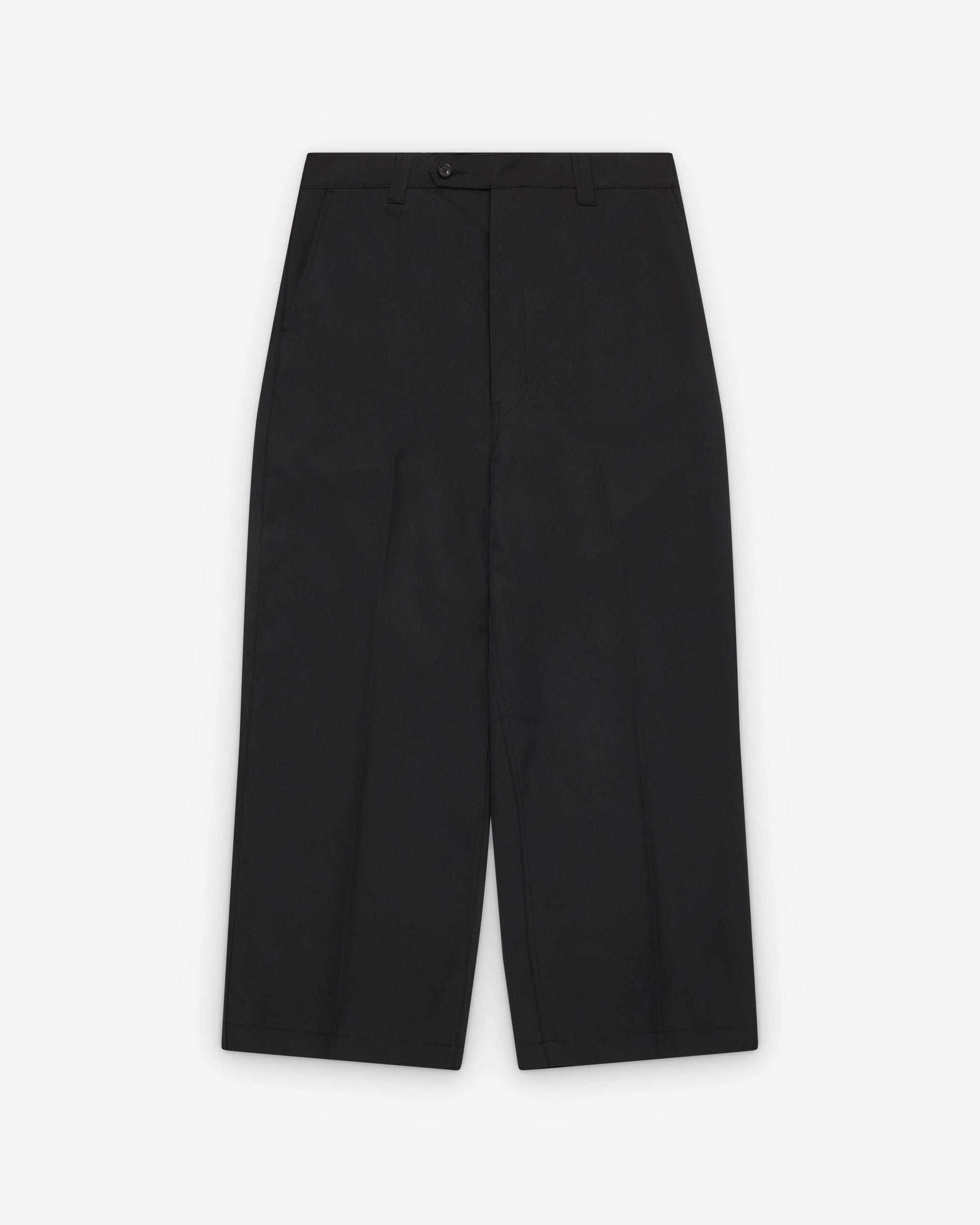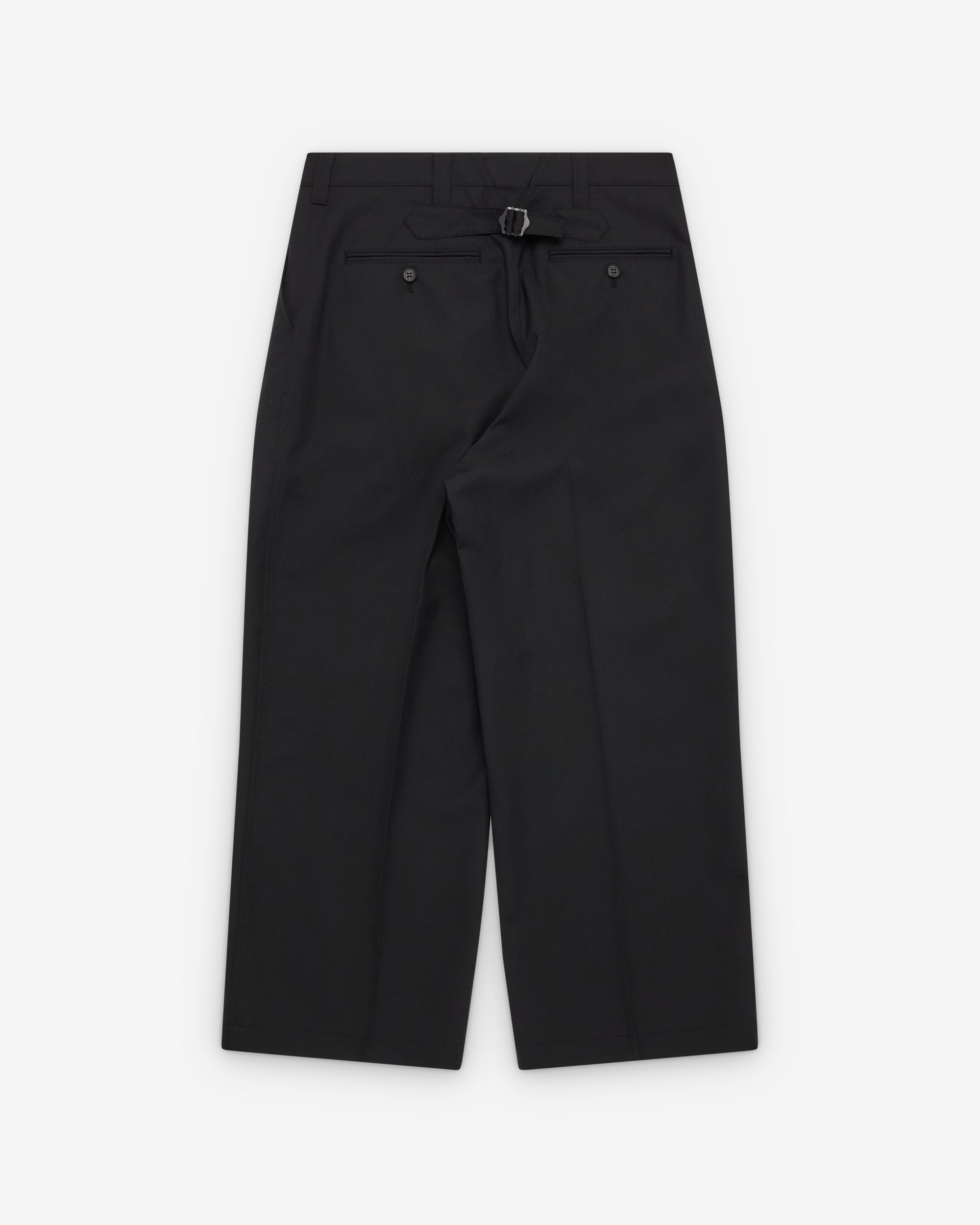 Double button waist closureButton flySlip pocketsPleated front Two back pocketsAdjustable back tap