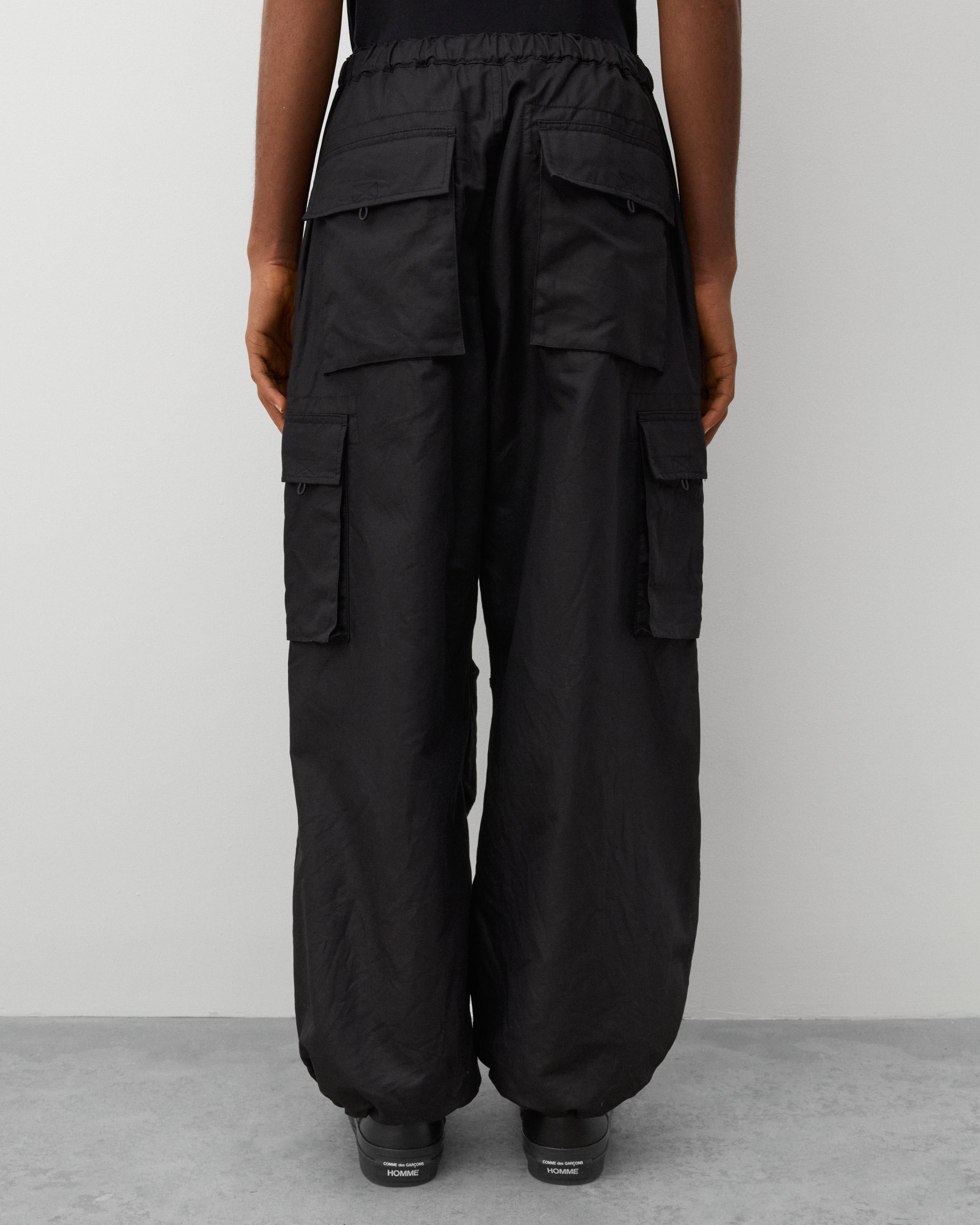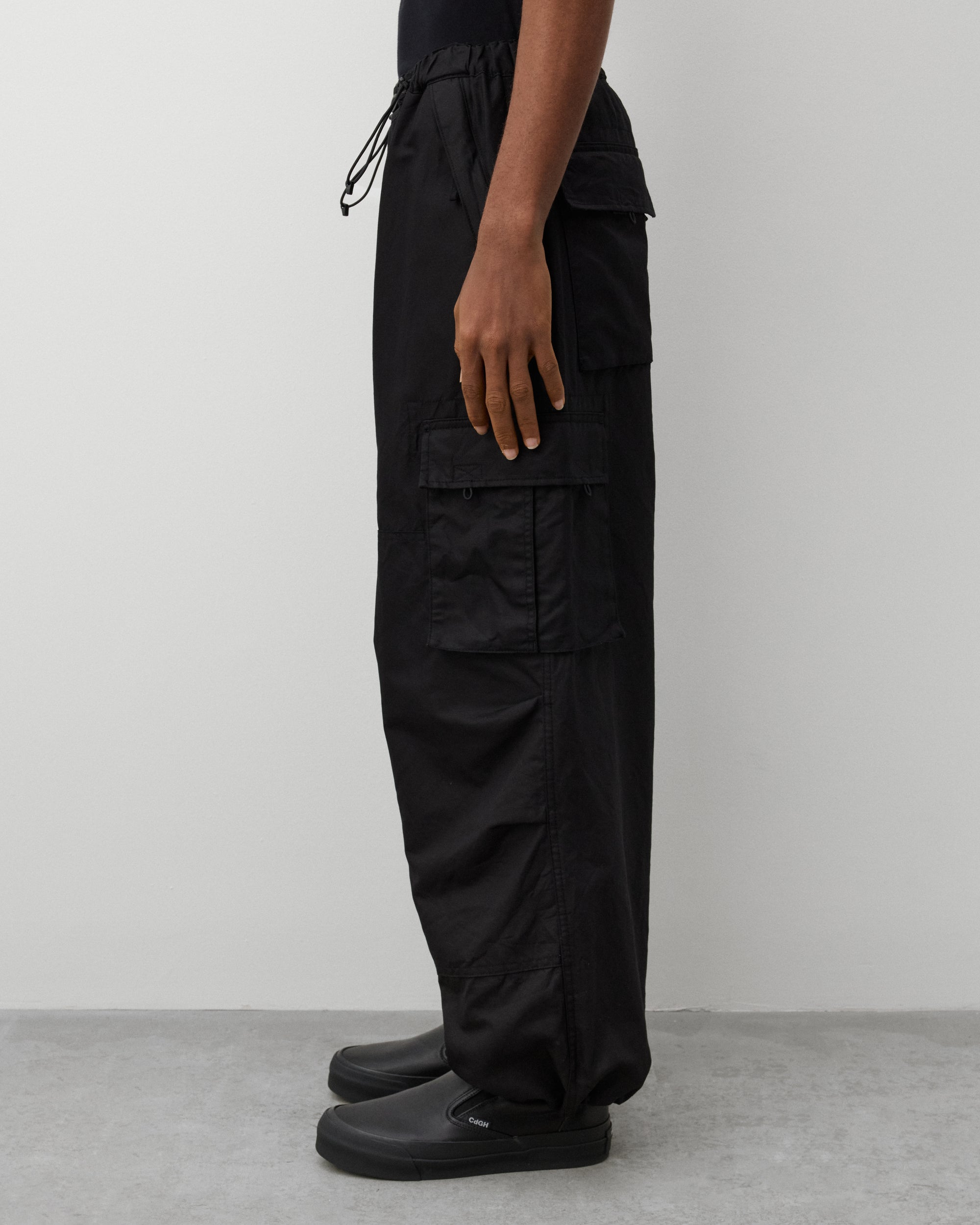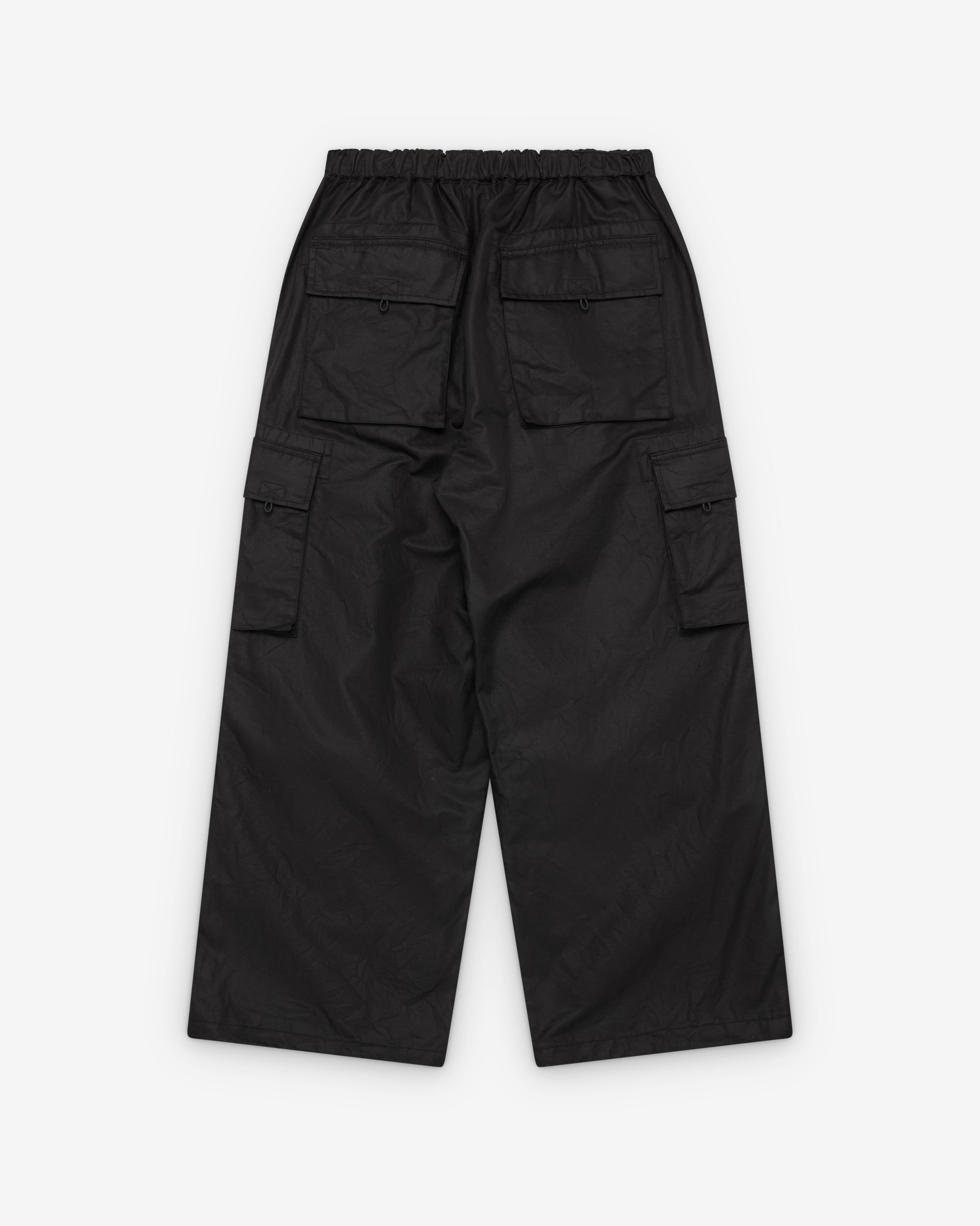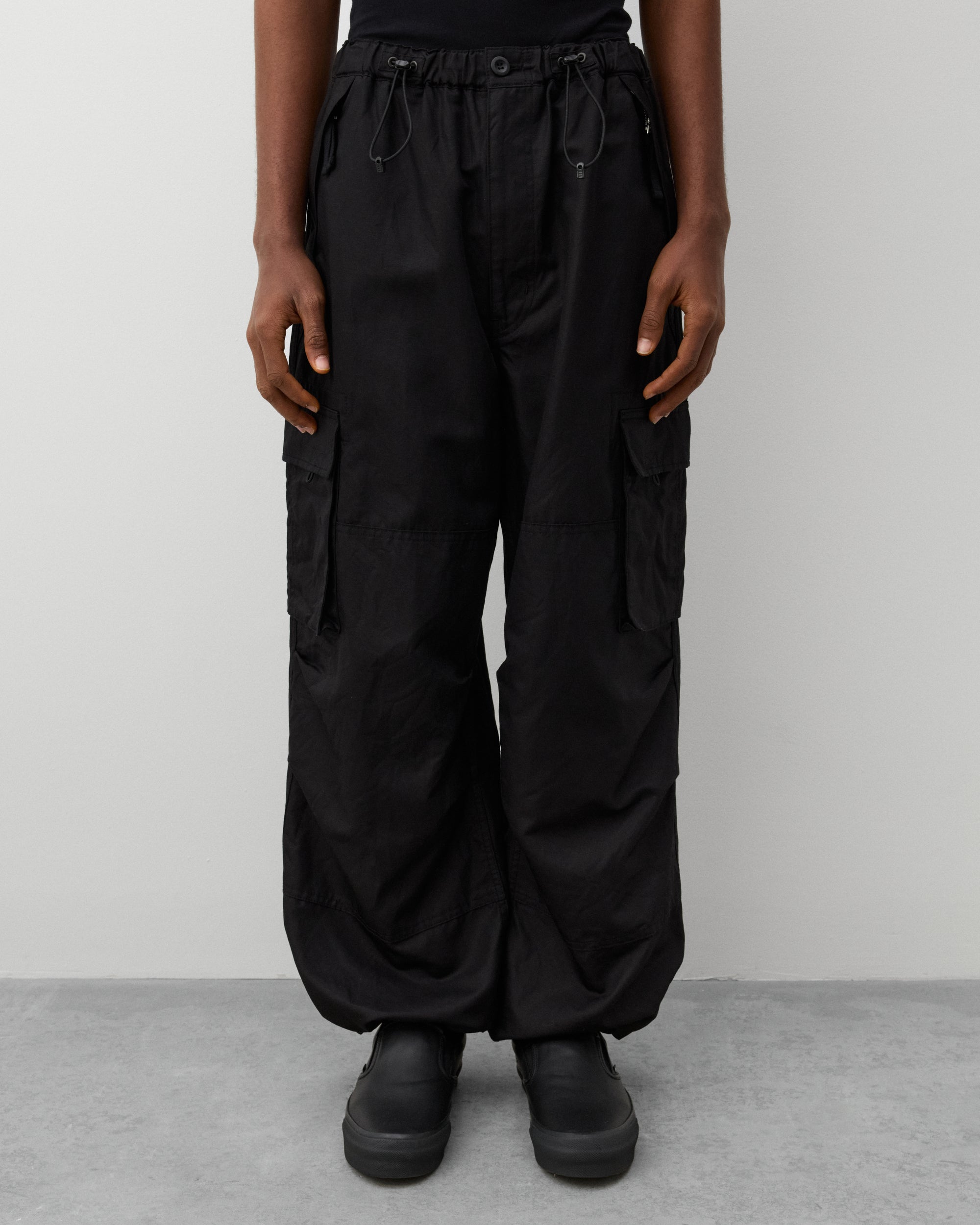 Button waistPull cord elasticated waistZip close front pocketsCargo leg pocketWide legTwo back pockets