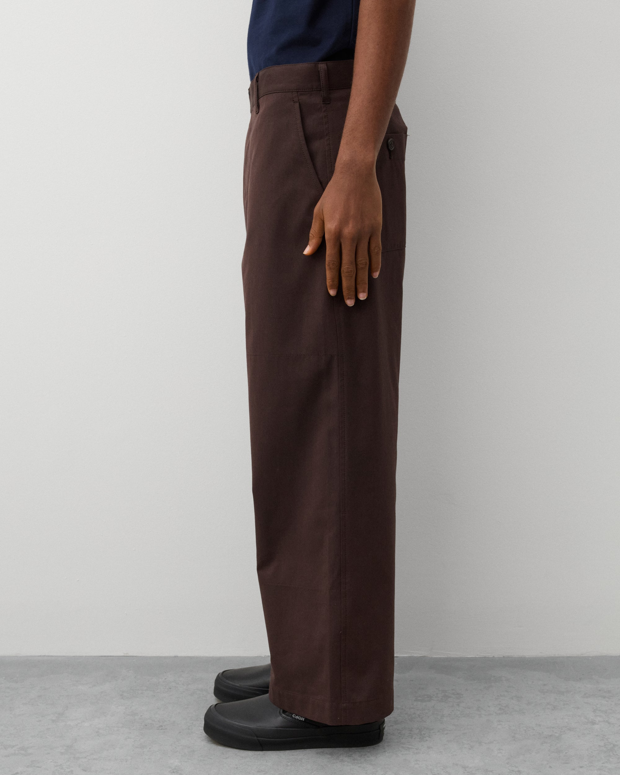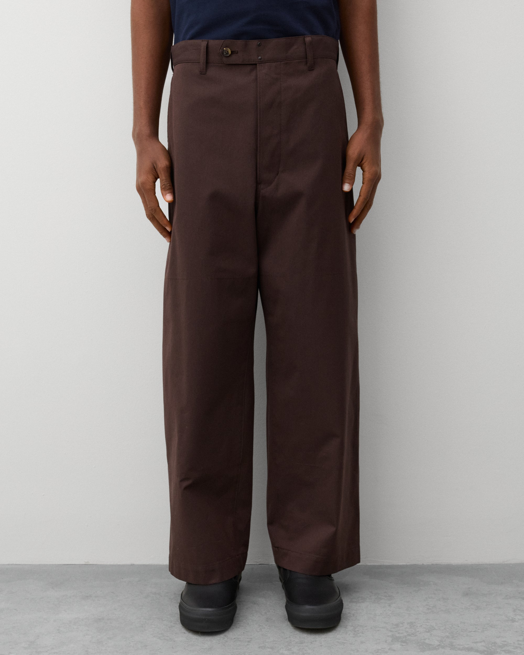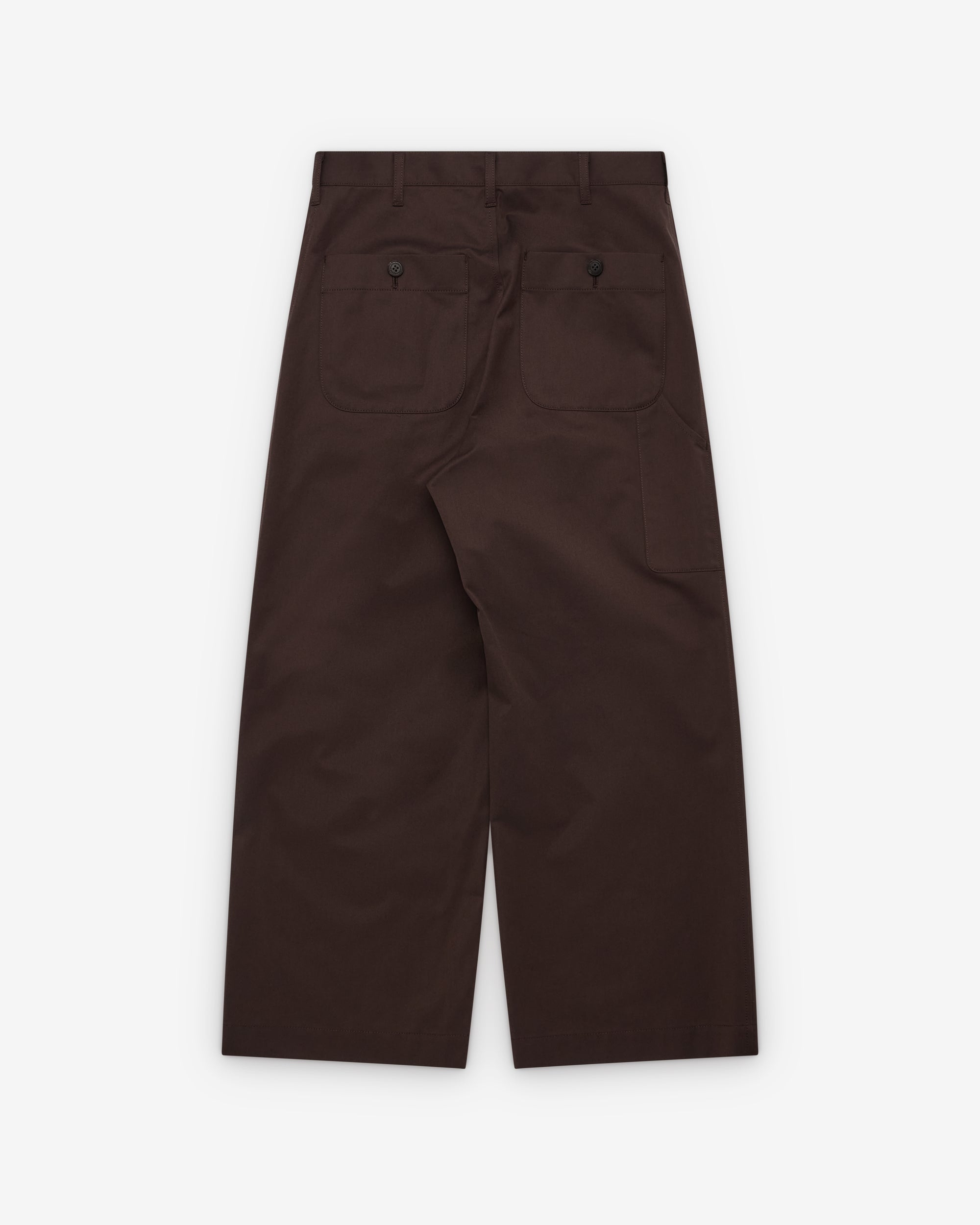 Button waist and flySide seam slip pocketsWide legPanelled constructionTwo rear pockets