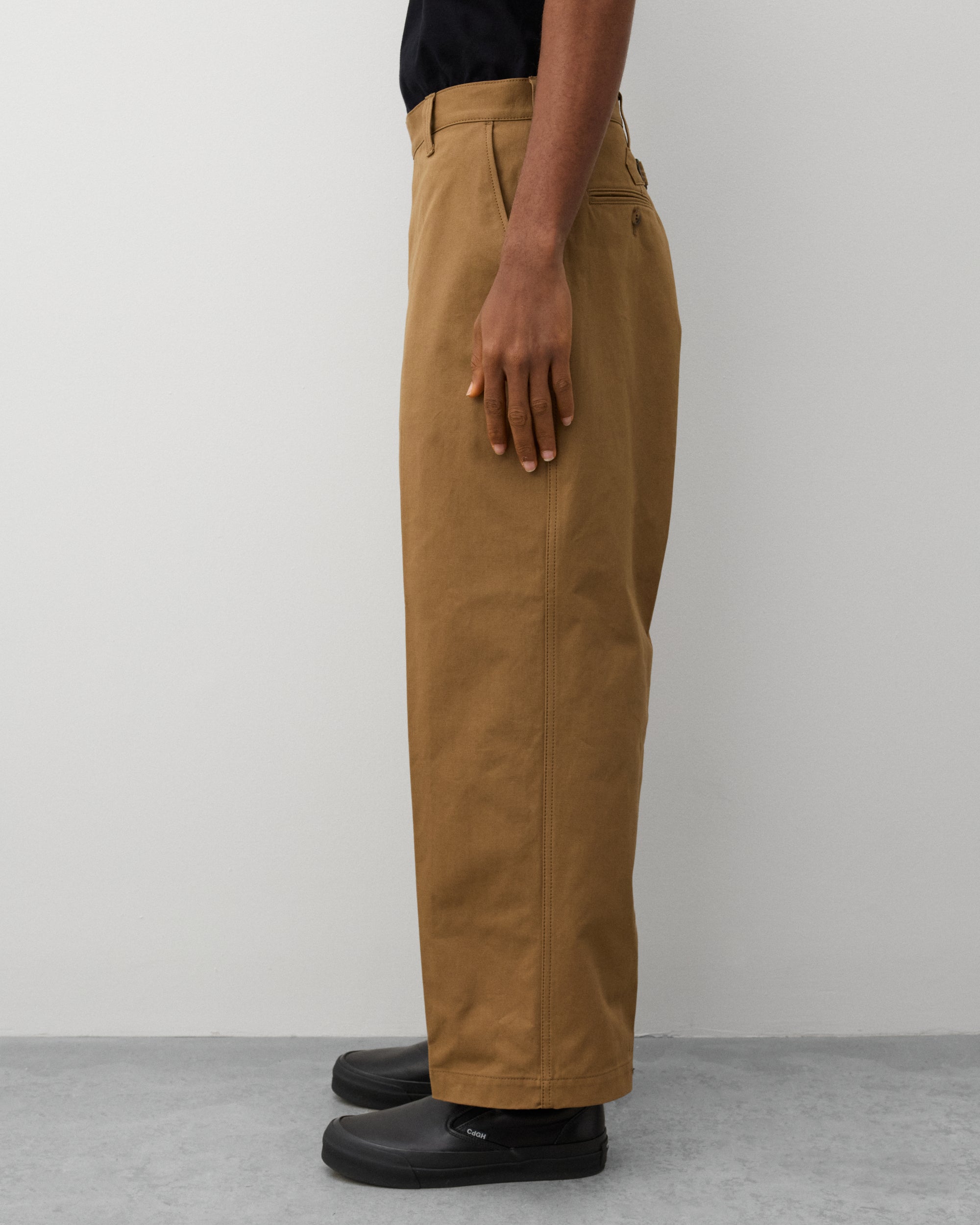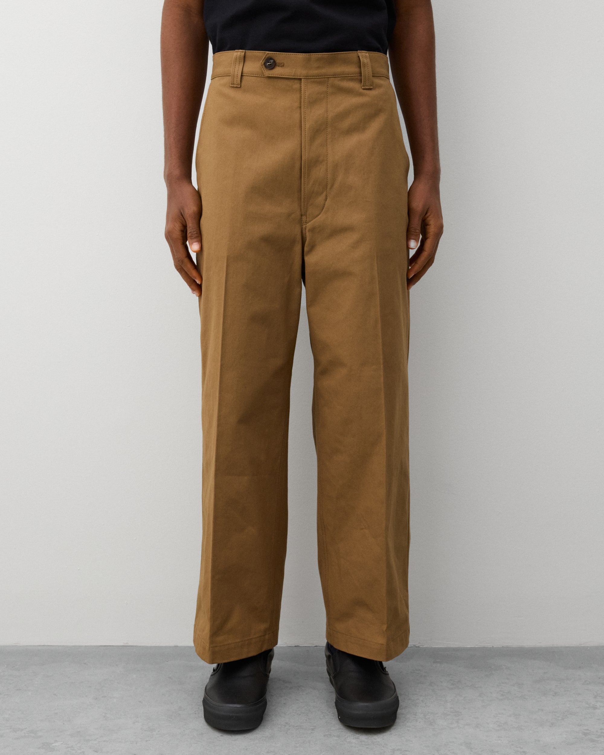 Dual button close waistButton flySide seamPleated frontLoose fit