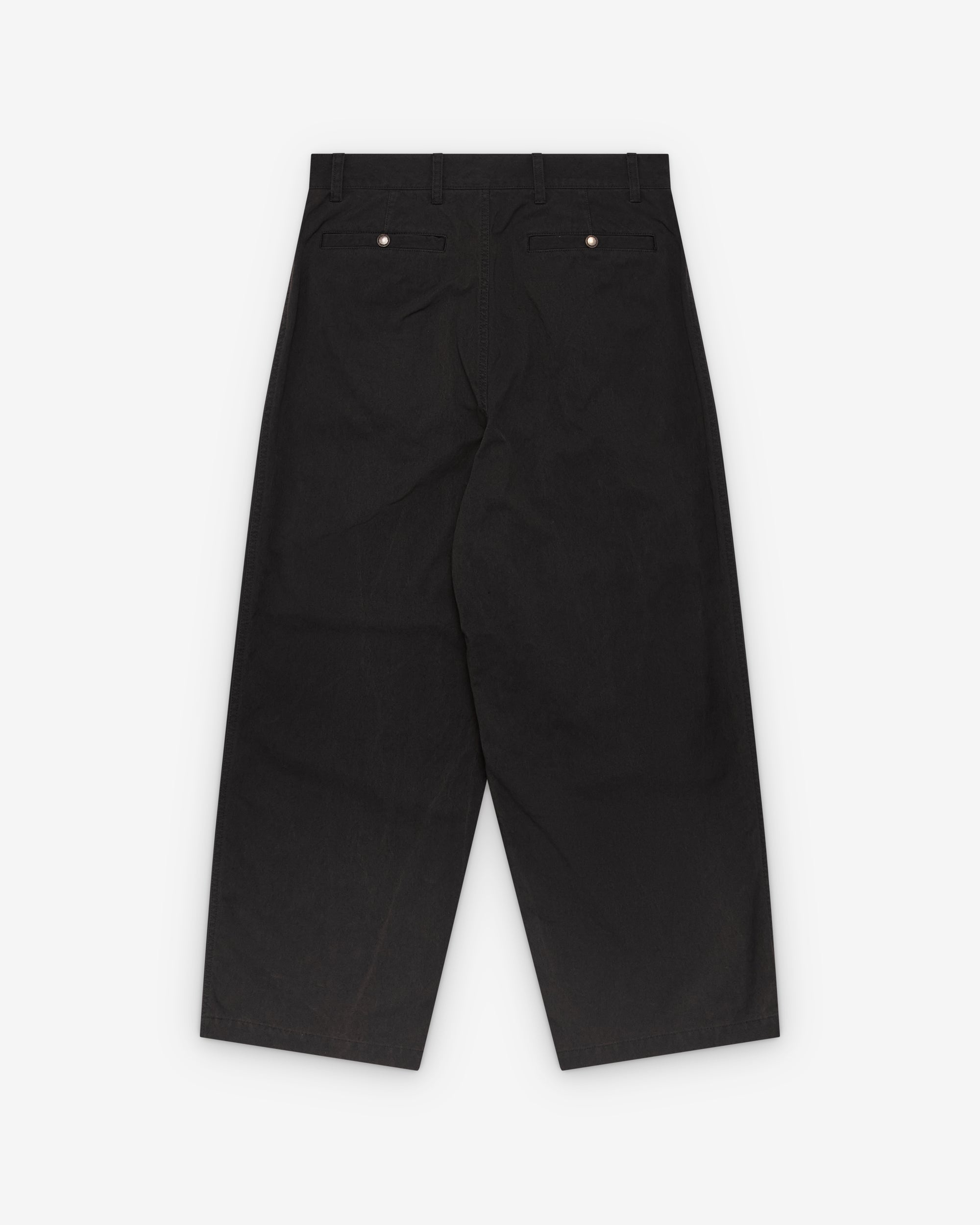 Button waist, zip flyWide fitFront and back pocketsDual front pleats