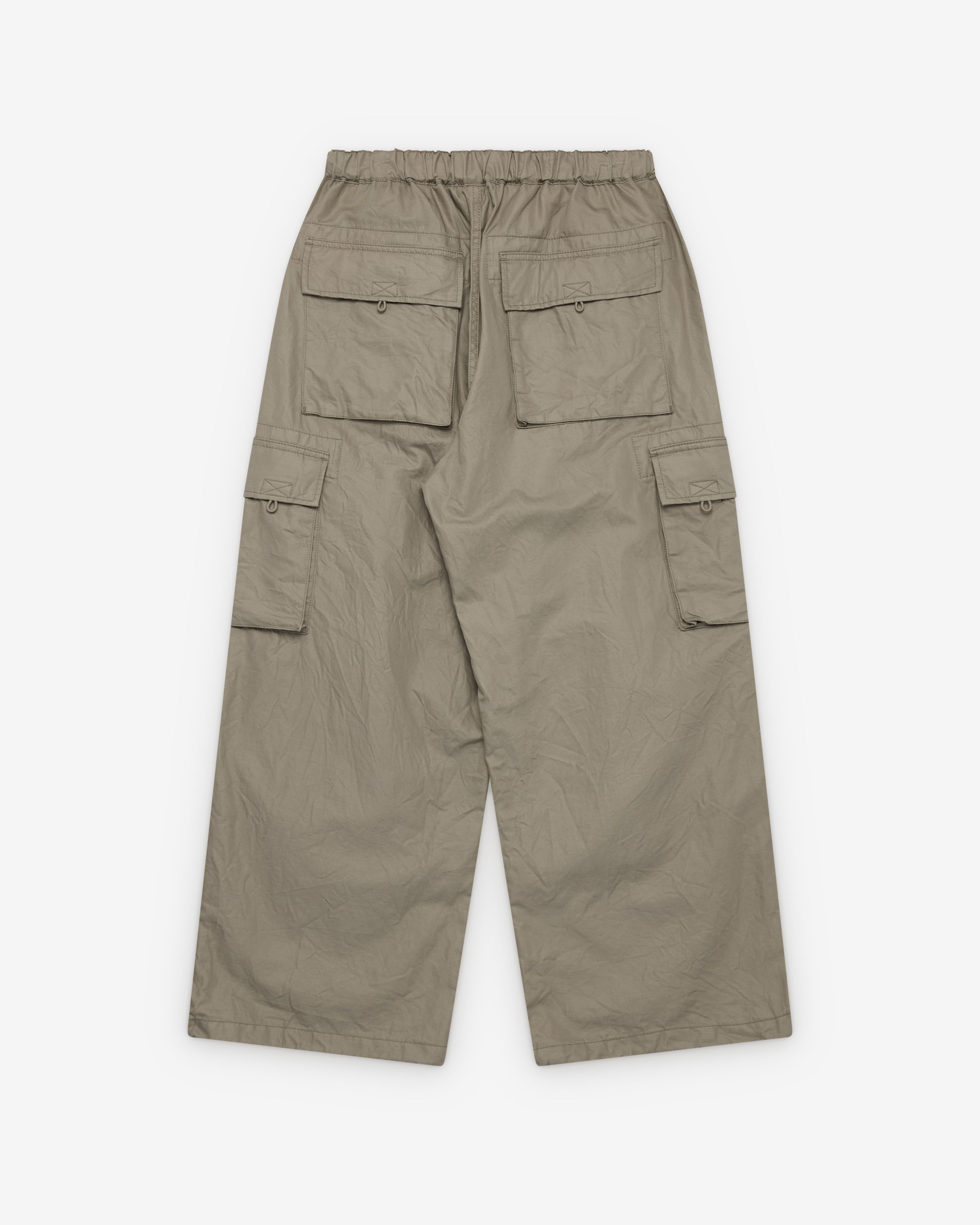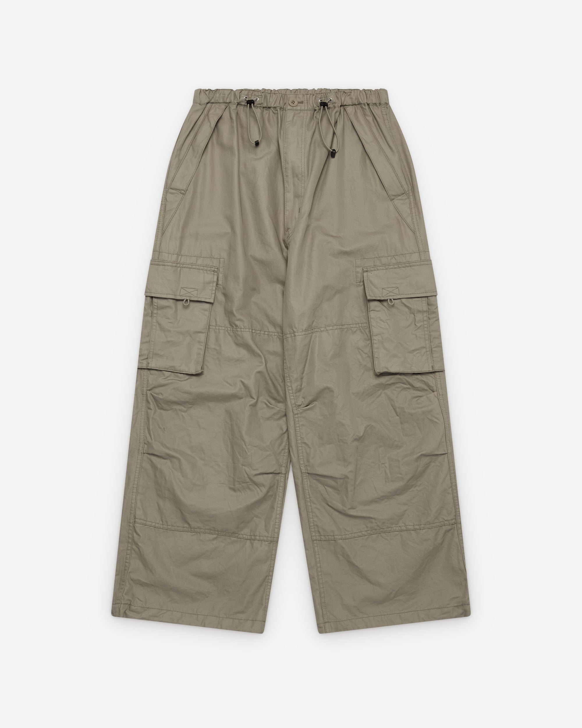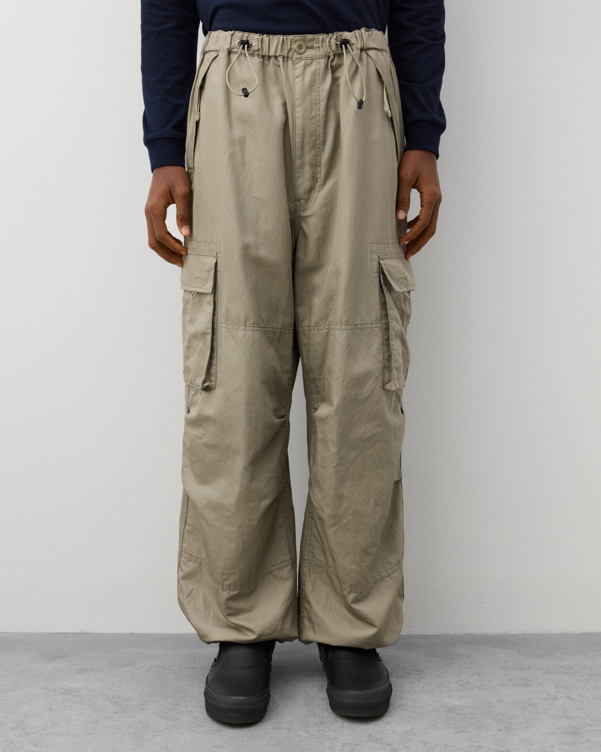 Button waistPull cord elasticated waist and cuffsZip close front pocketsCargo leg pocketWide legTwo back pockets