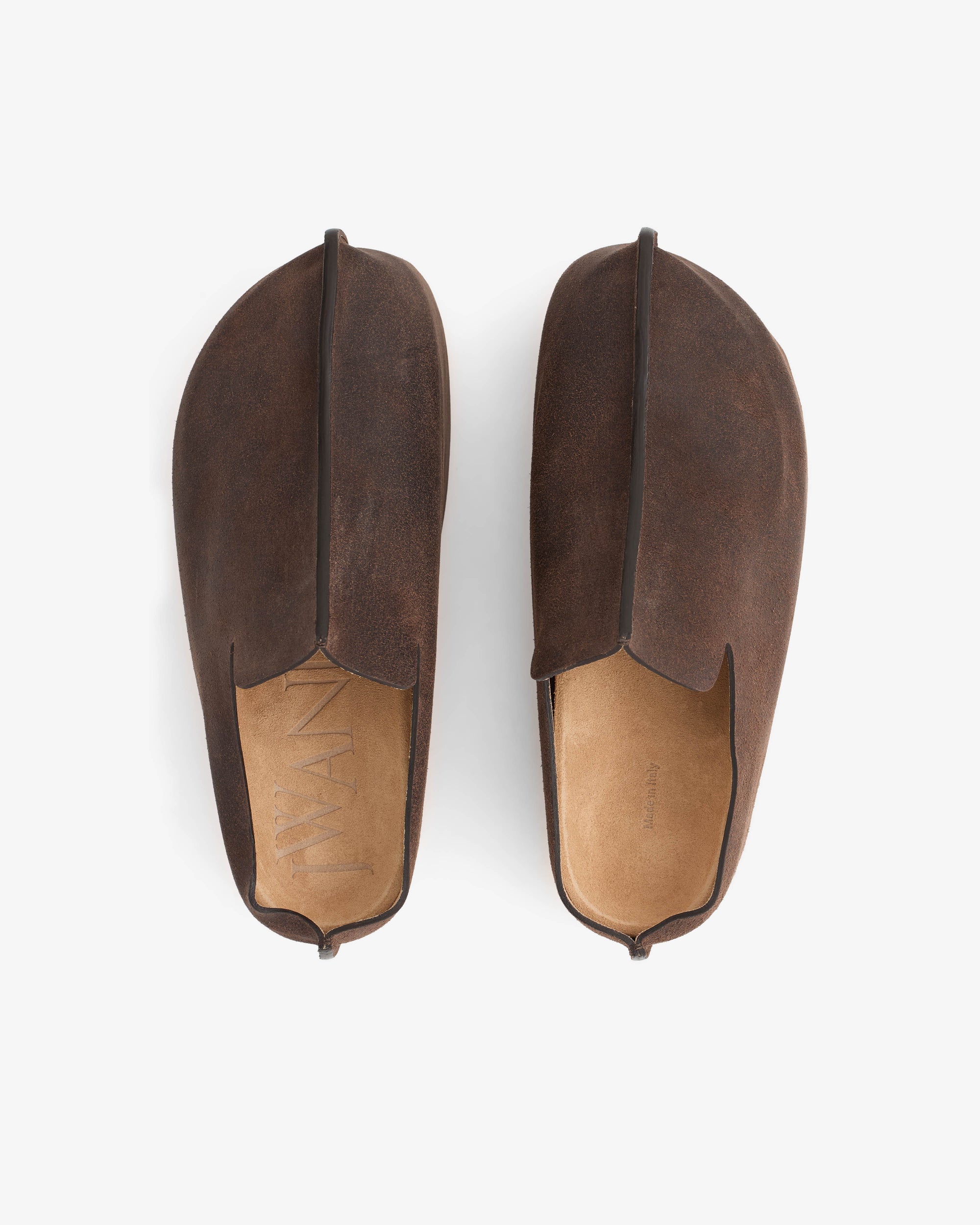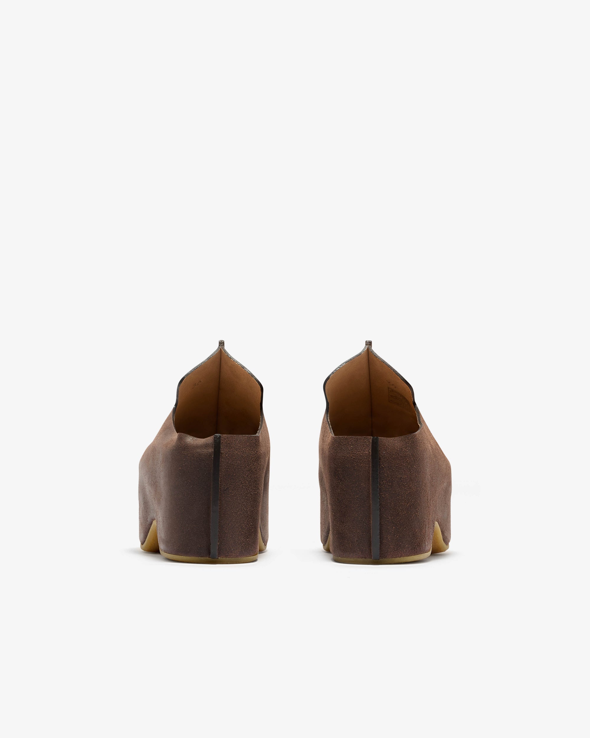 Slip on mule stylePointed toe with centre seam lineFits large to sizeRubber outsole