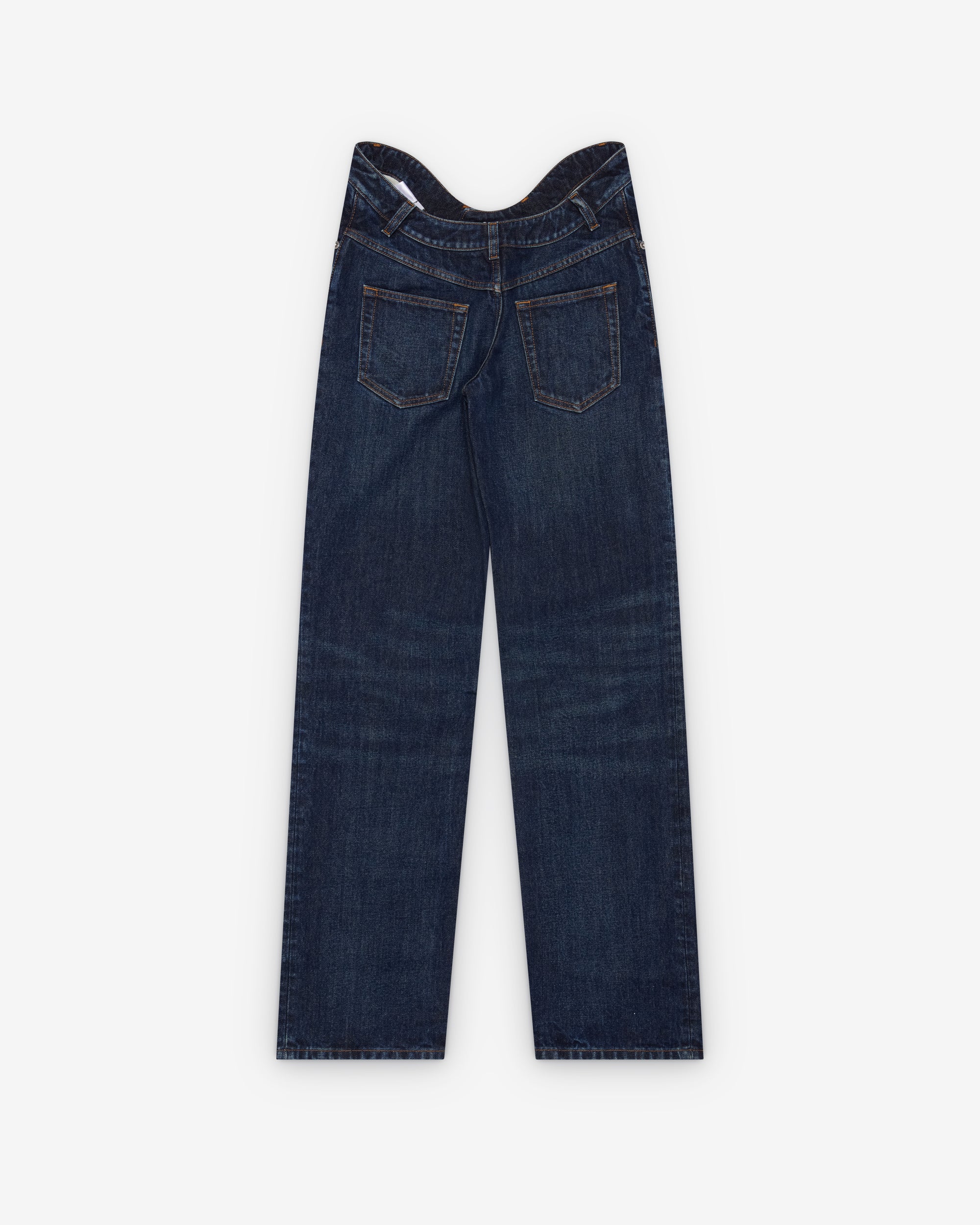 Bootcut fitMid-rise curved waistButtons and rivetsFour belt loops100% CottonMade in Italy