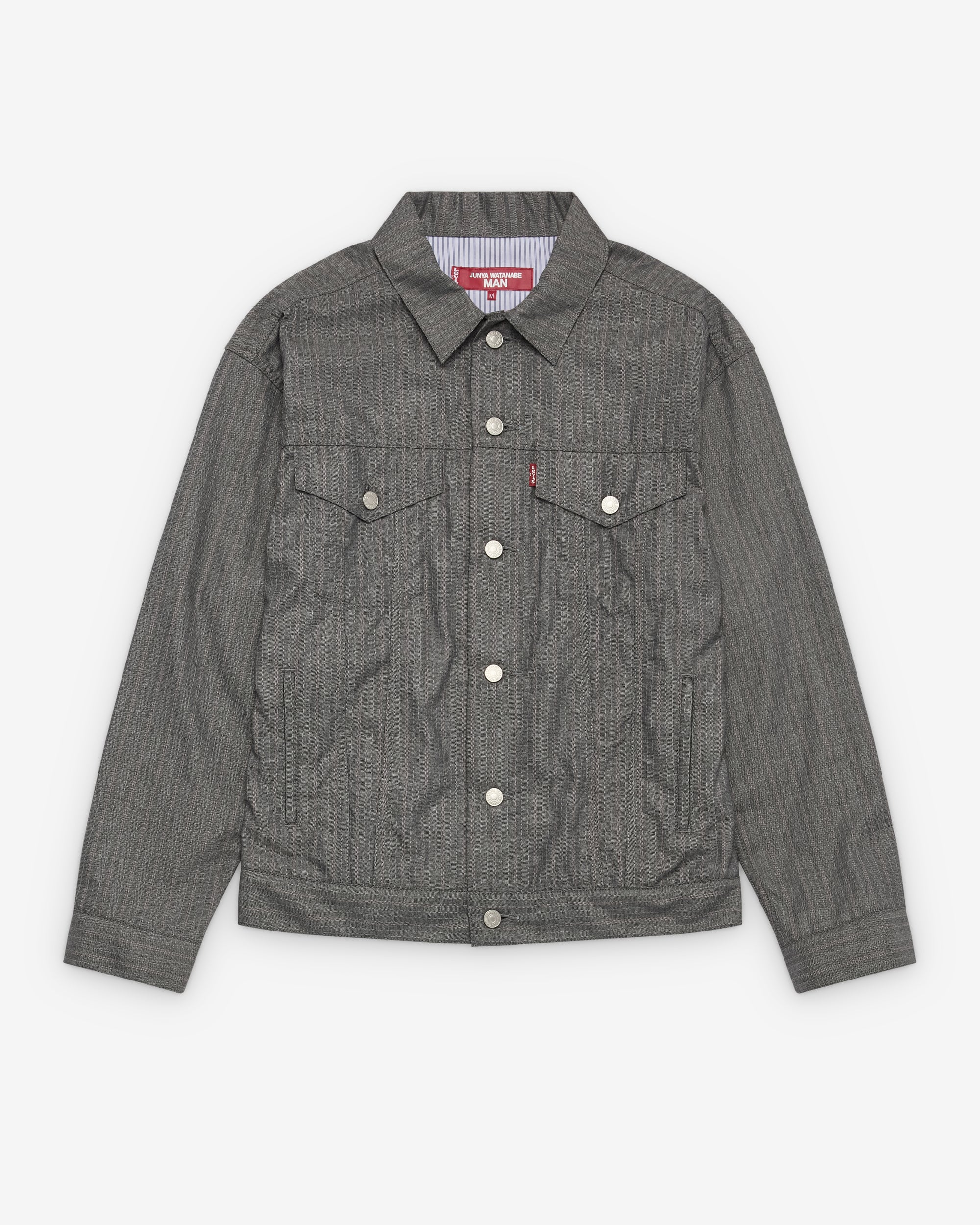 Classic collar Front metal button closure Pin stripe fabric Full internal lining Two chest pockets Levi's tab logo at front pocket Adjustable button tabs at waist Button close cuffs