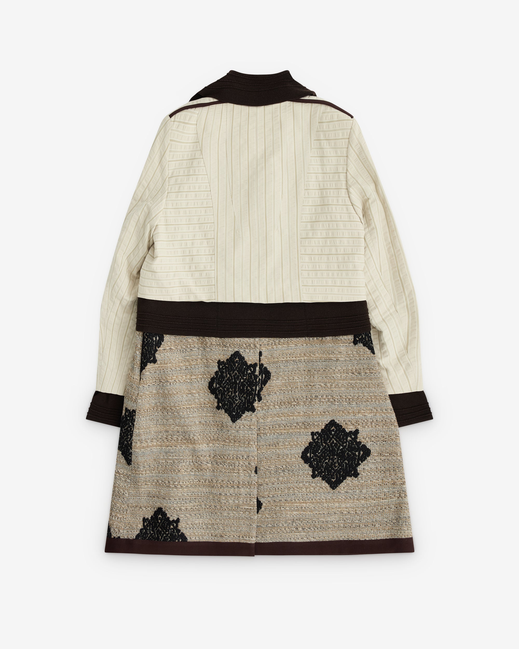 Asymmetric press stud fasteningKnitted collarPanelled constructionLong sleevesA-line silhouette