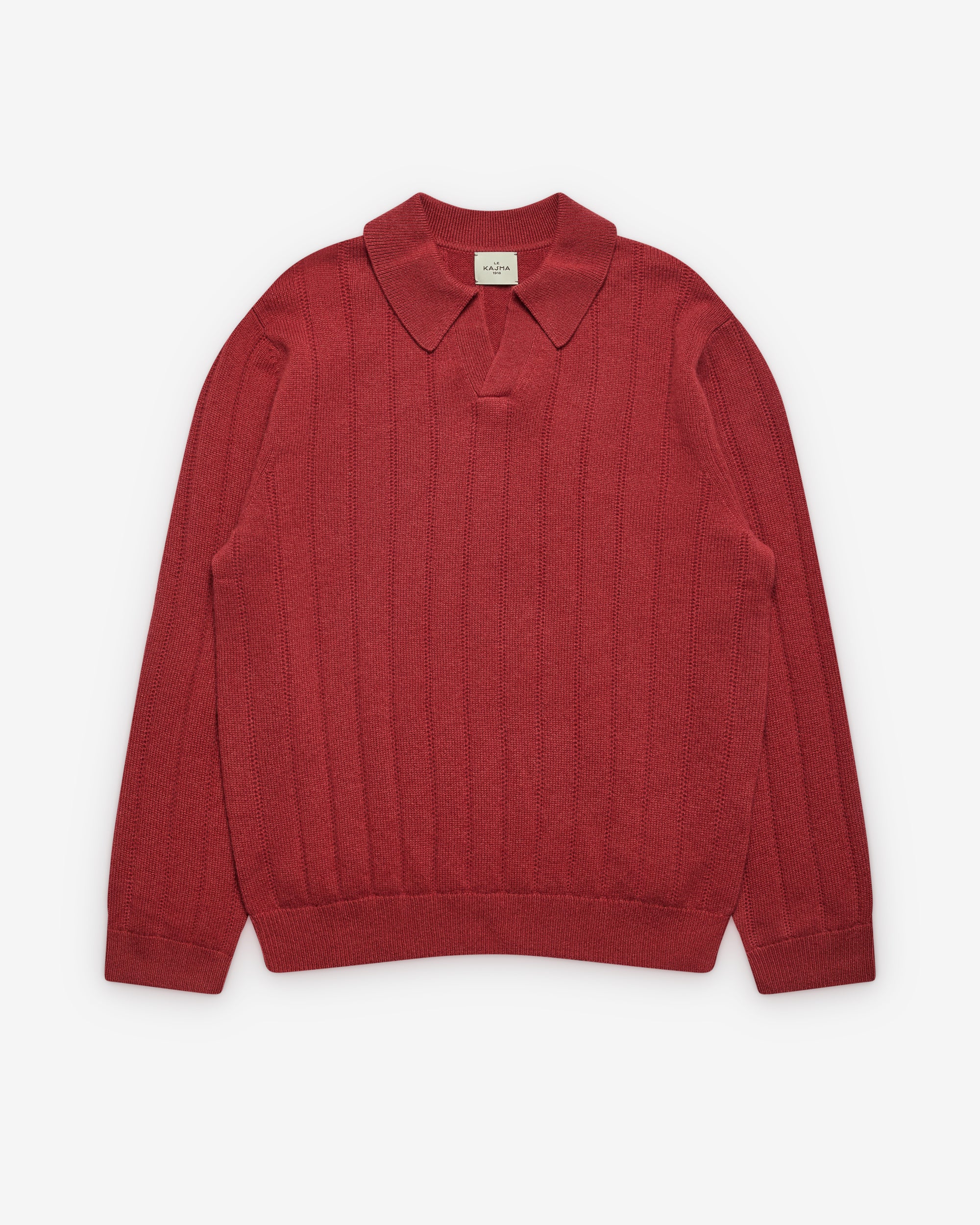 Point collarLong sleeveRib knit trimsRelaxed fit