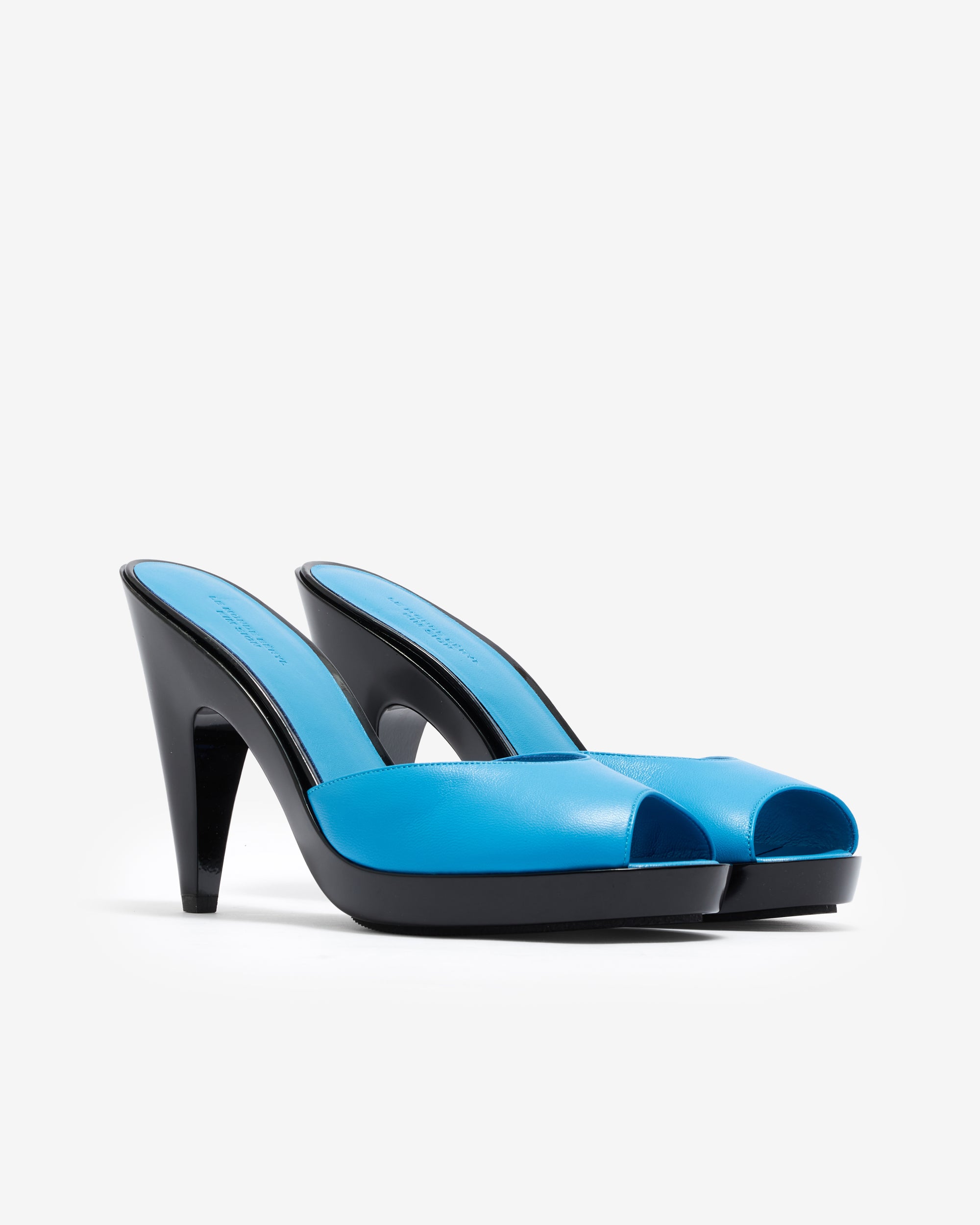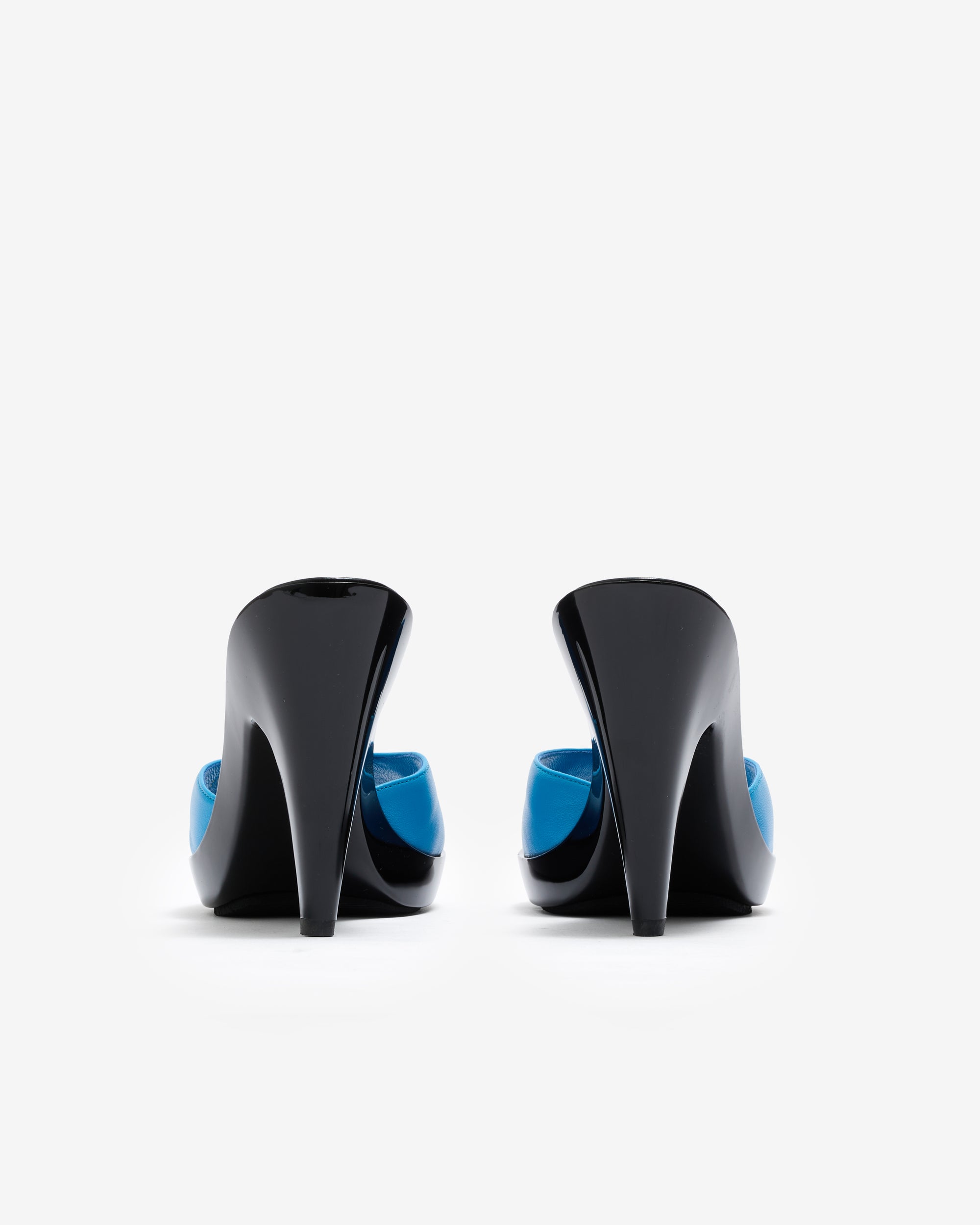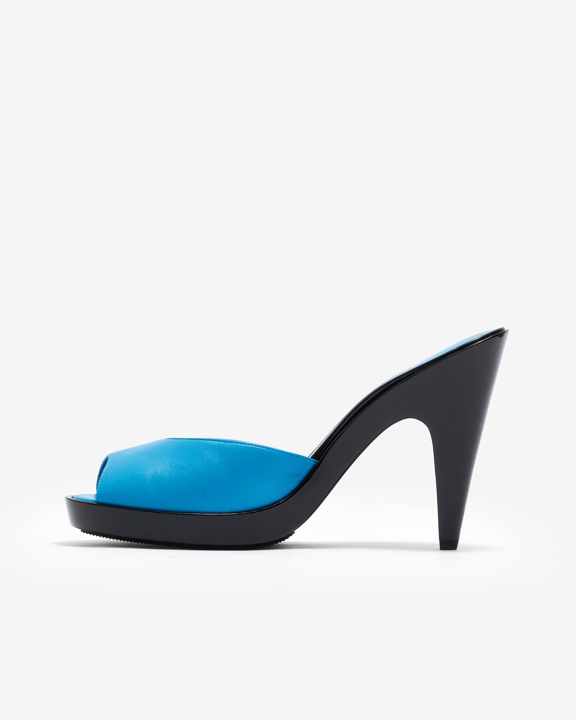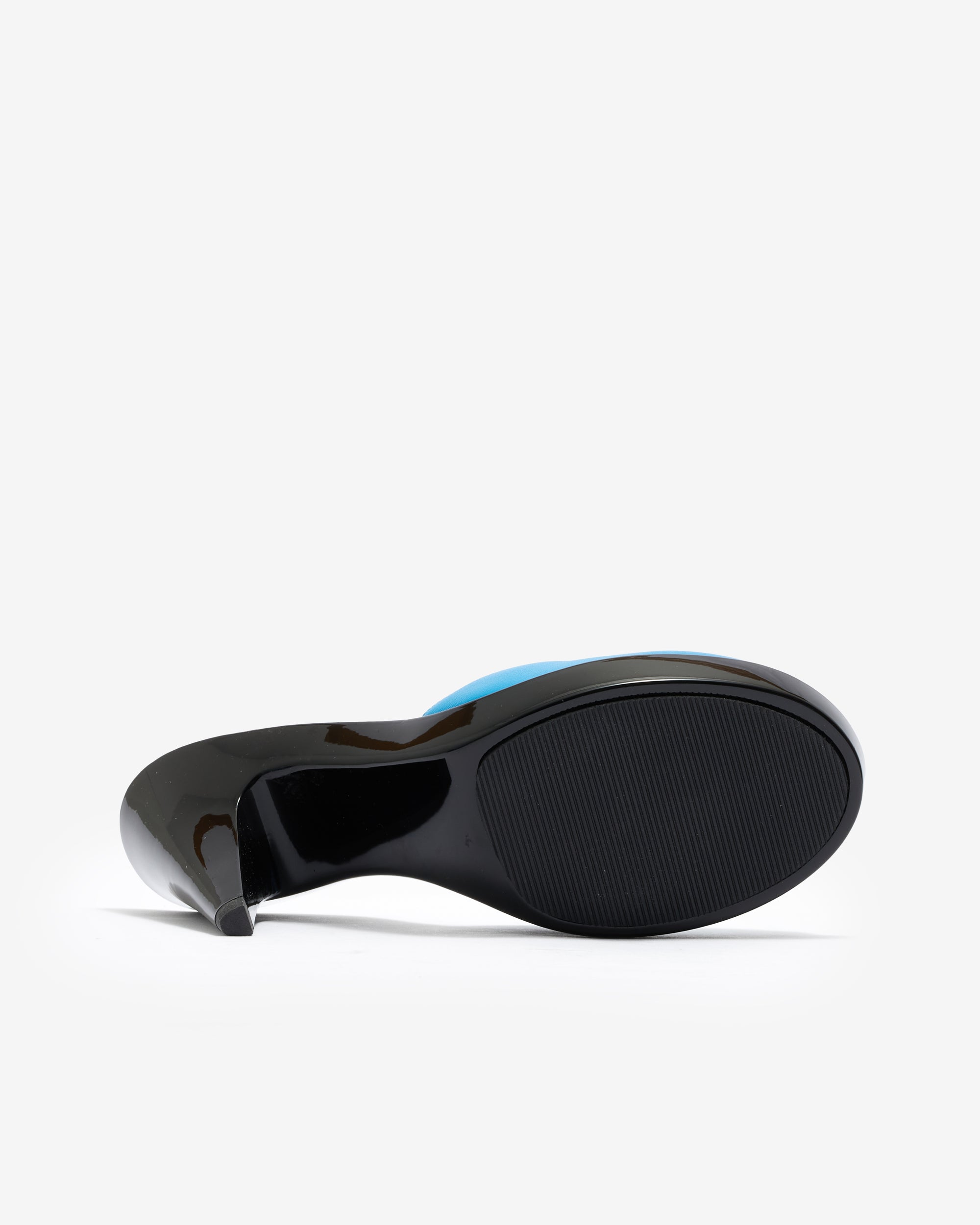 Azur blue lamb leatherCushioned calf-leather insoleTriangular beechwood heelHigh-gloss black lacquer finish110mm heelMade in Italy