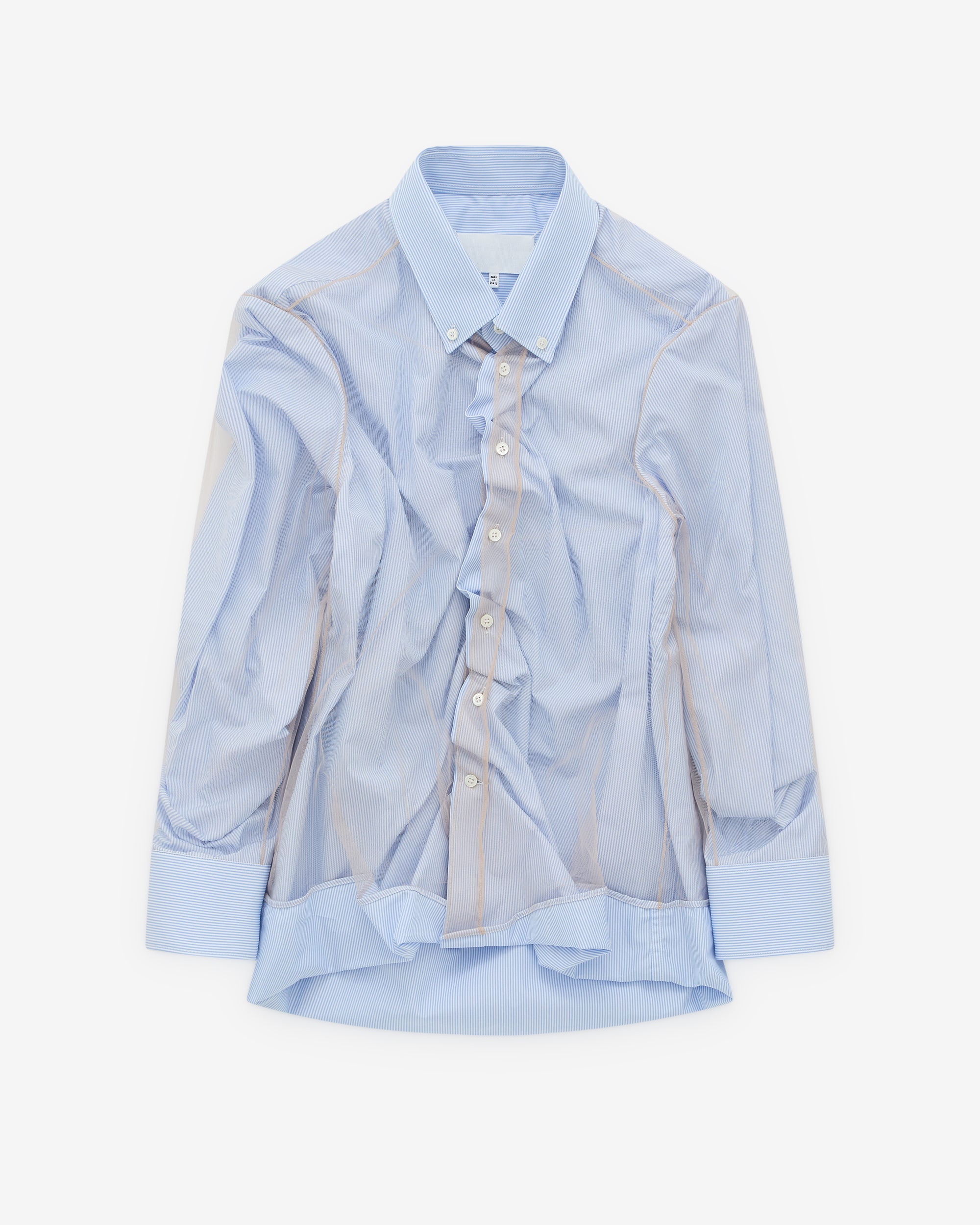 Covered with a high shine lamination varnishPointed collarDropped shoulderShort sleevesFront and back pleatsMother of pearl button closureRaw-edge hemCurved hemFour stitches at the backOversized100% CottonMade in Italy
