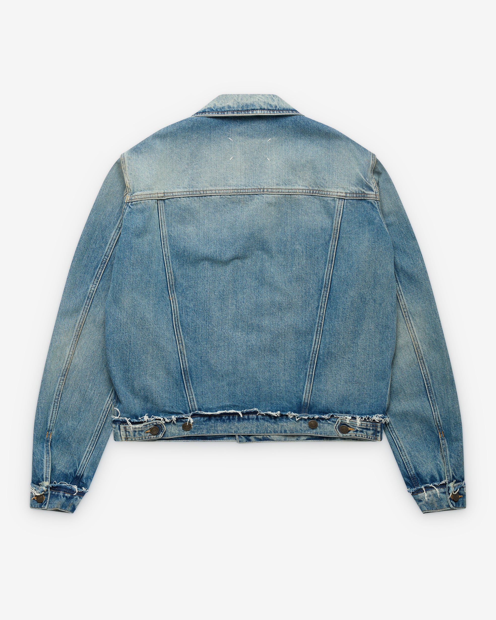 Gauge 14 oz origin denimFrayed hem detailLong sleevesShirt collarFront button closureFour stitches at the back
