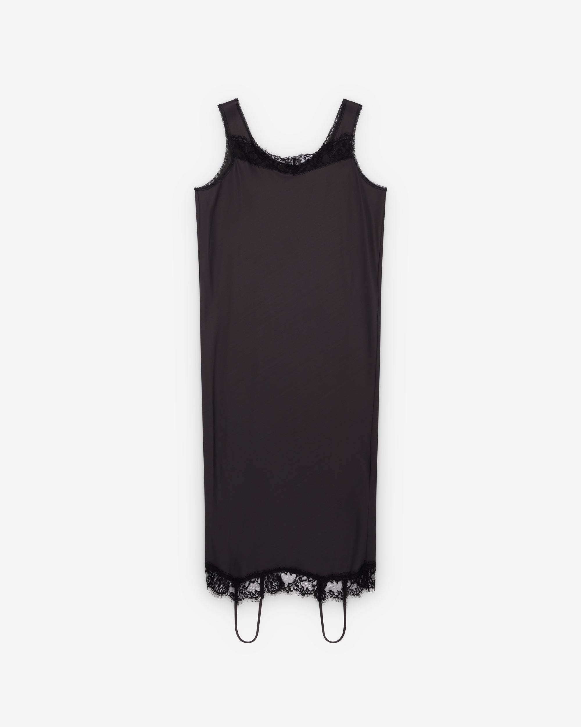 Midi lengthLace trim at neckline and hemSleevelessSweetheart neckButton closure at the backWhite stitch line at the back62% Viscose-Rayon, 38% CottonMade in Italy