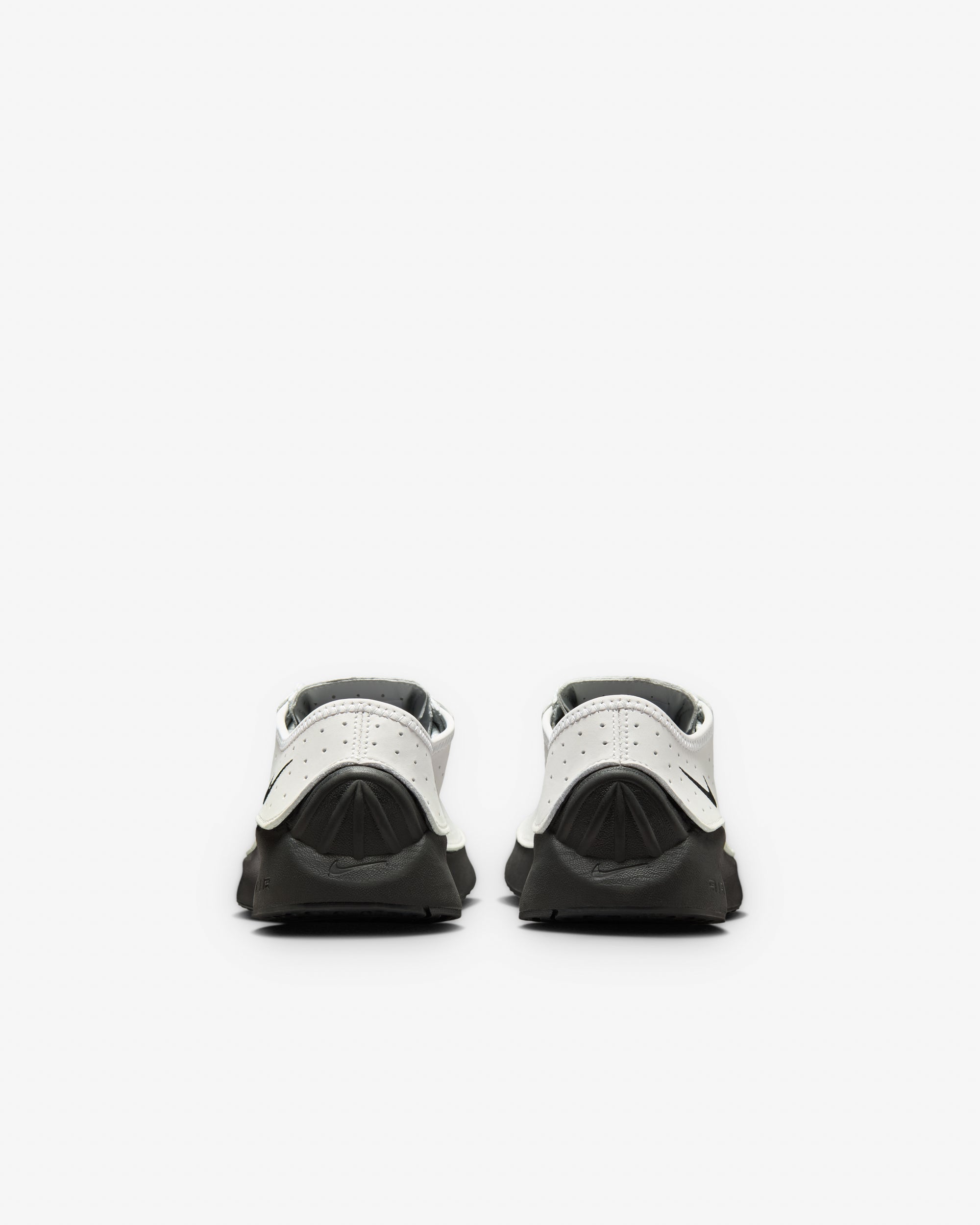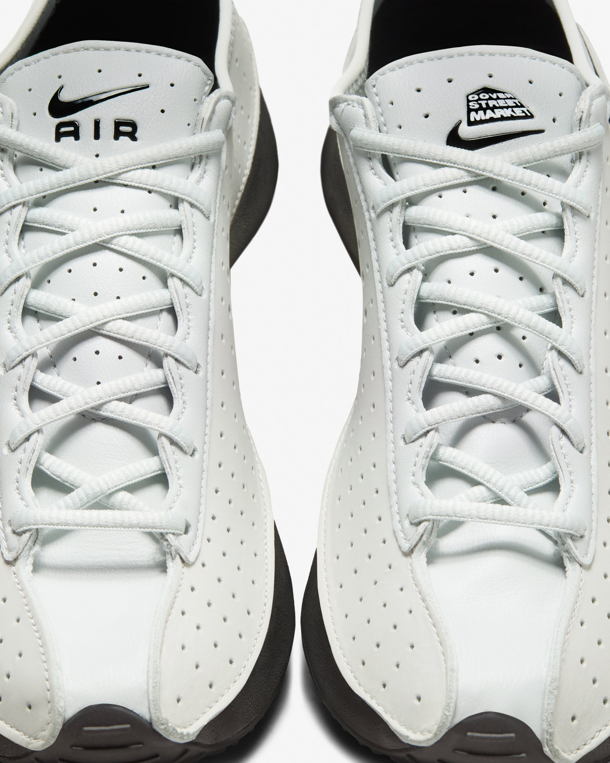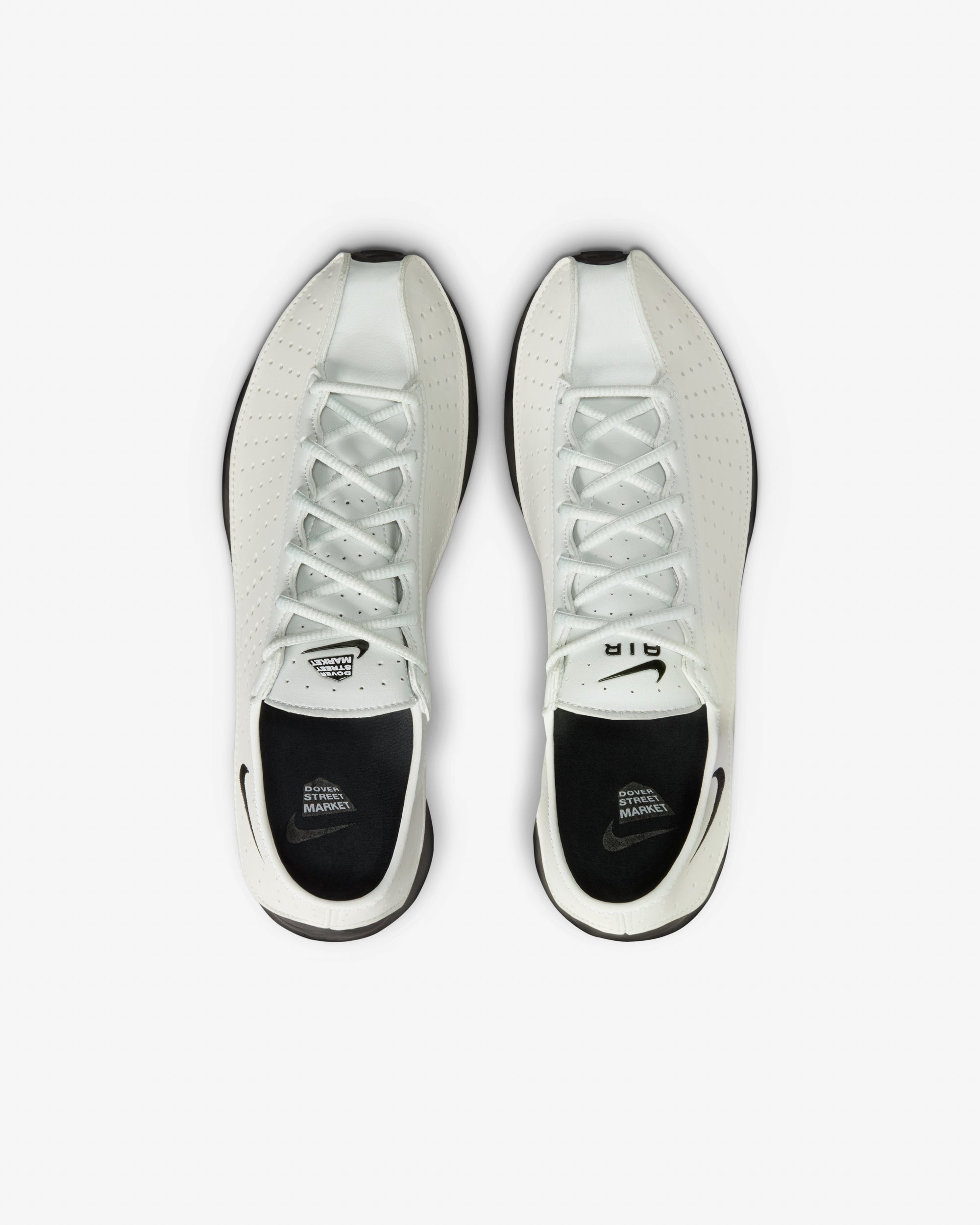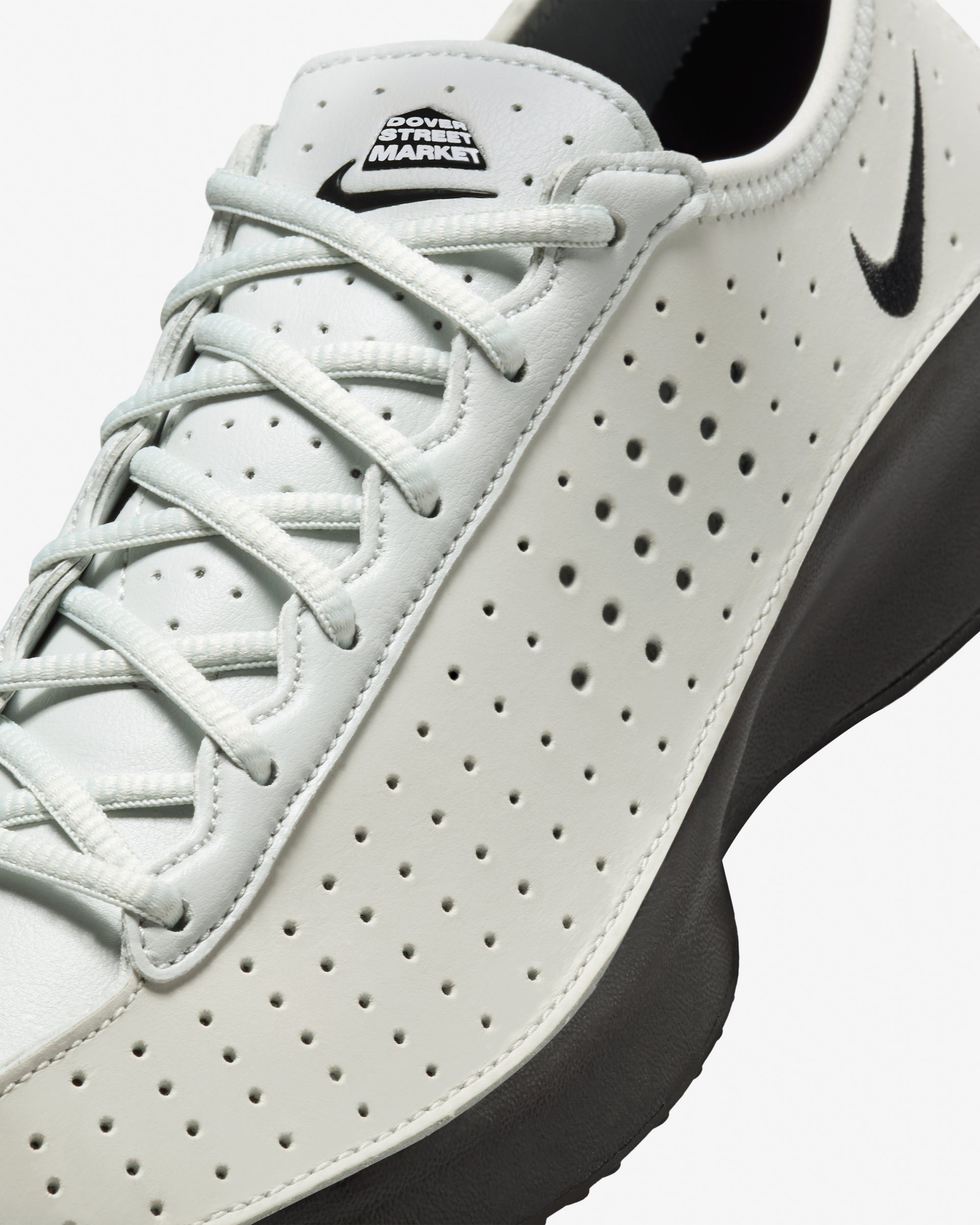 Dover Street Market reworks the Air Superfly in Hyper Black, Summit White, and Smoke Grey colourways. The perforated leather upper with suede accent sits on top of a Nike Air sole with the Hut Logo and Swoosh lock-up by Rei Kawakubo on the tongue.