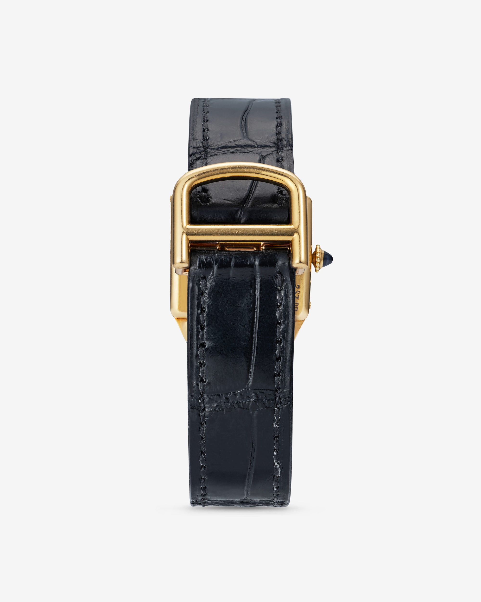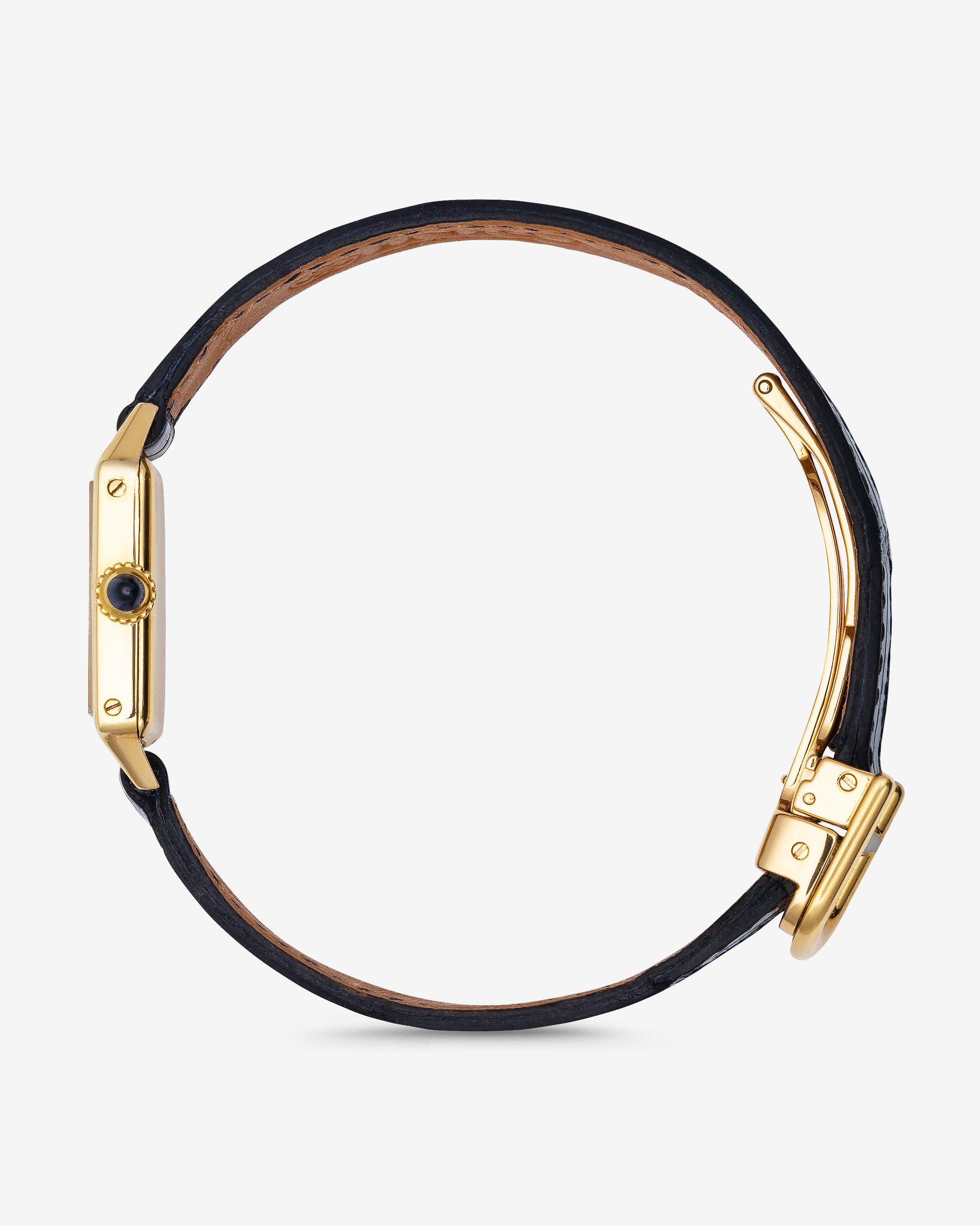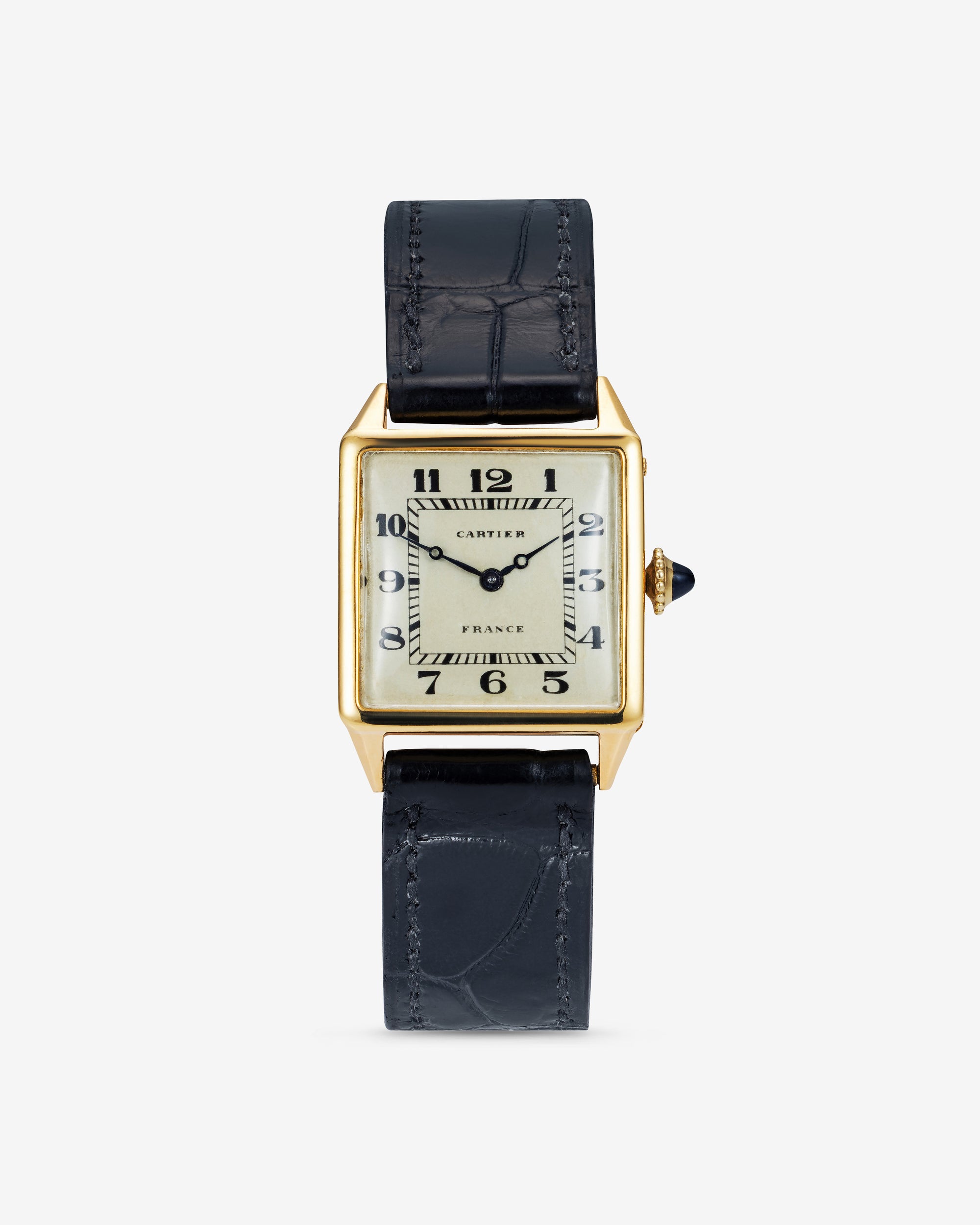 Original Cream Enamel Dial signed Cartier France with radial black Arabic numerals and “Breguet” hands with inner minute track ‘chemin de fer'.