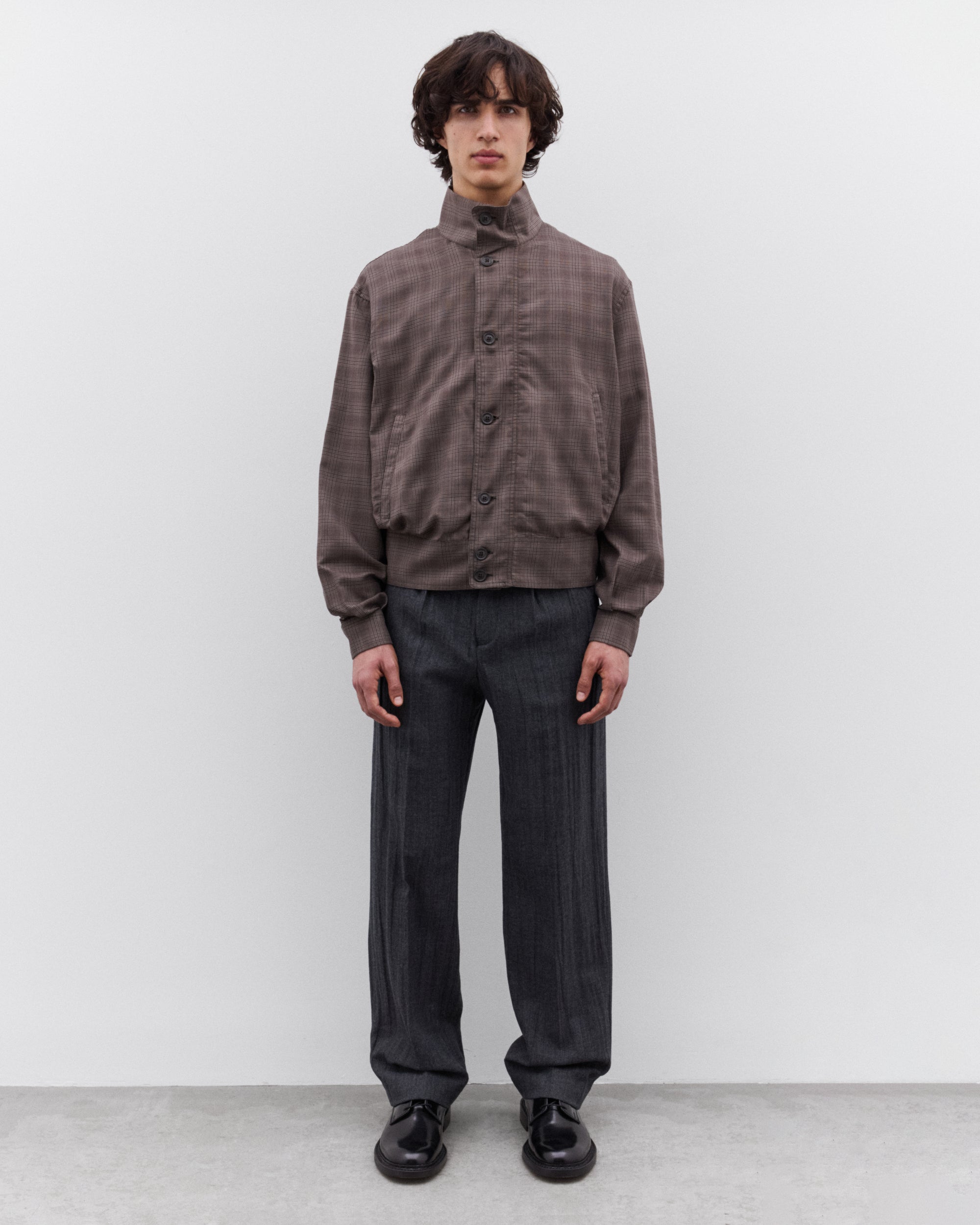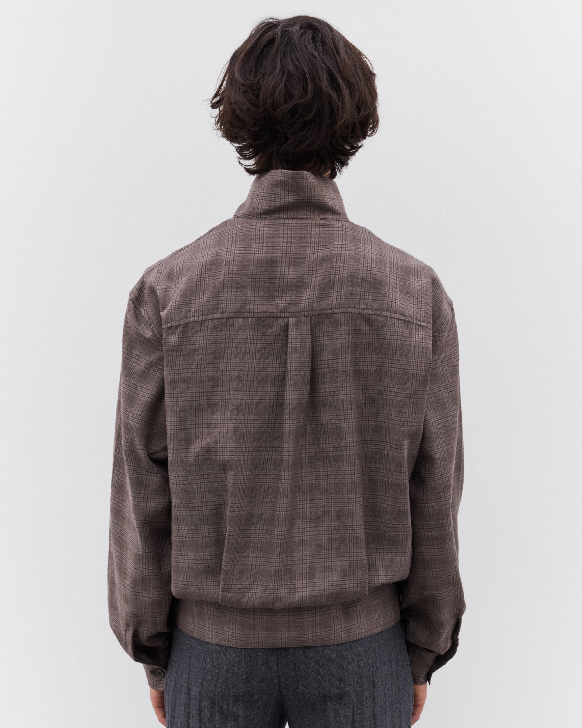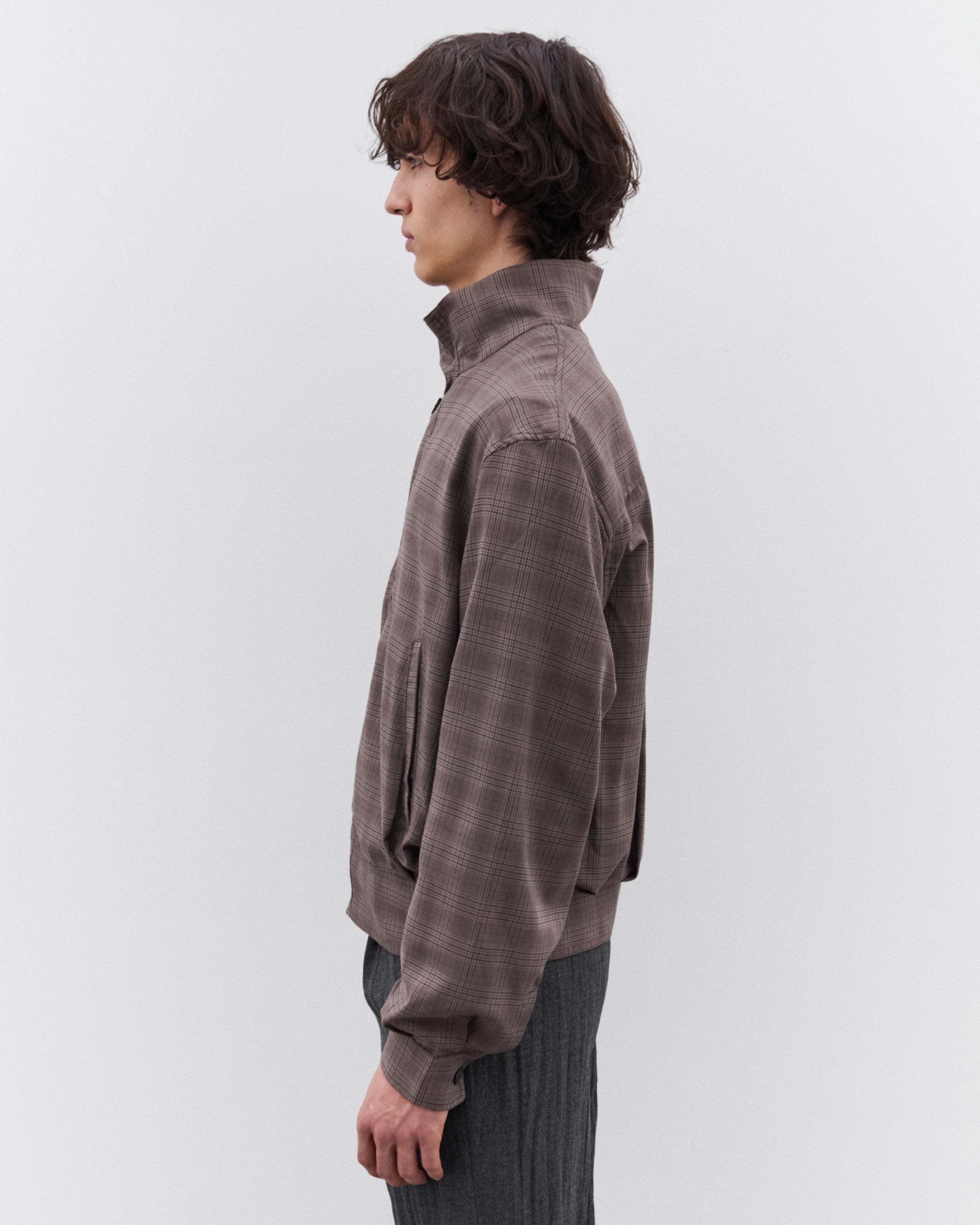 Plaid CheckFunnel necklineBomber stylePleated waistband and cuffsHornite ButtonsRelaxed fit