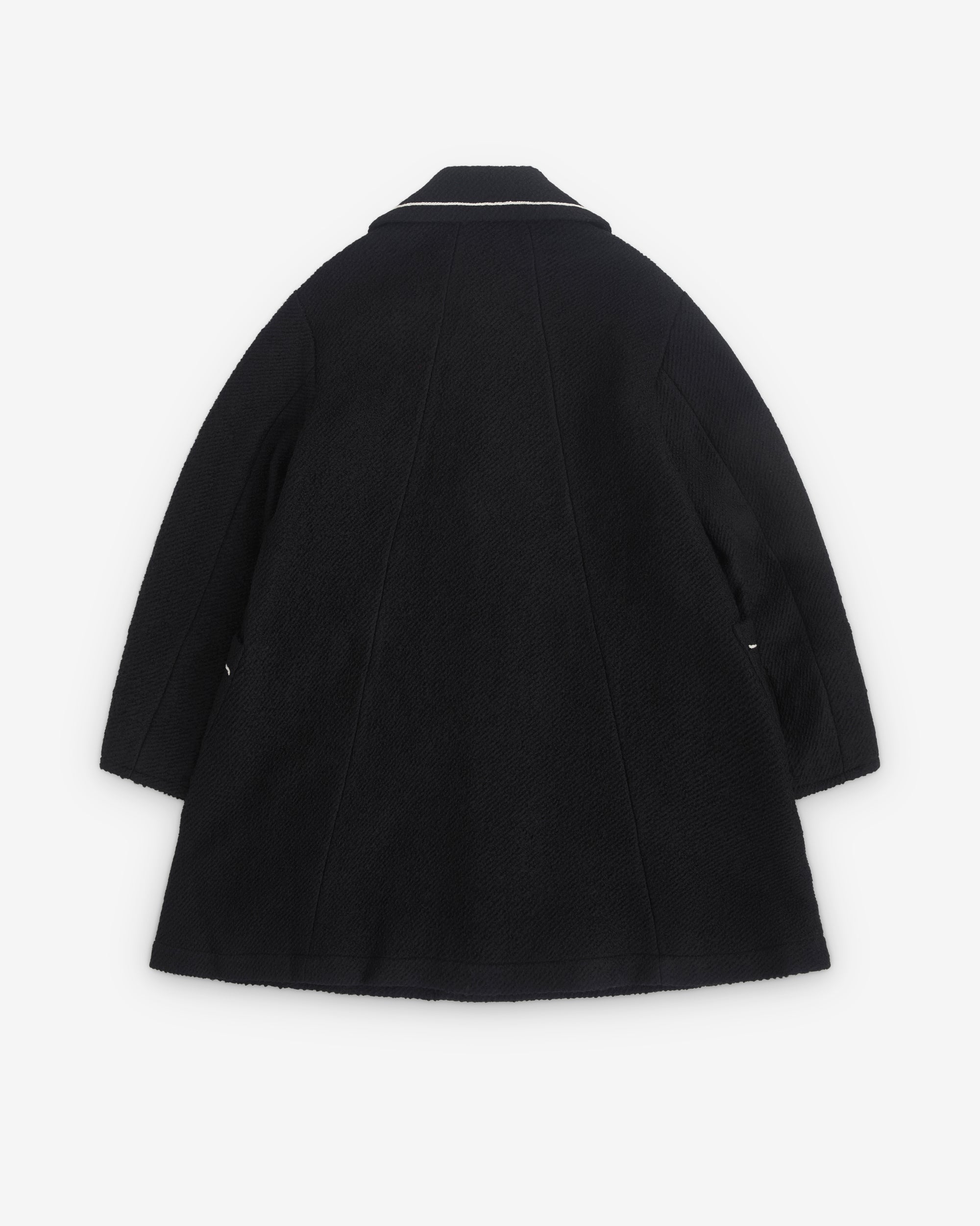 Oversized wool coat Rounded shoulders Buttoned front closureWide sleeves