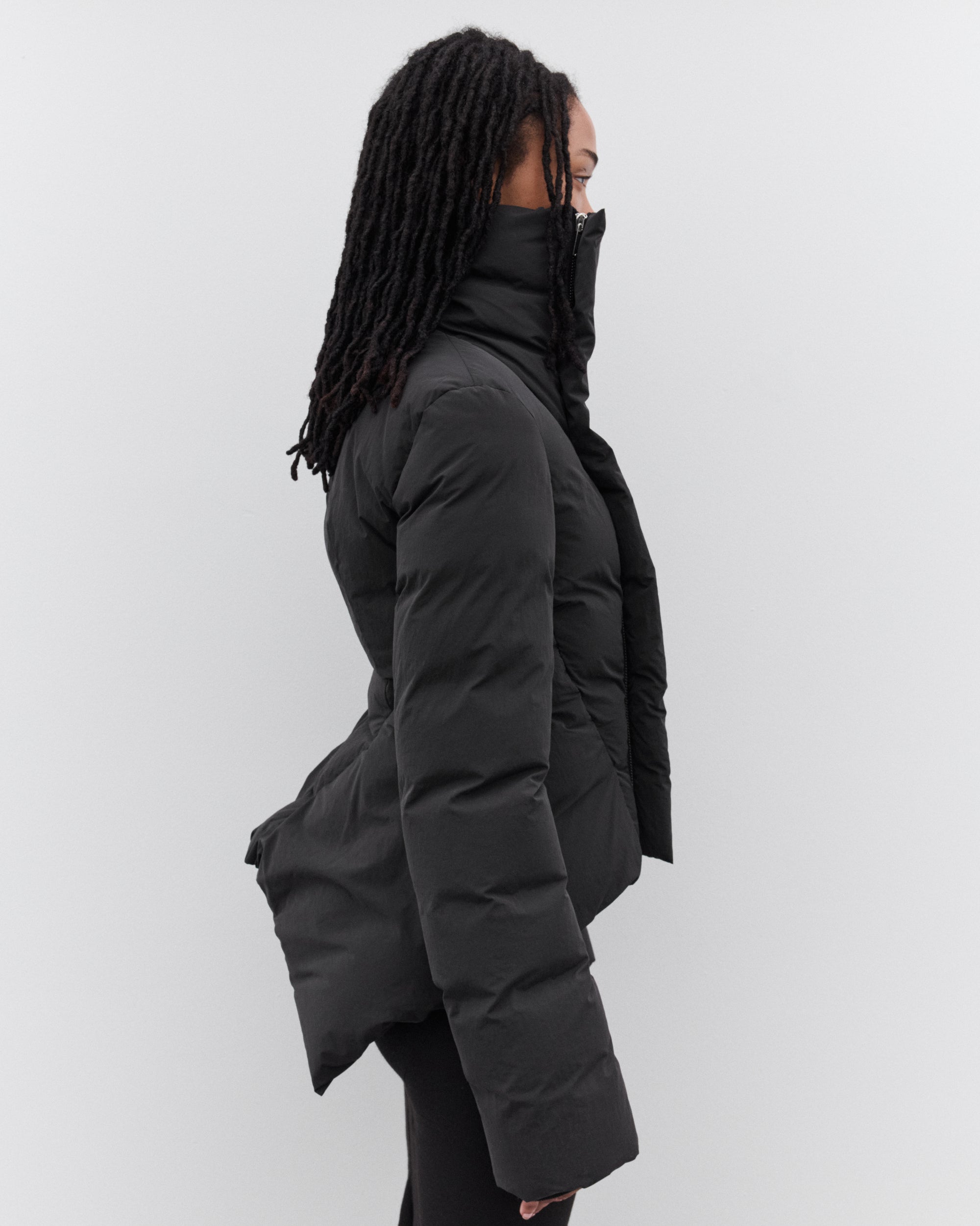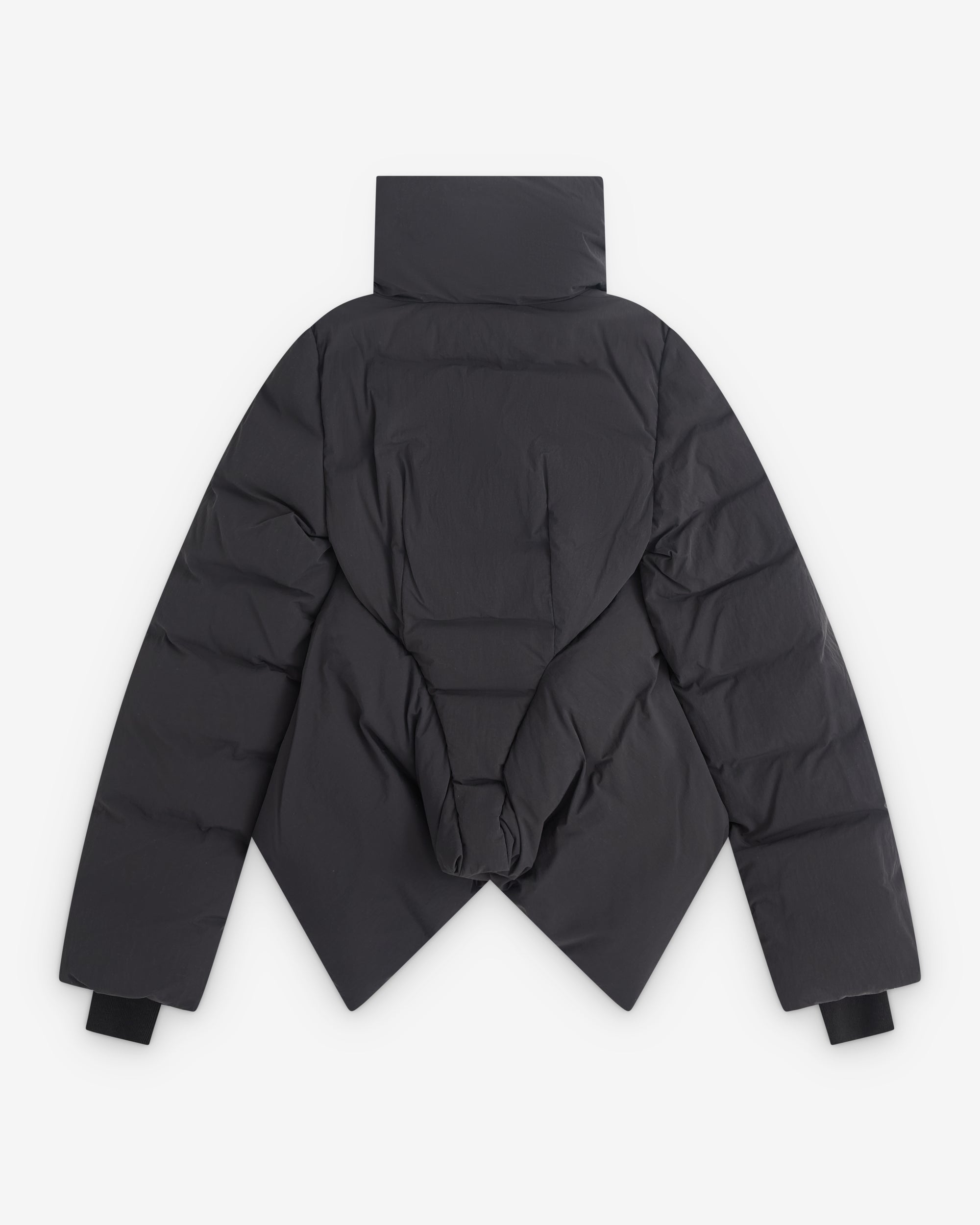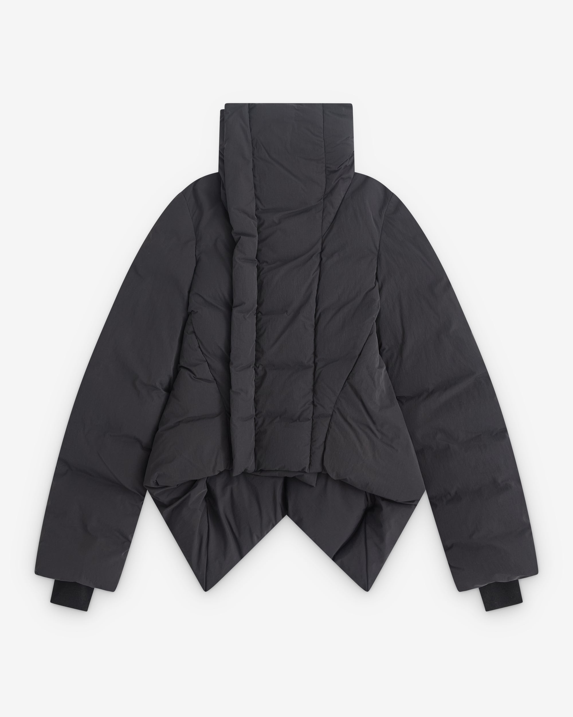 Padded down constructionFunnel necklineConcelead zip closureRibbed, elasticated cuffsCut out zig zag hemBoxy fit