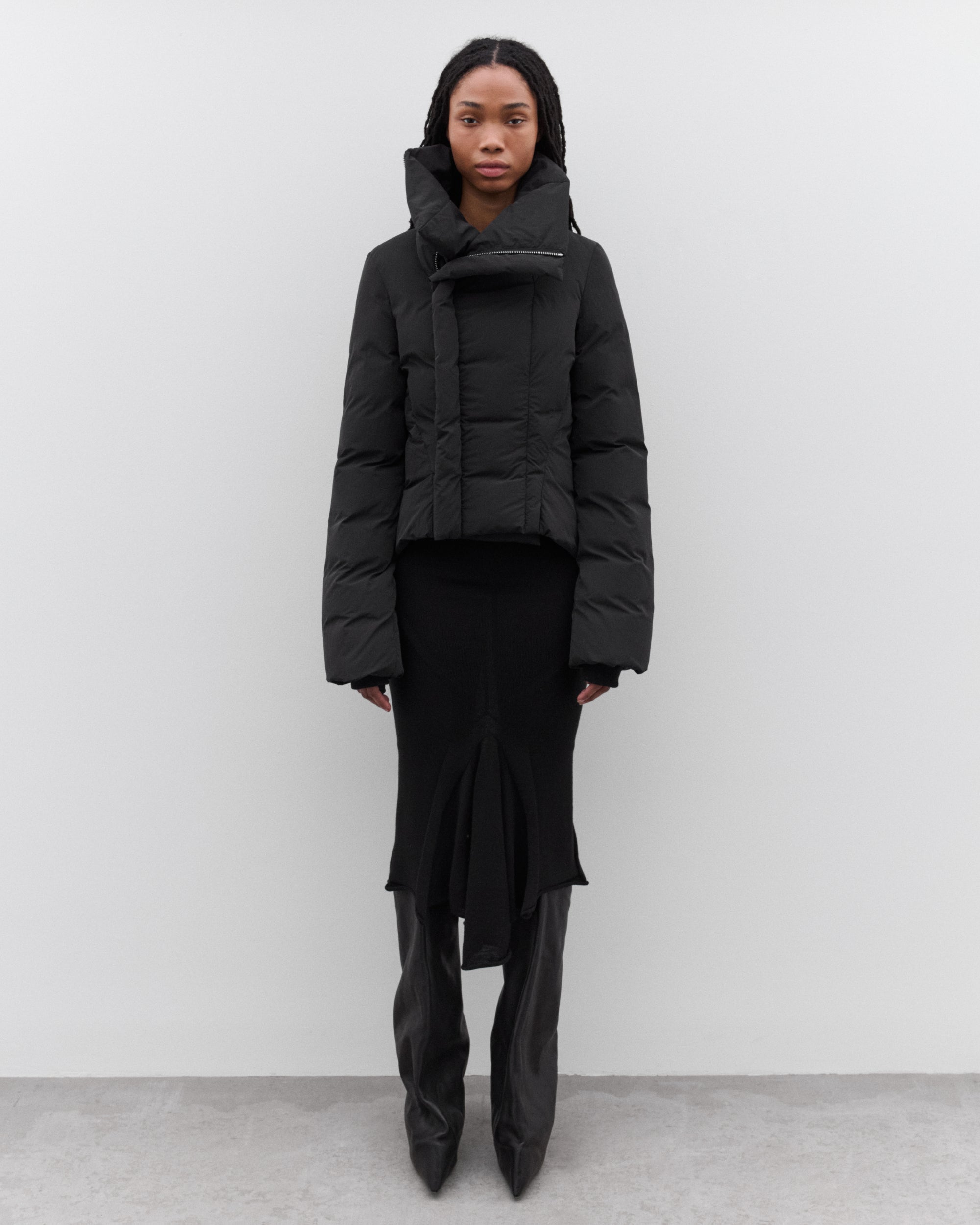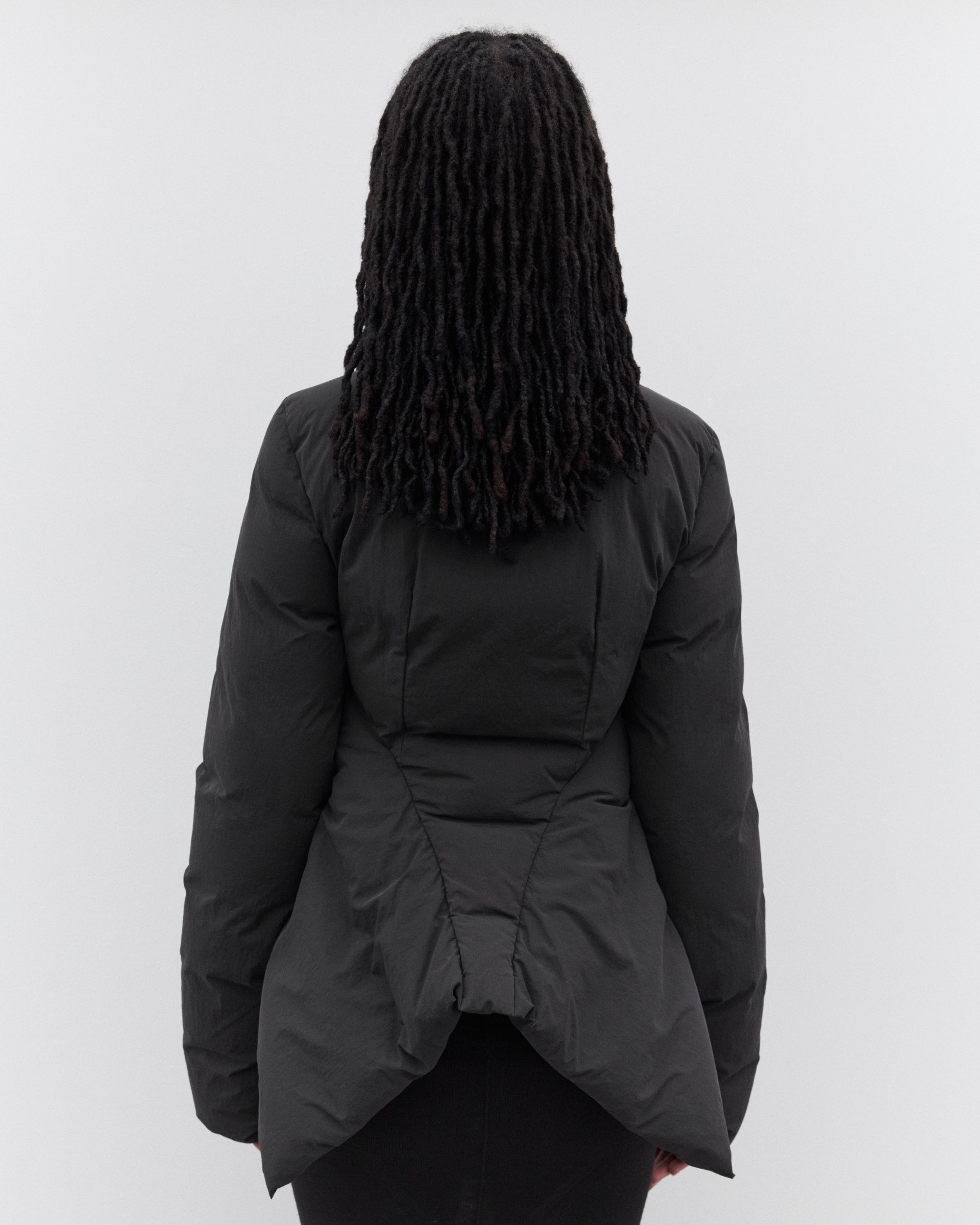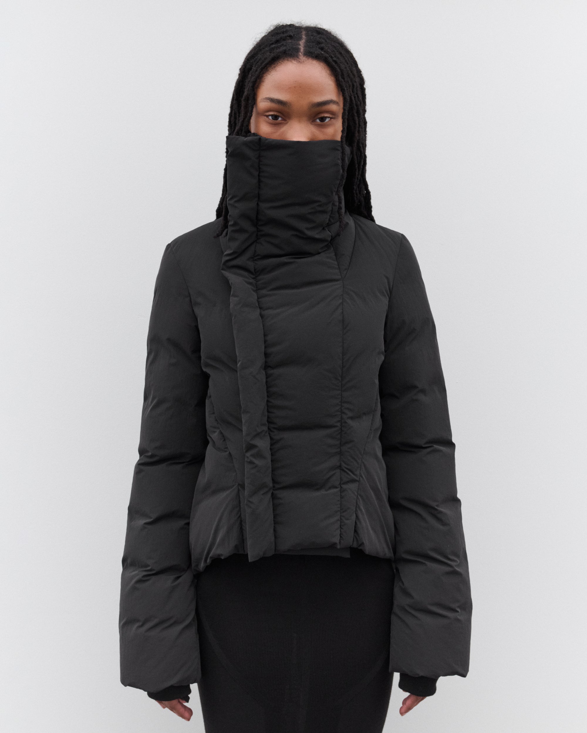 Padded down constructionFunnel necklineConcelead zip closureRibbed, elasticated cuffsCut out zig zag hemBoxy fit