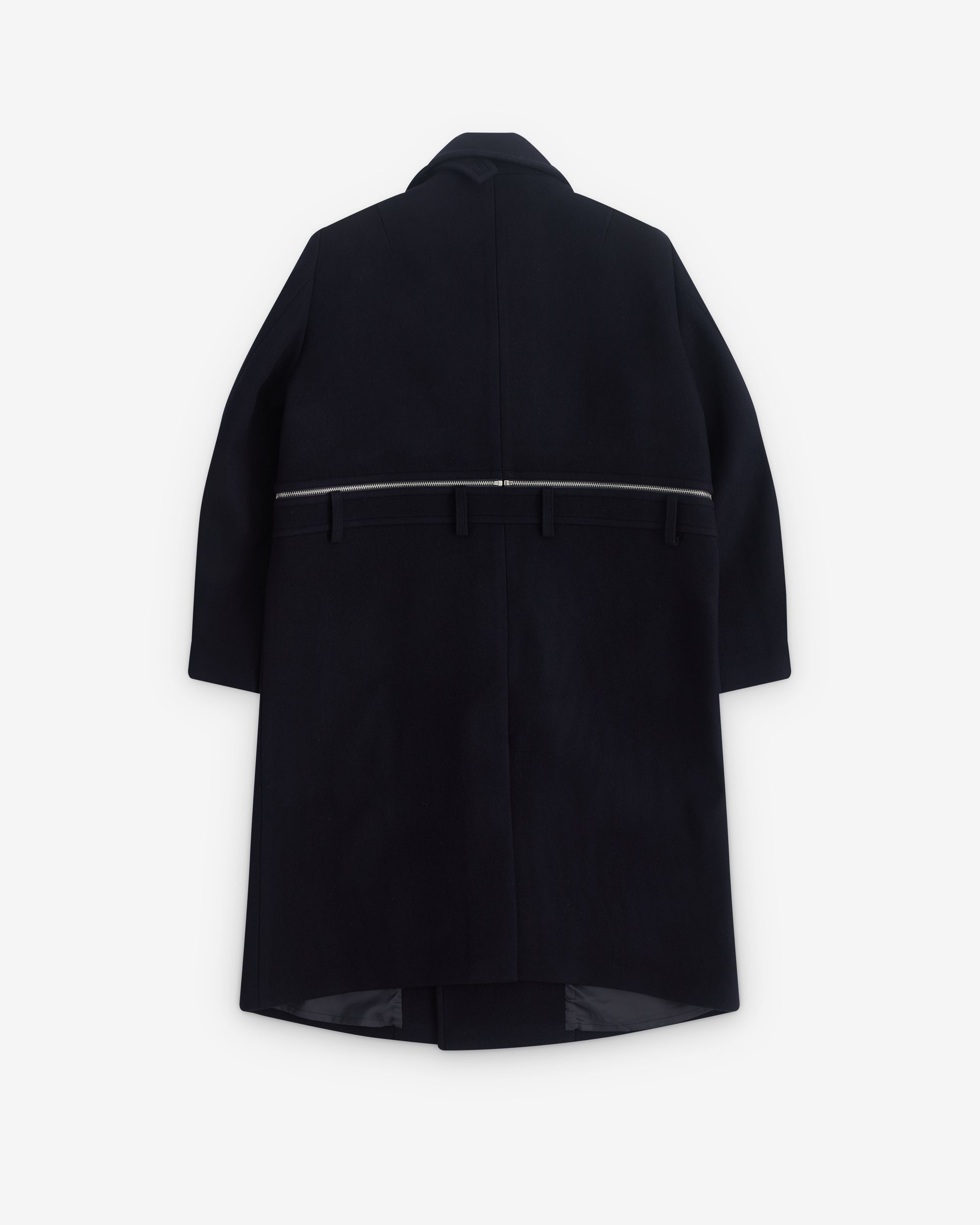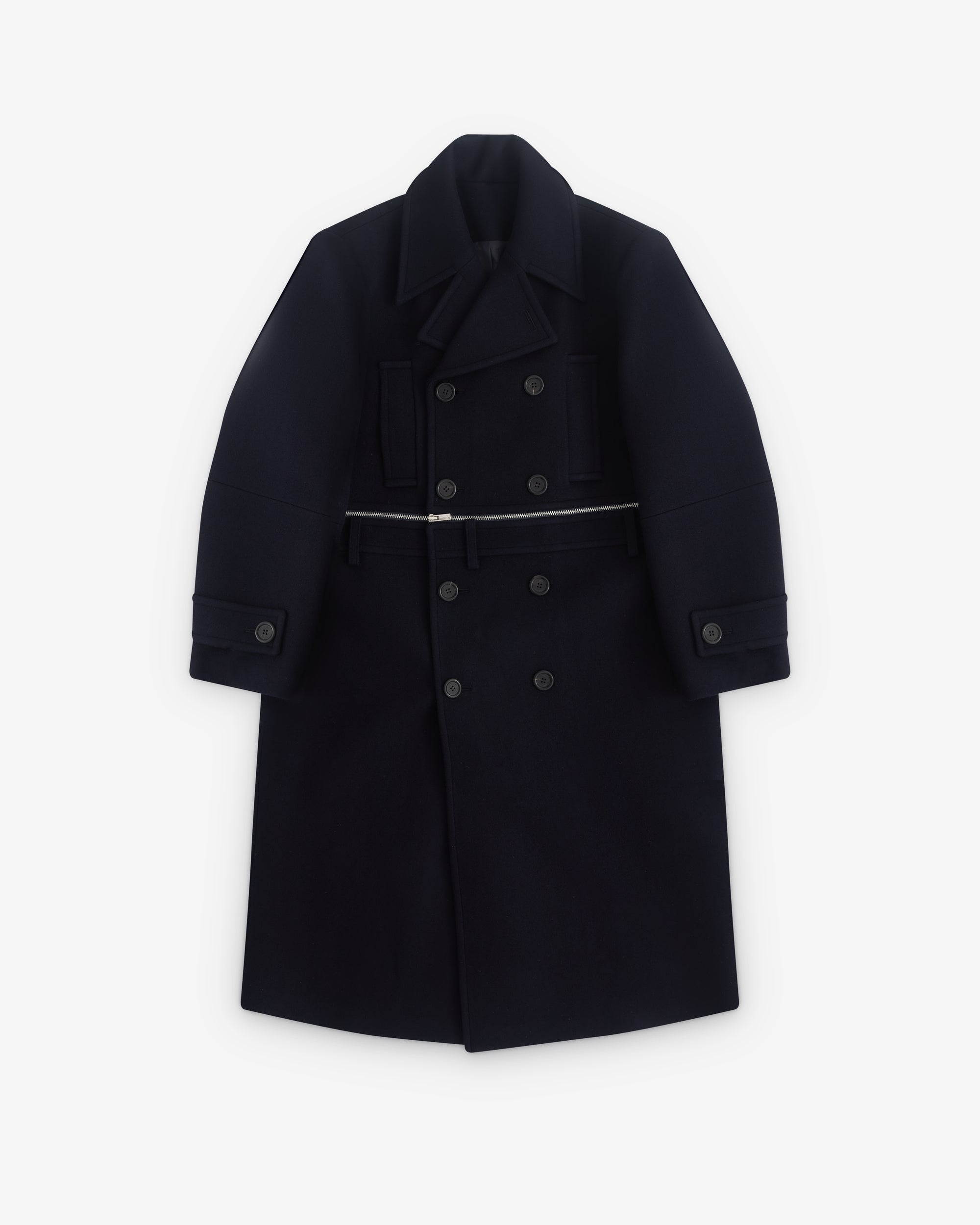 Double breastedFunctional zip detailOpen collarLinedBarrelled sleeves